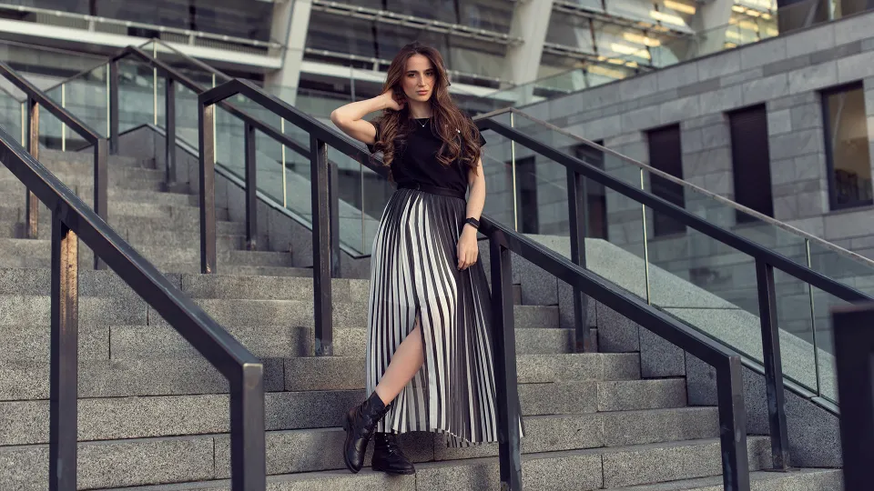 Так как разрез предполагает некое обнажение, верх подбирается среди закрытых вариантов. Иначе комплект будет выглядеть вульгарно. Стоит соблюдать правило: чем сложнее один из элементов, тем проще должен быть другой.