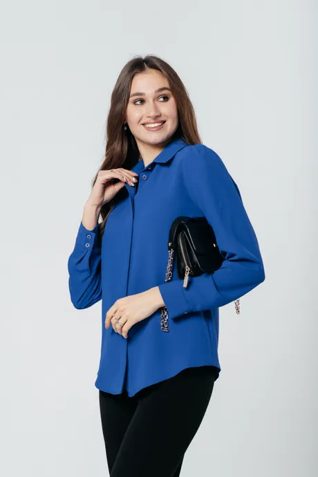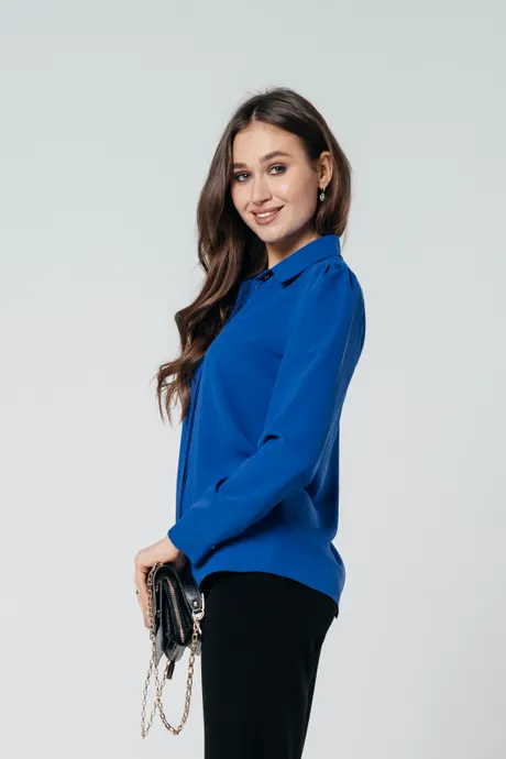 Представляем вам роскошную и удобную синюю блузку с длинным рукавом, выполненную из шелковистой ткани. Классический дизайн этой блузки позволяет ей легко сочетаться с разнообразными элементами гардероба, создавая изящные и актуальные образы на каждый день. Нежный и комфортный материал обеспечивает исключительное удобство и легкость ношения. Яркий синий цвет подчеркнет вашу индивидуальность и добавит характер вашему наряду, делая его подходящим для любого мероприятия.