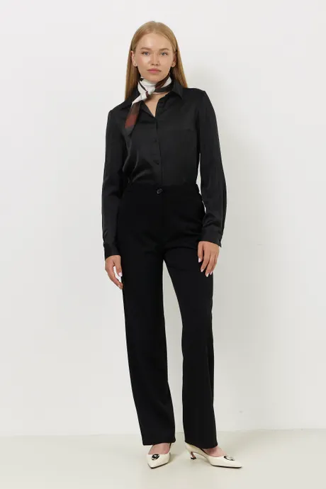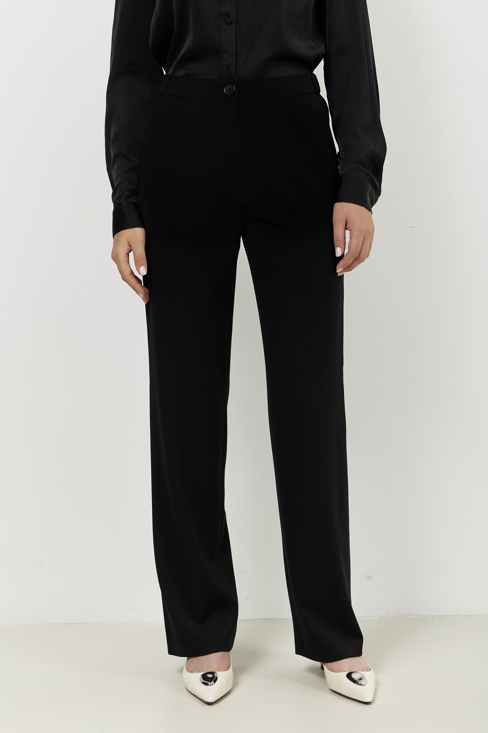 Брюки на высокой посадке, прямые, на резинке «Гларус» черные