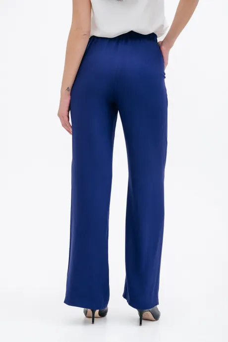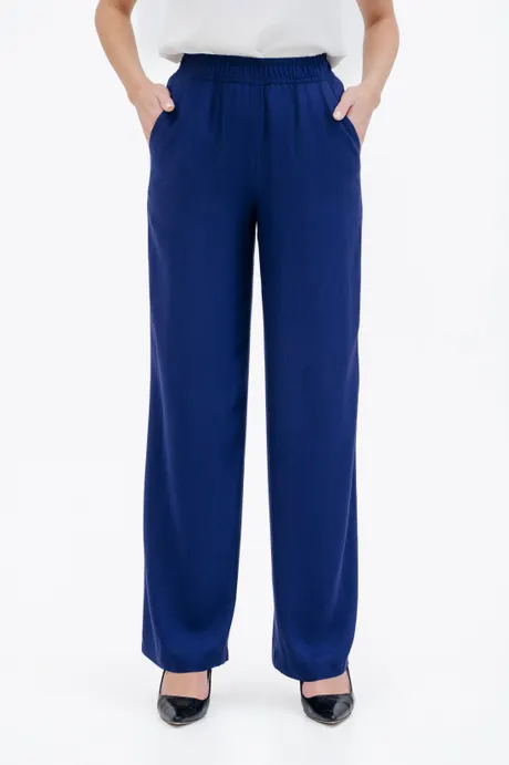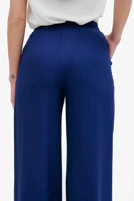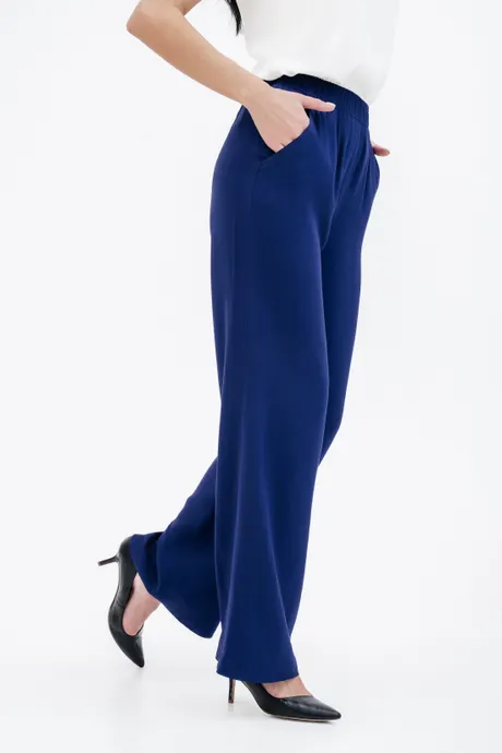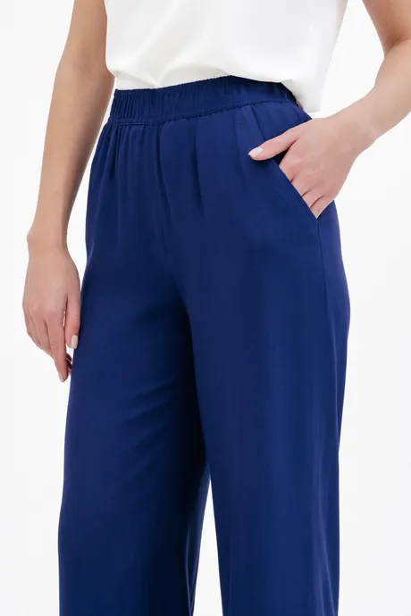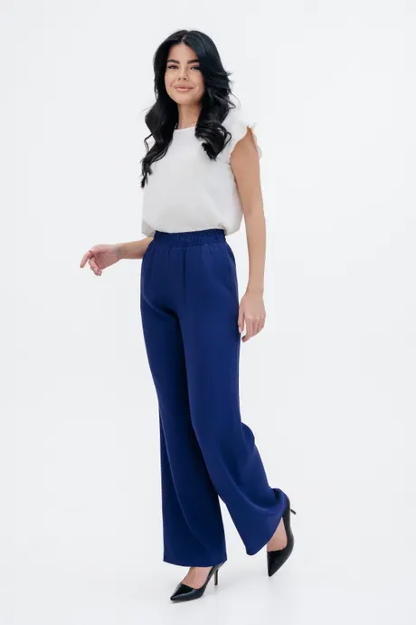 Брюки на высокой посадке, прямые, на круговой резинке «Штапель» синие