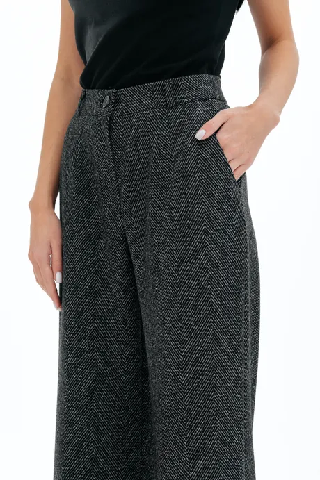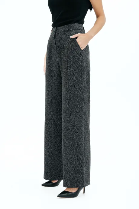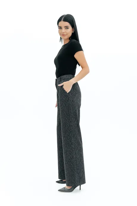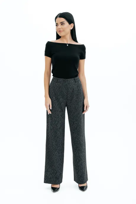 Брюки на высокой посадке, прямые, на резинке «Ёлочка крупная» серые