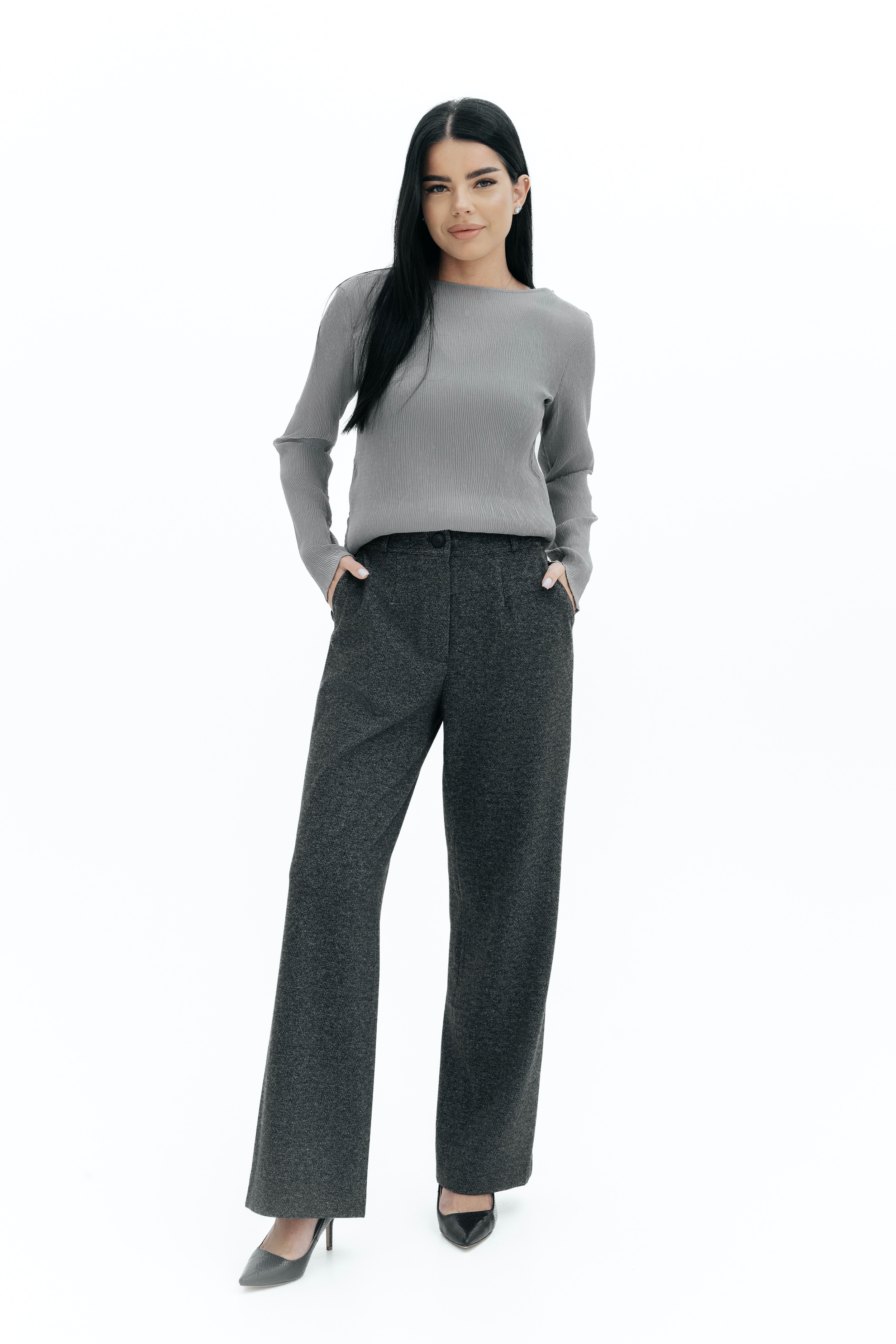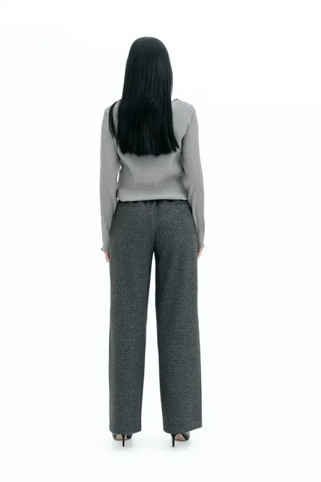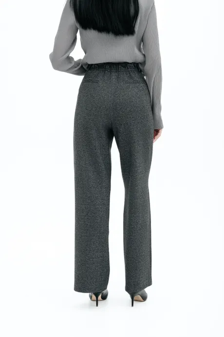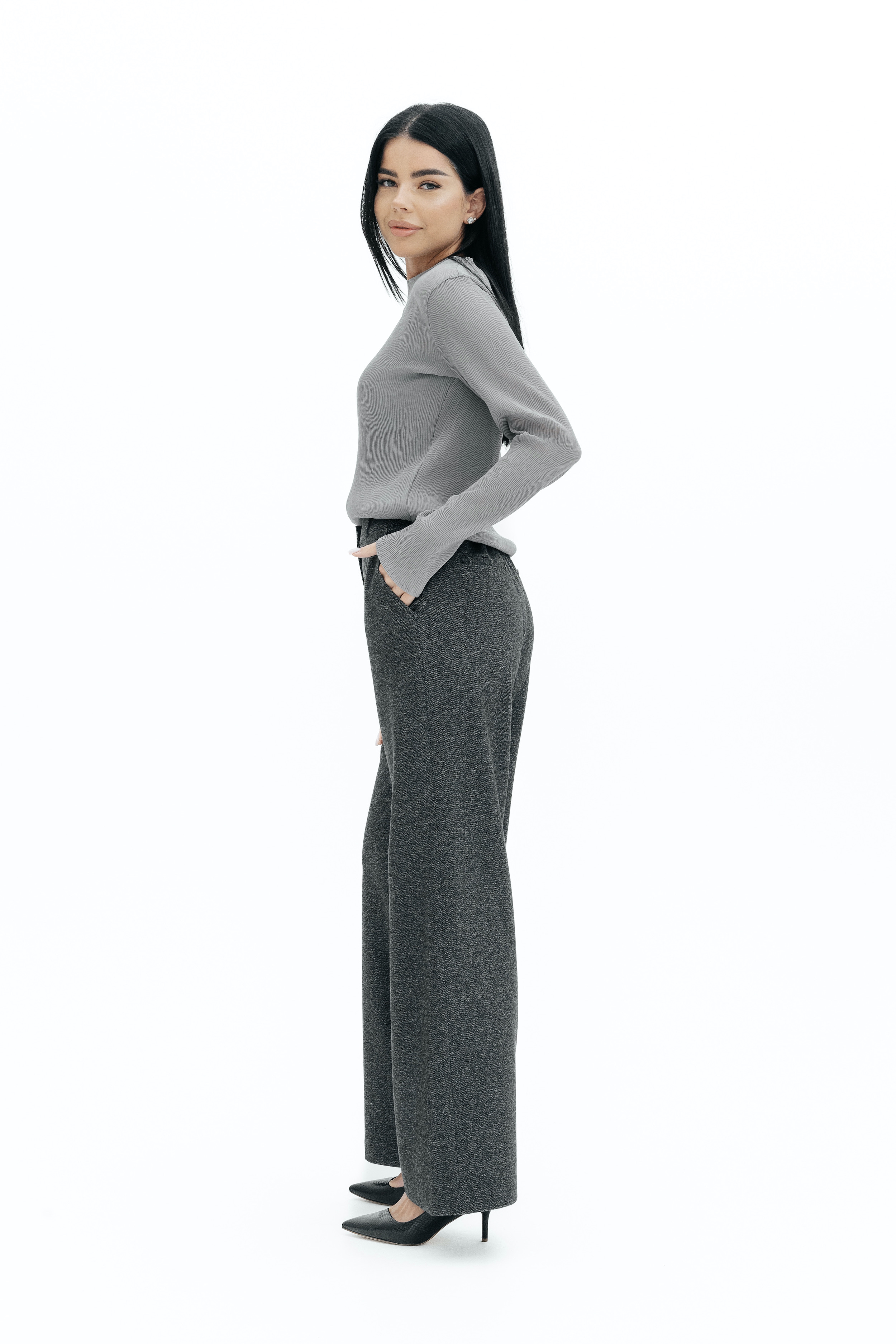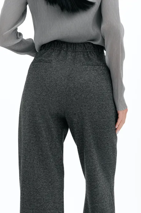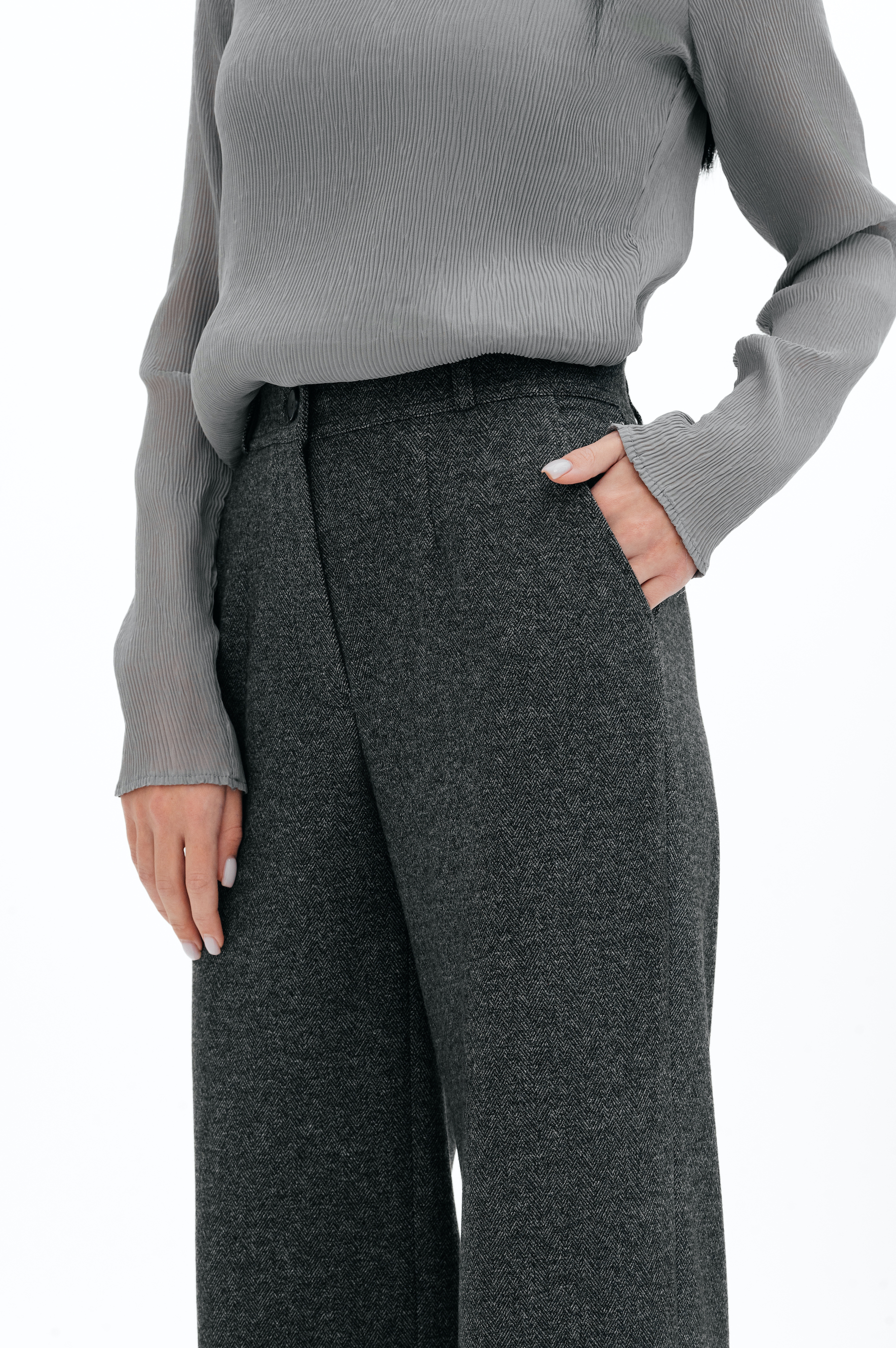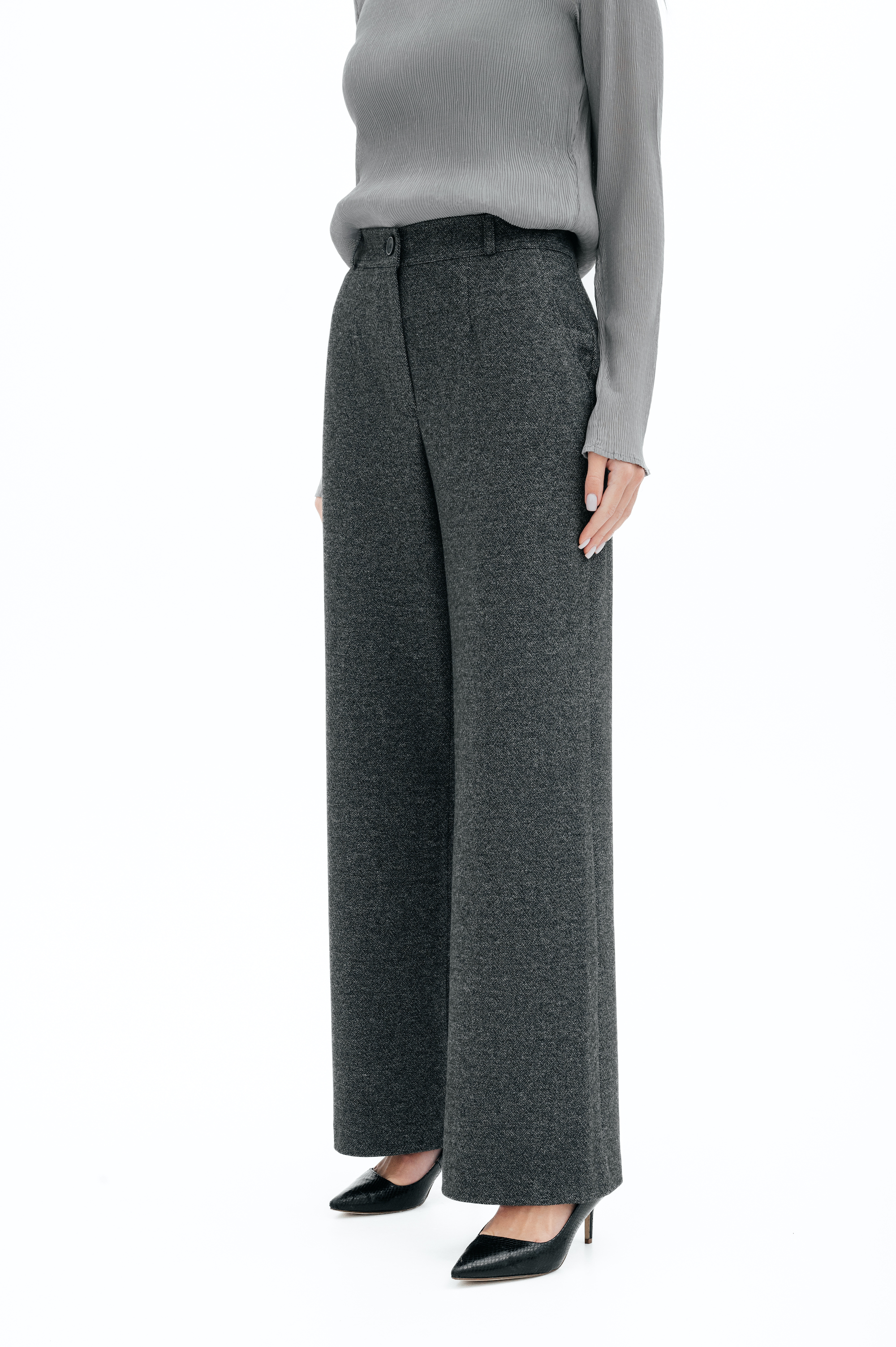 Брюки на высокой посадке, широкие, на резинке «Ёлочка мелкая» серые