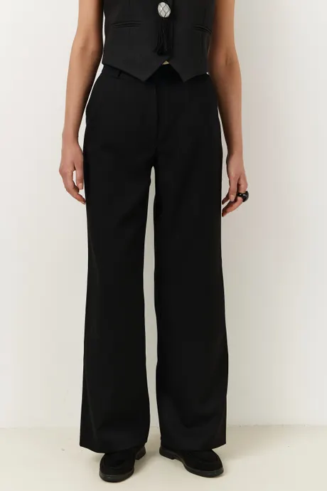 Брюки на высокой посадке, прямые на резинке «Амальфи» черные