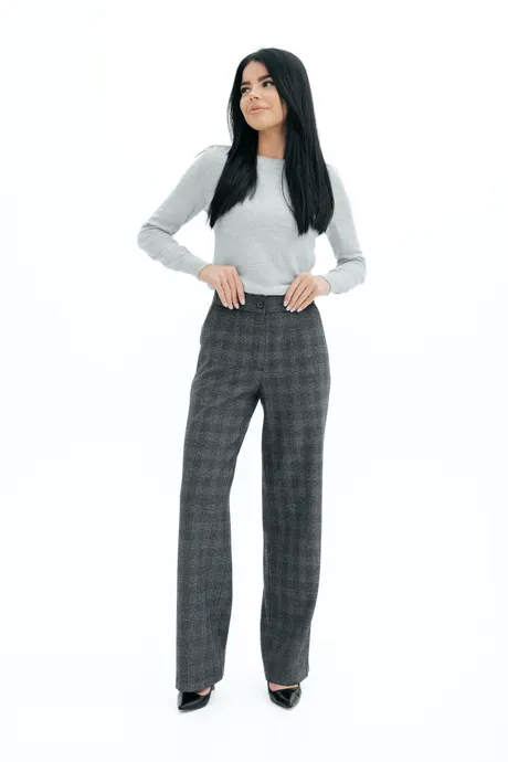 Брюки на высокой посадке, прямые, на резинке «Ирида» серые
