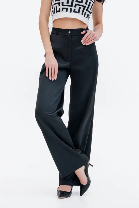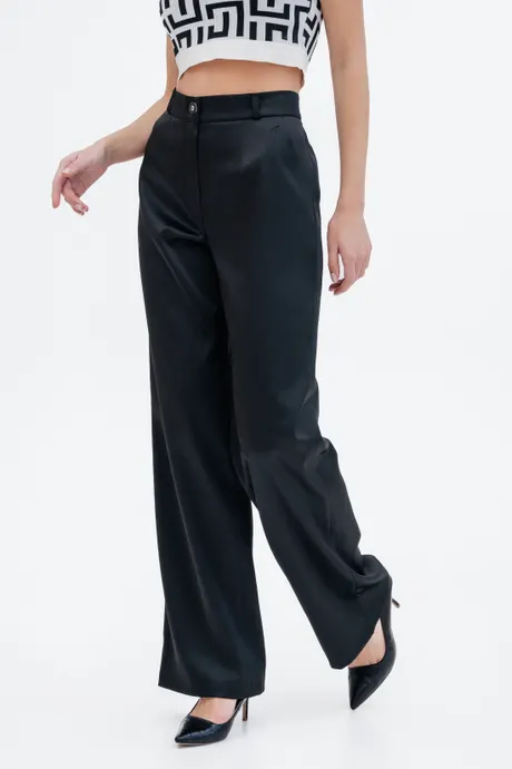 Хотите выглядеть стильно и элегантно? Предлагаем купить качественные брюки на высокой посадке, выполненные из атласной ткани. Они добавят образу утонченности, а благодаря широкому крою и комфортному поясу идеально подойдут для разных ситуаций – от деловых встреч до вечерних мероприятий.