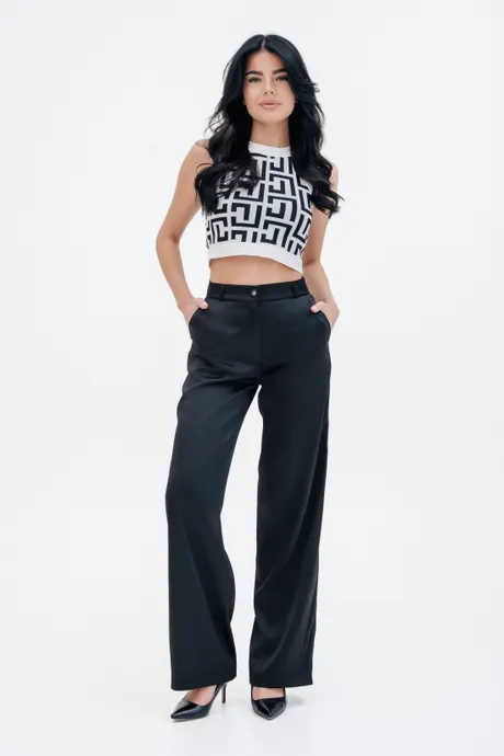 Черный цвет, удобные карманы и декоративные элементы делают модель универсальной и актуальной. Носите брюки с ремнем, сочетайте с блузами или кроп-топами – и каждый раз получайте новый образ!
