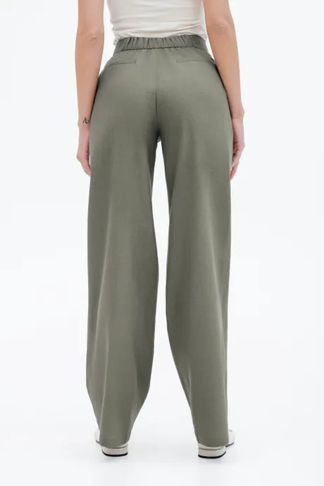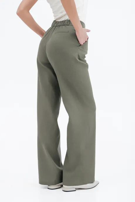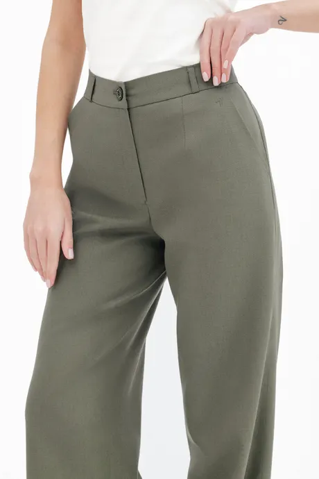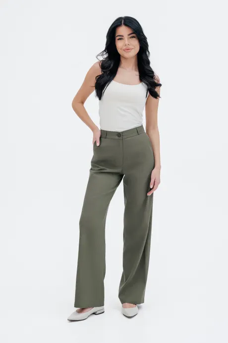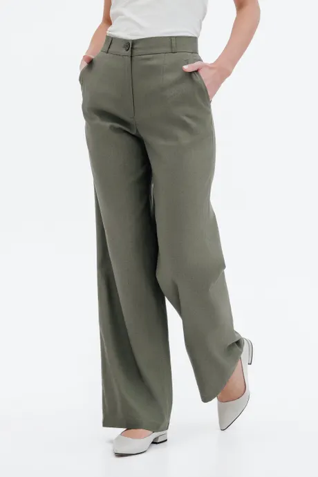 Если вы ищете легкие, стильные и удобные брюки на лето, обратите внимание на эту модель. Брюки выполнены из дышащей смесовой ткани (лен, полиэстер, вискоза), которая обеспечивает комфорт даже в жаркую погоду. Высокая посадка, резинка сзади, боковые карманы и имитация прорезных карманов сзади делают модель элегантной, практичной и универсальной. Светло-зеленый цвет легко сочетается с базовым гардеробом, а шлёвки на поясе позволяют дополнить образ ремнем.