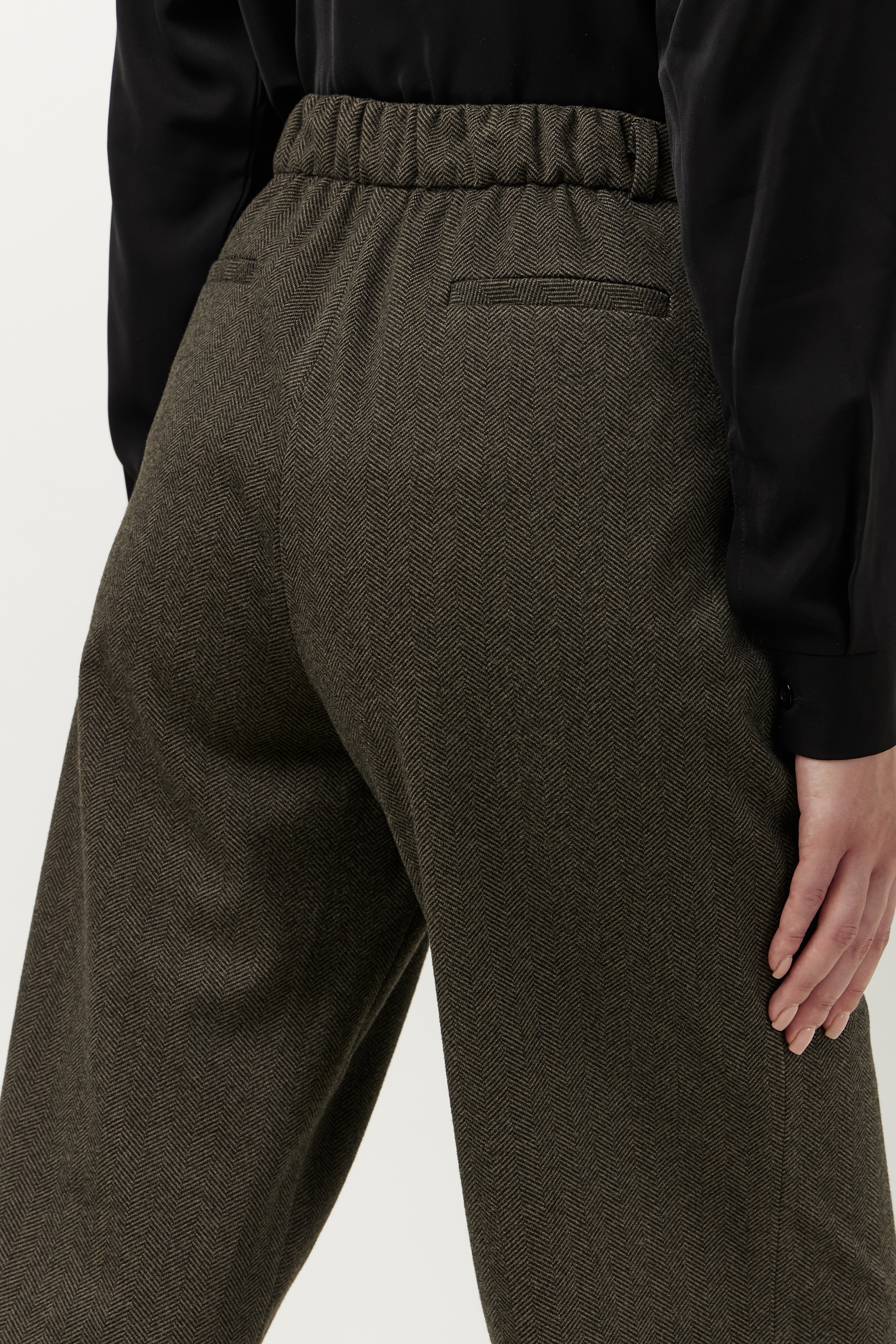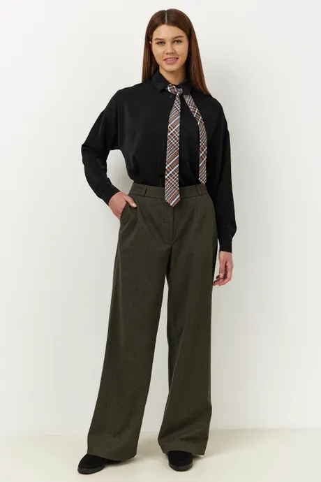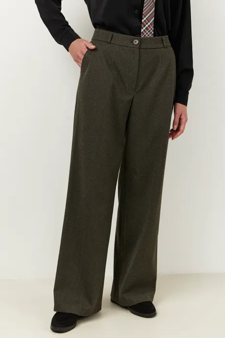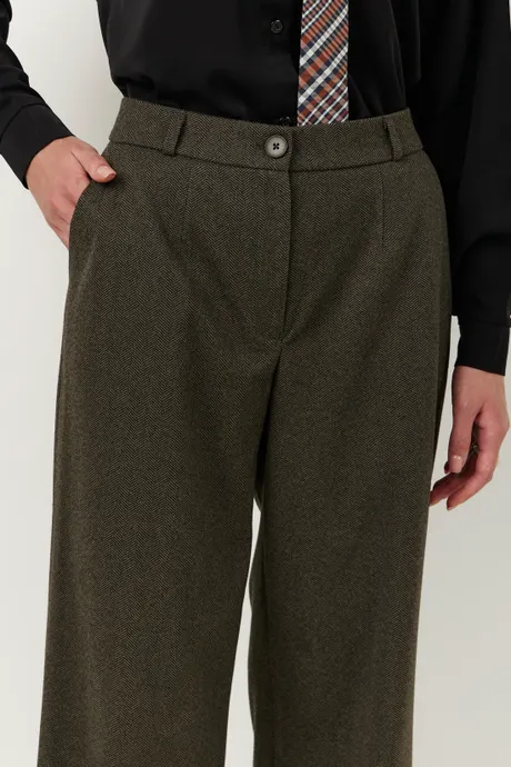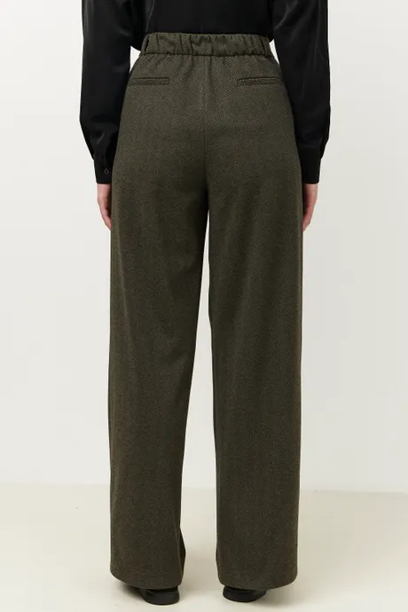 Брюки на высокой посадке, широкие на резинке «Трикотаж Ёлочка» бежево-серые