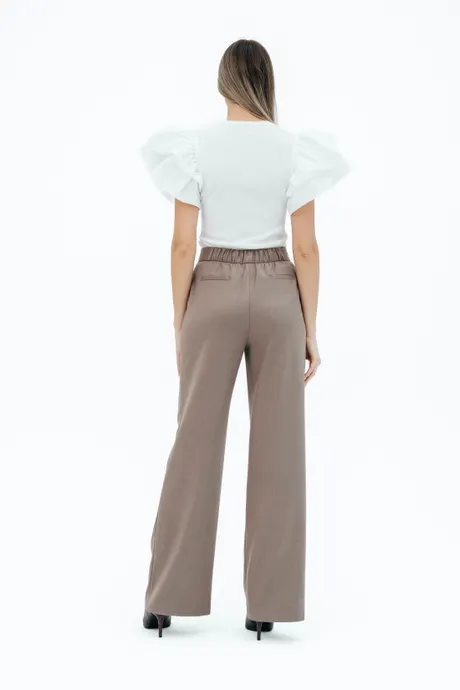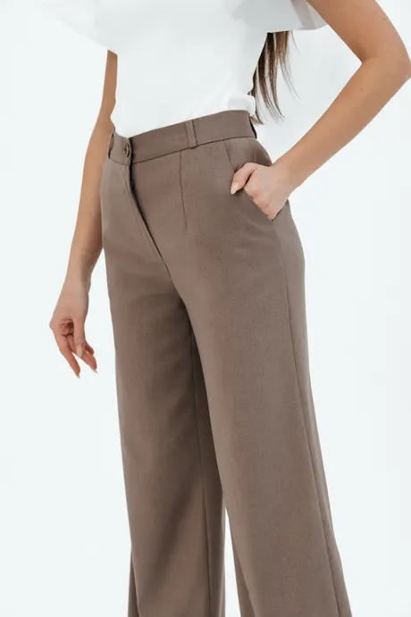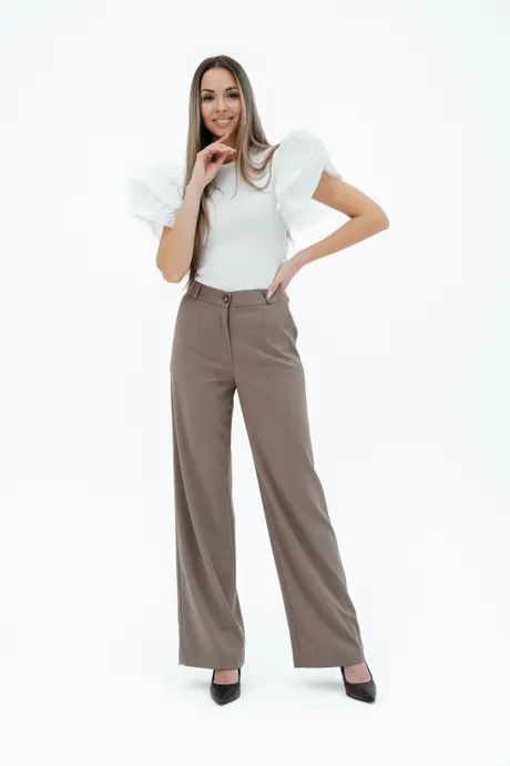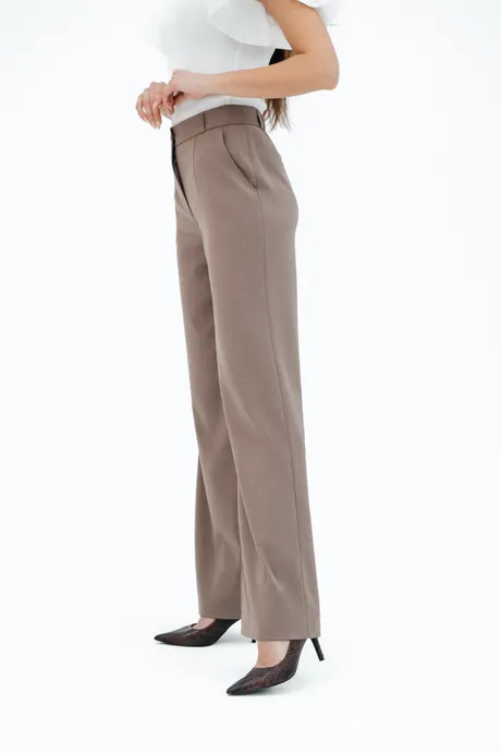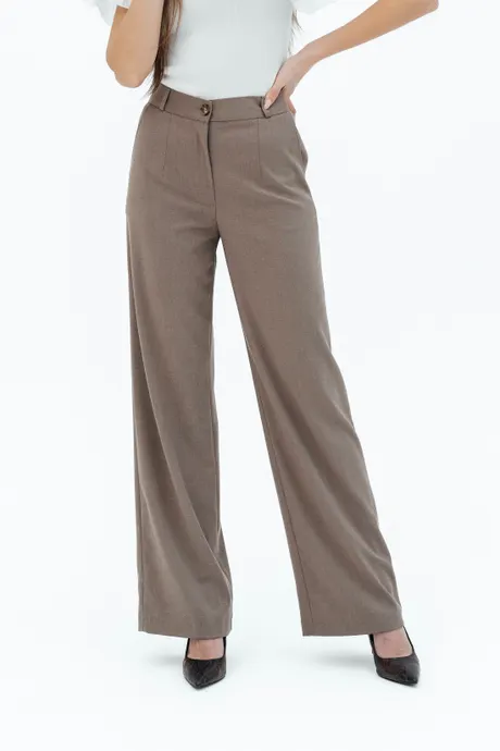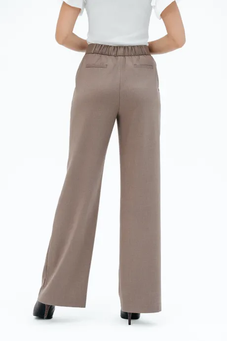 Брюки на высокой посадке, широкие, пояс на резинке «Ругаланн» какао