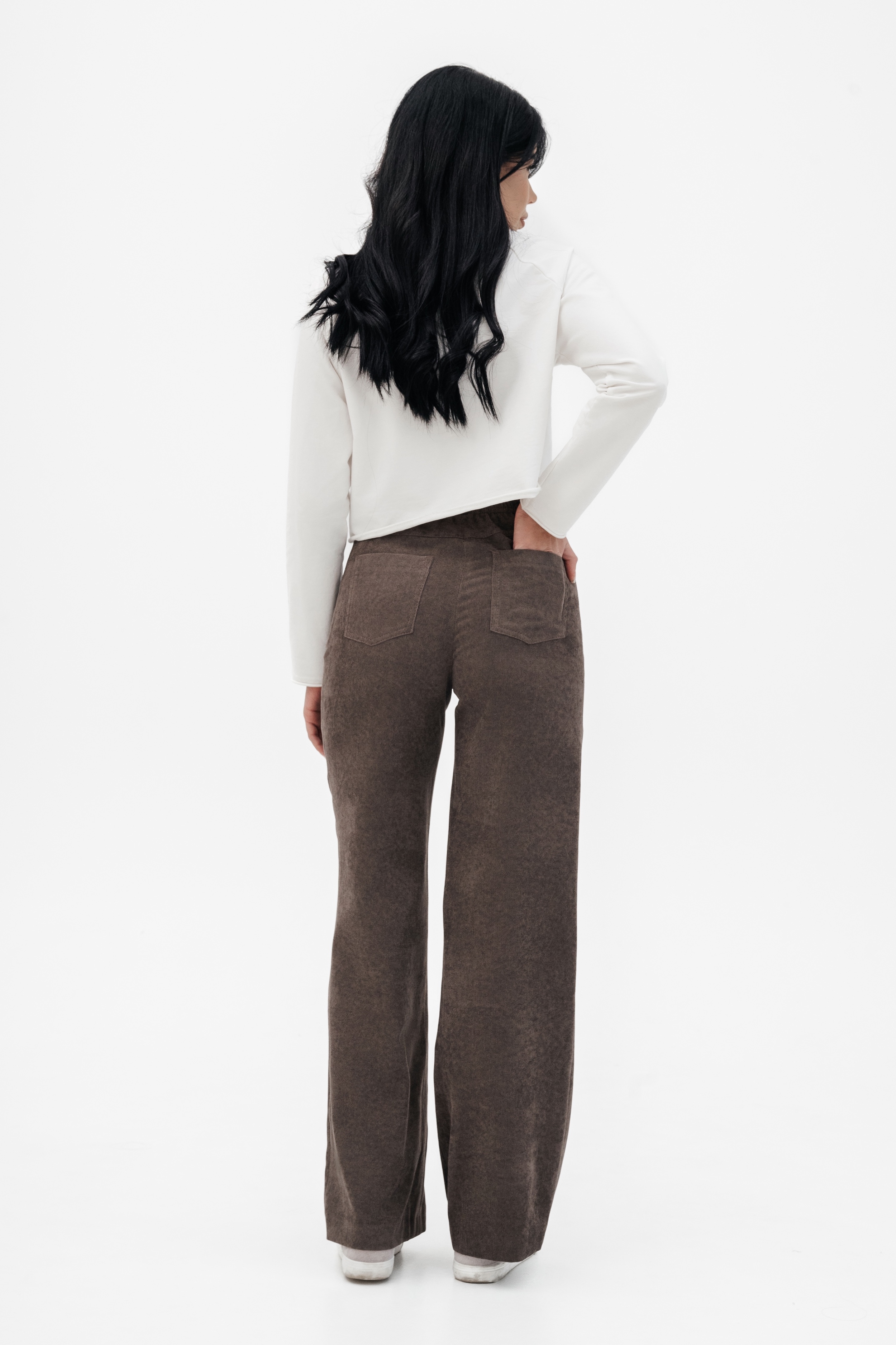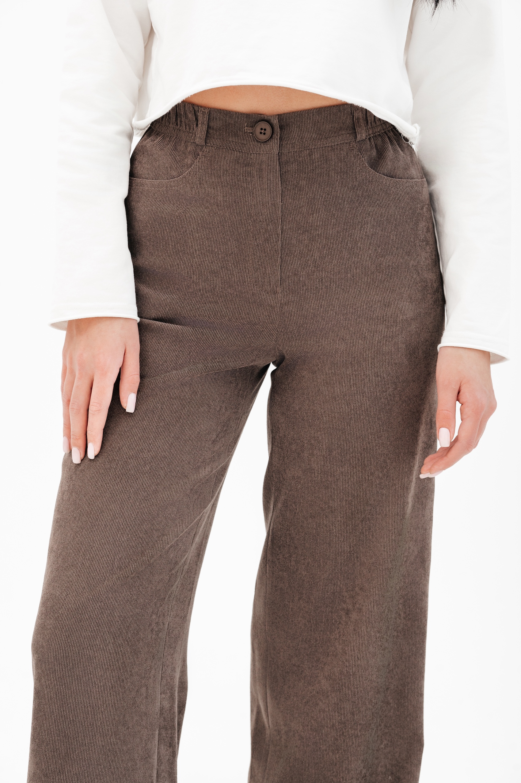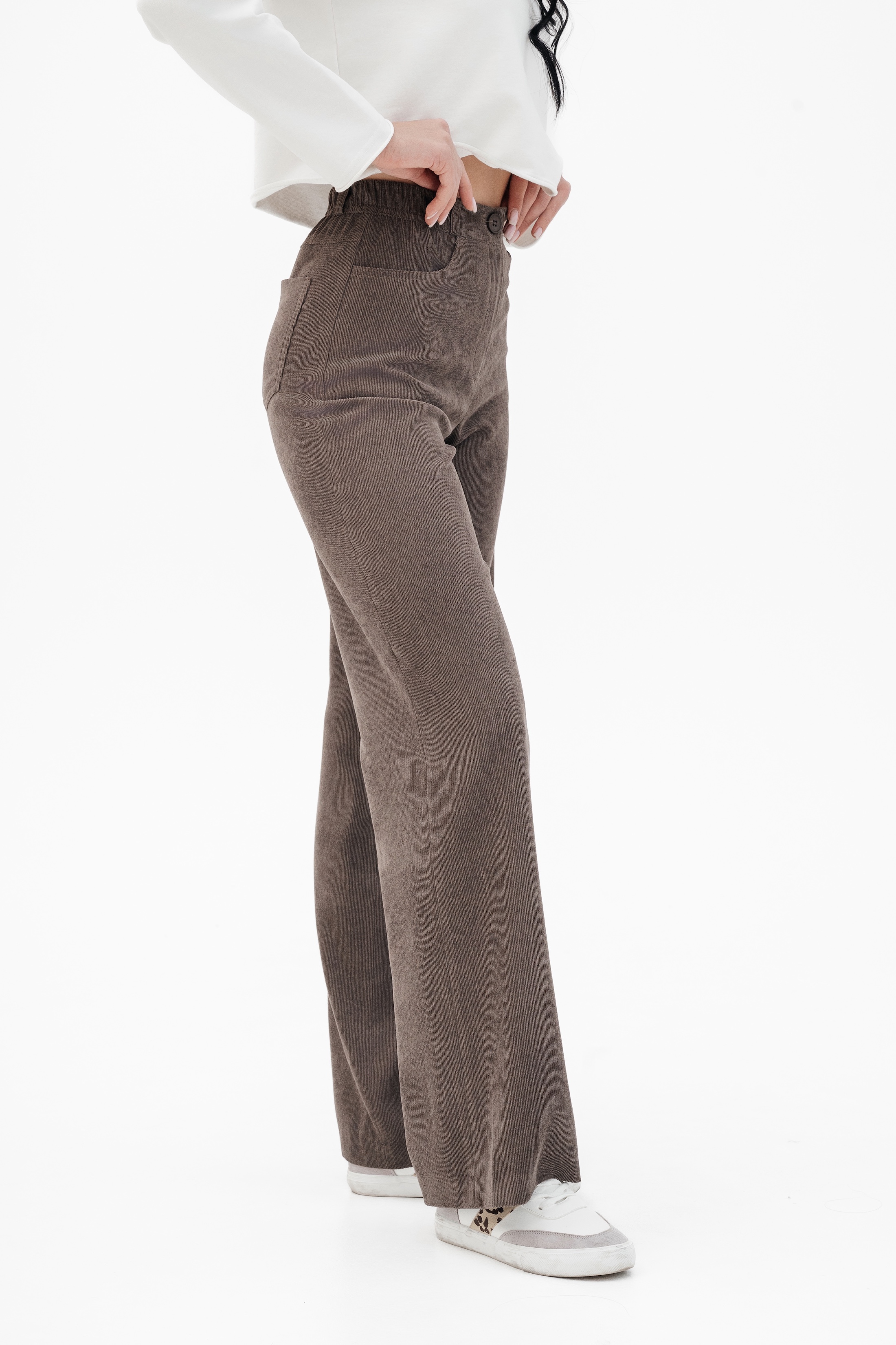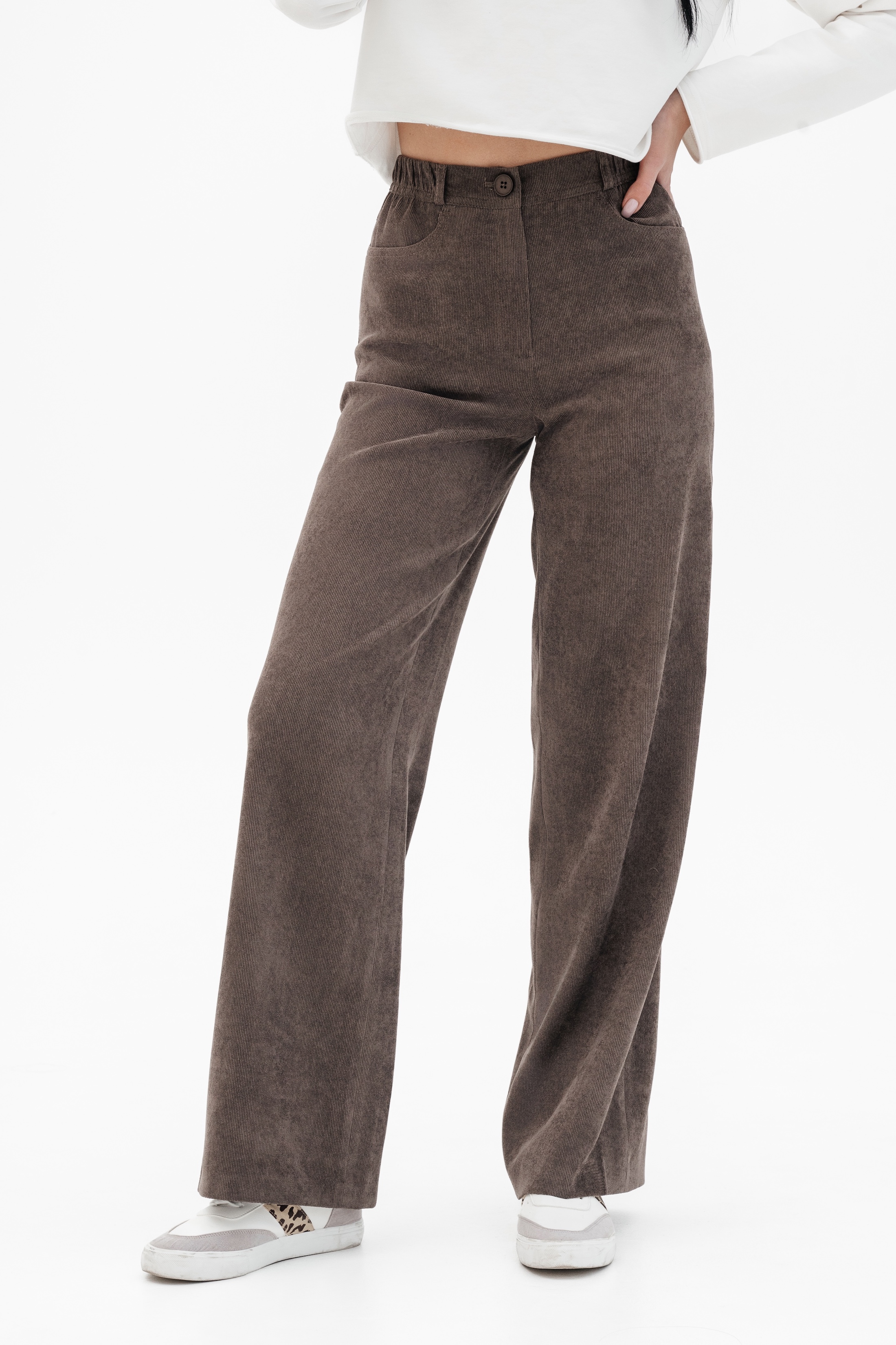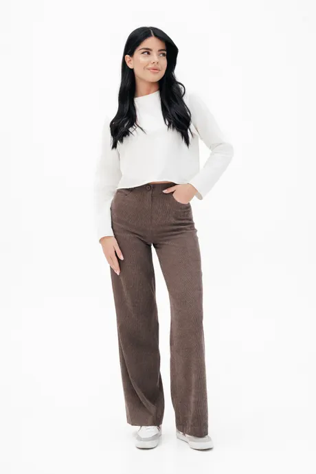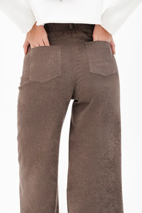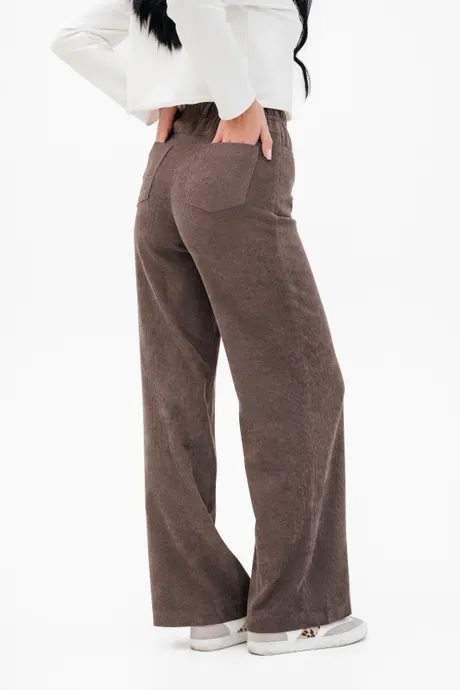 Брюки на высокой посадке, широкие на резинке «Вельвет» коричневые