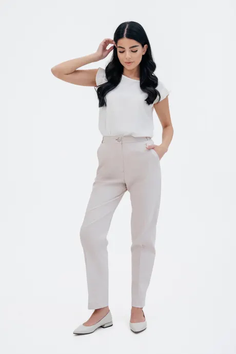 Брюки на высокой посадке, слегка зауженные, пояс на резинке «Хлопок Райбер» бежевые