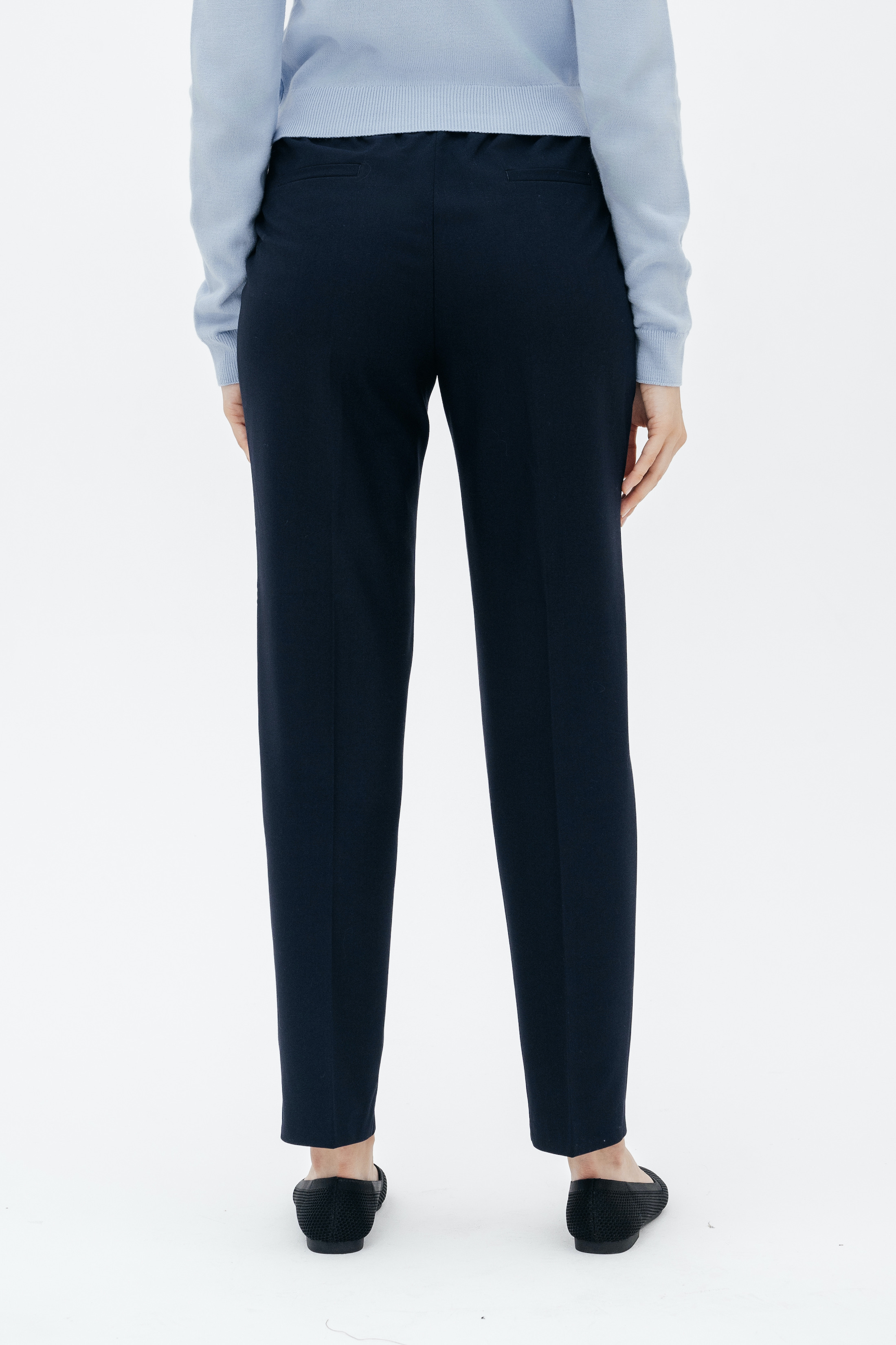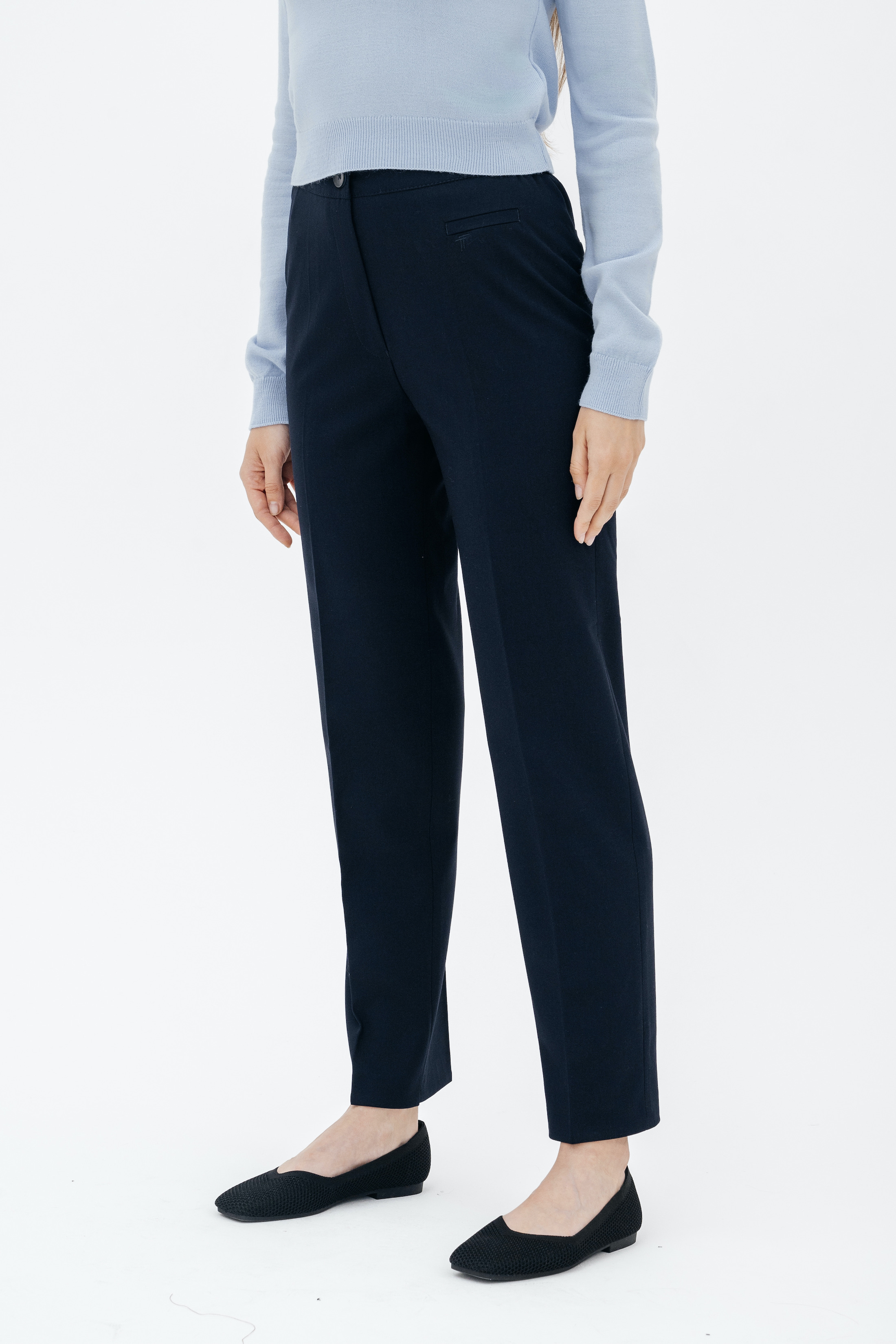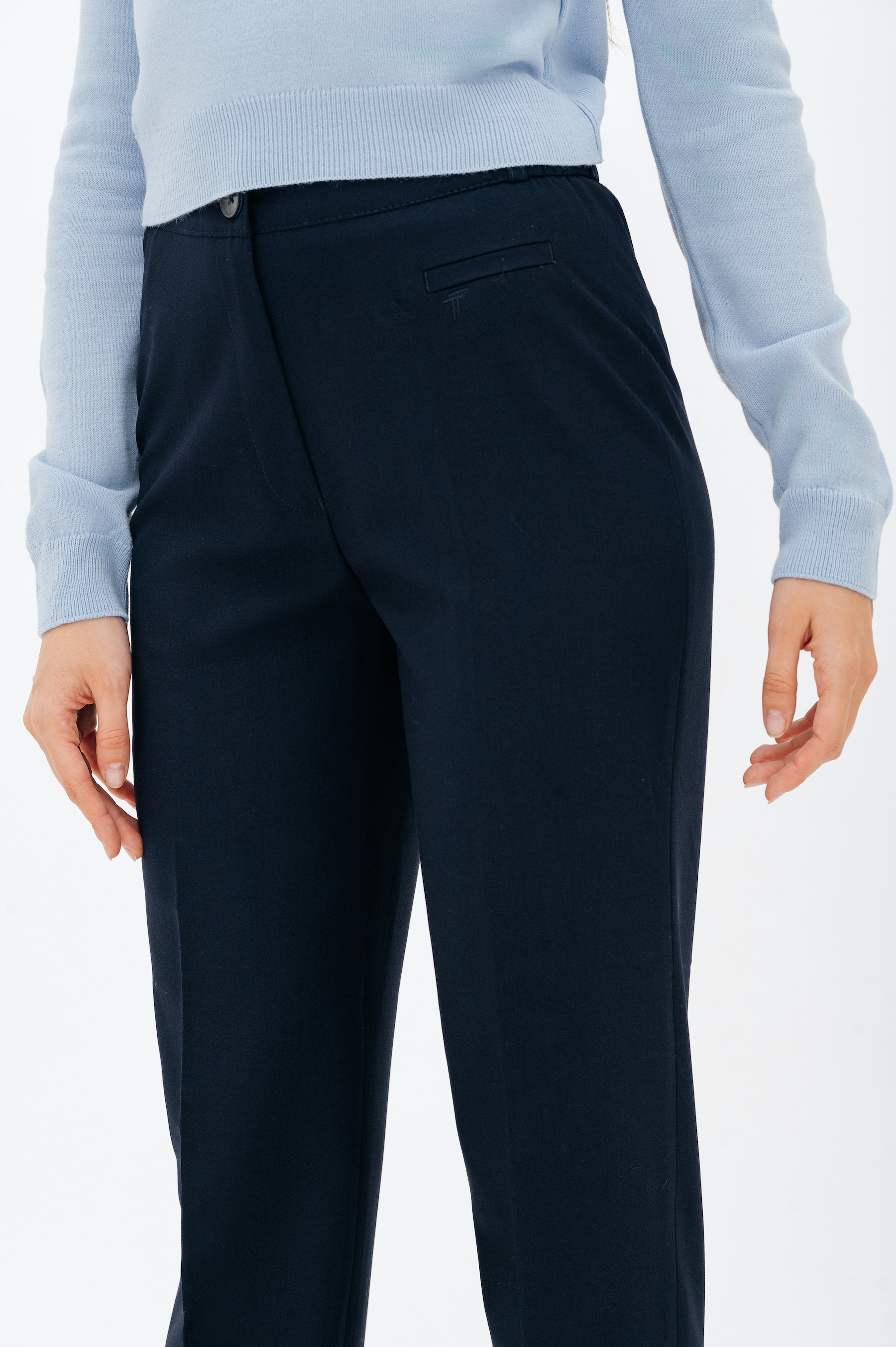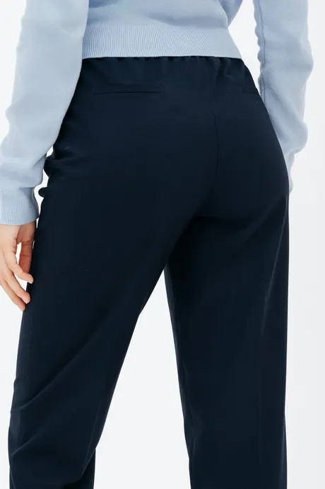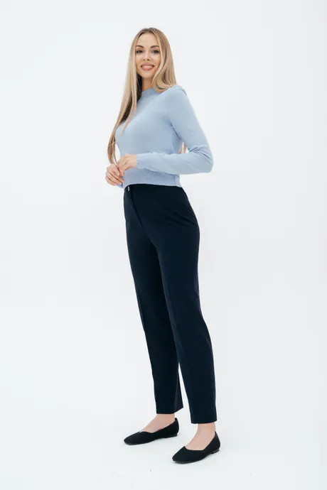Брюки на высокой посадке, слегка зауженные, на резинке «Девон» синие