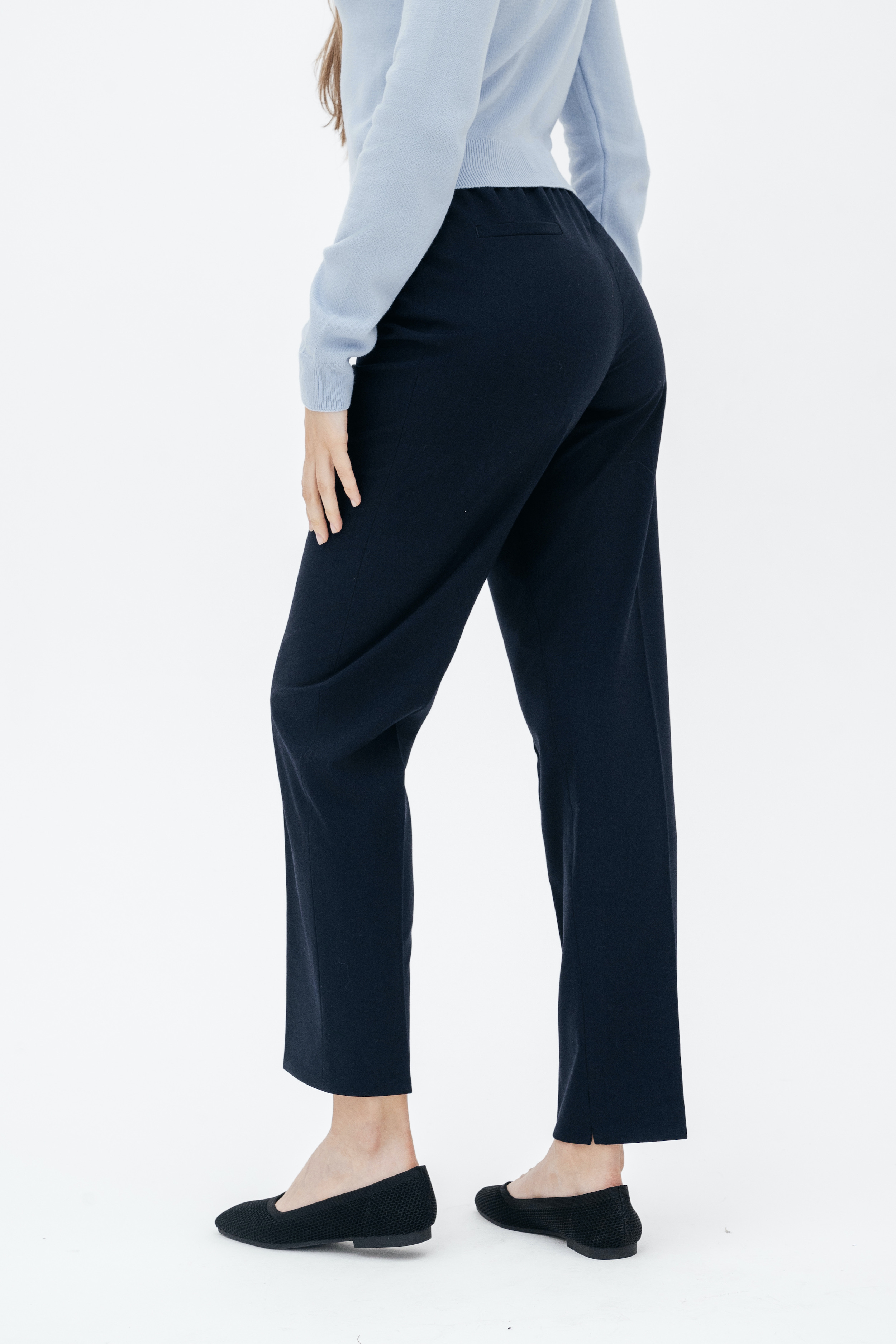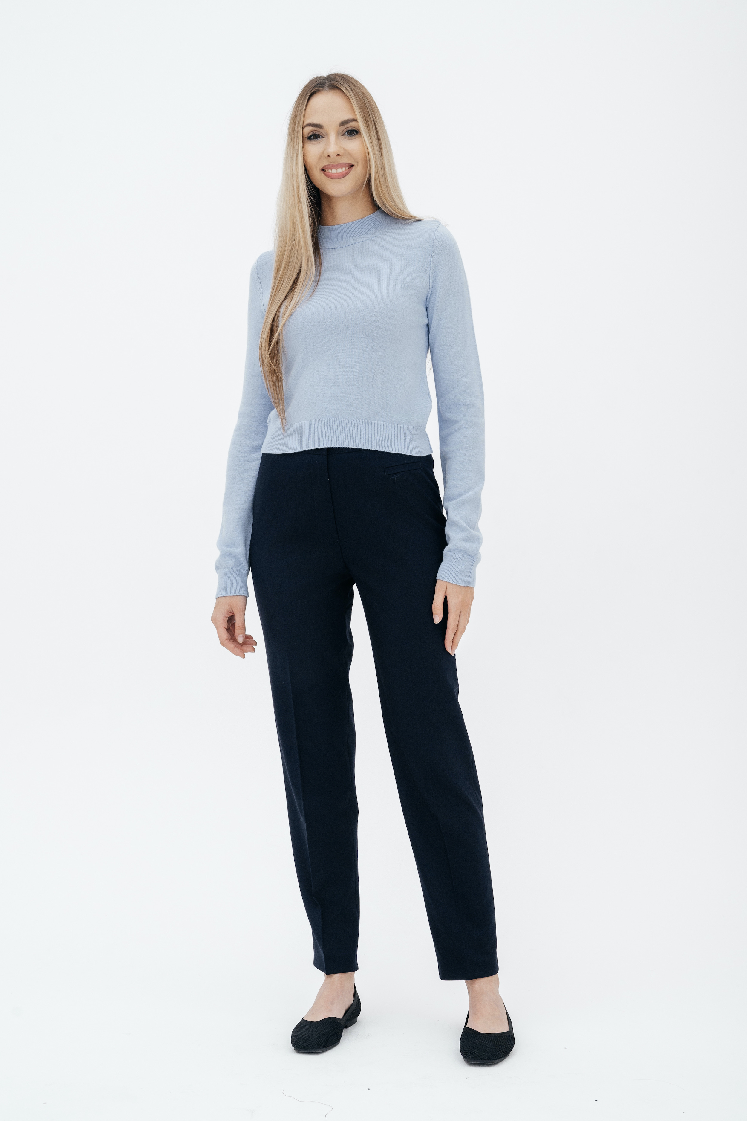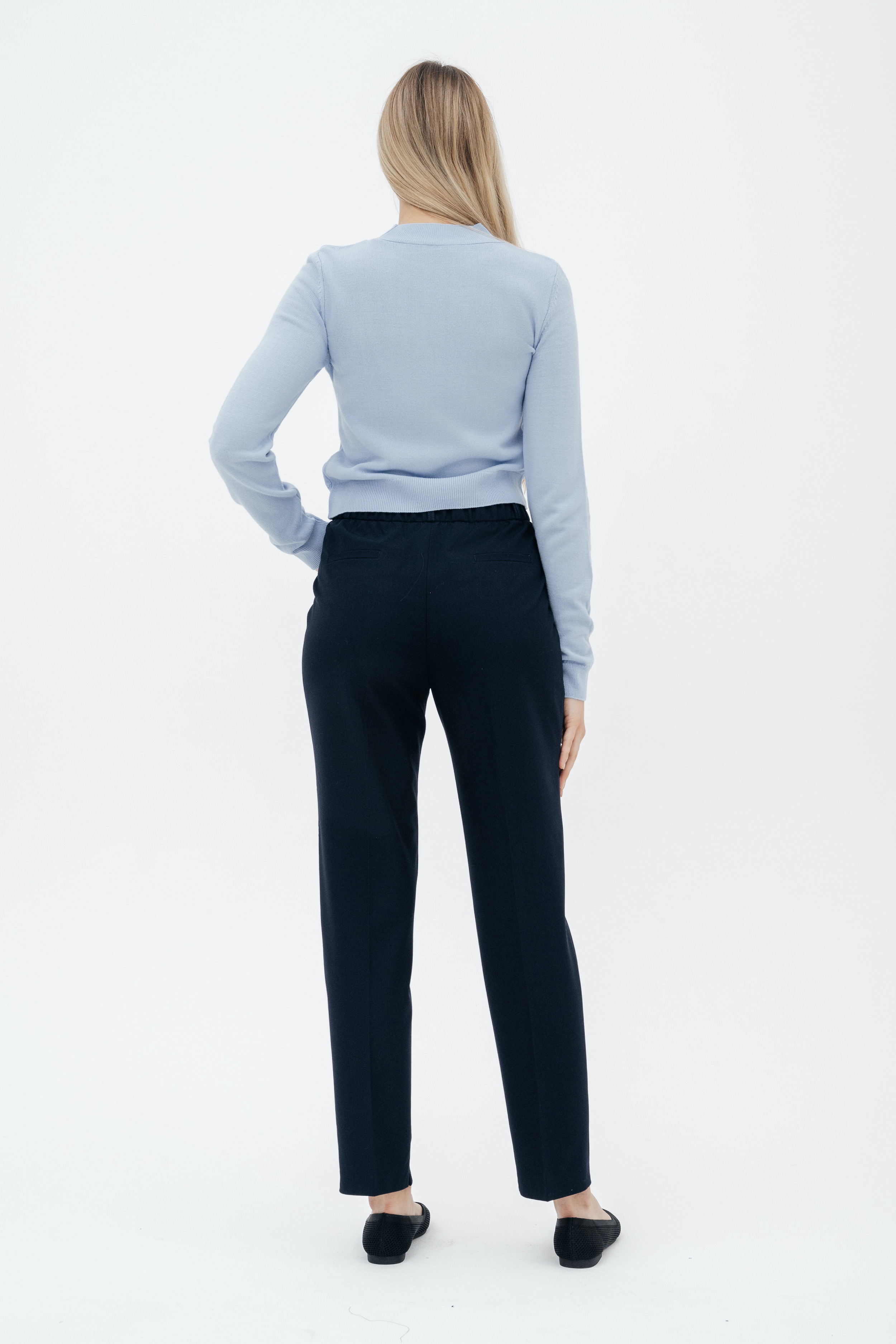 Брюки на высокой посадке, слегка зауженные, на резинке «Девон» синие