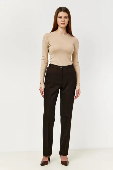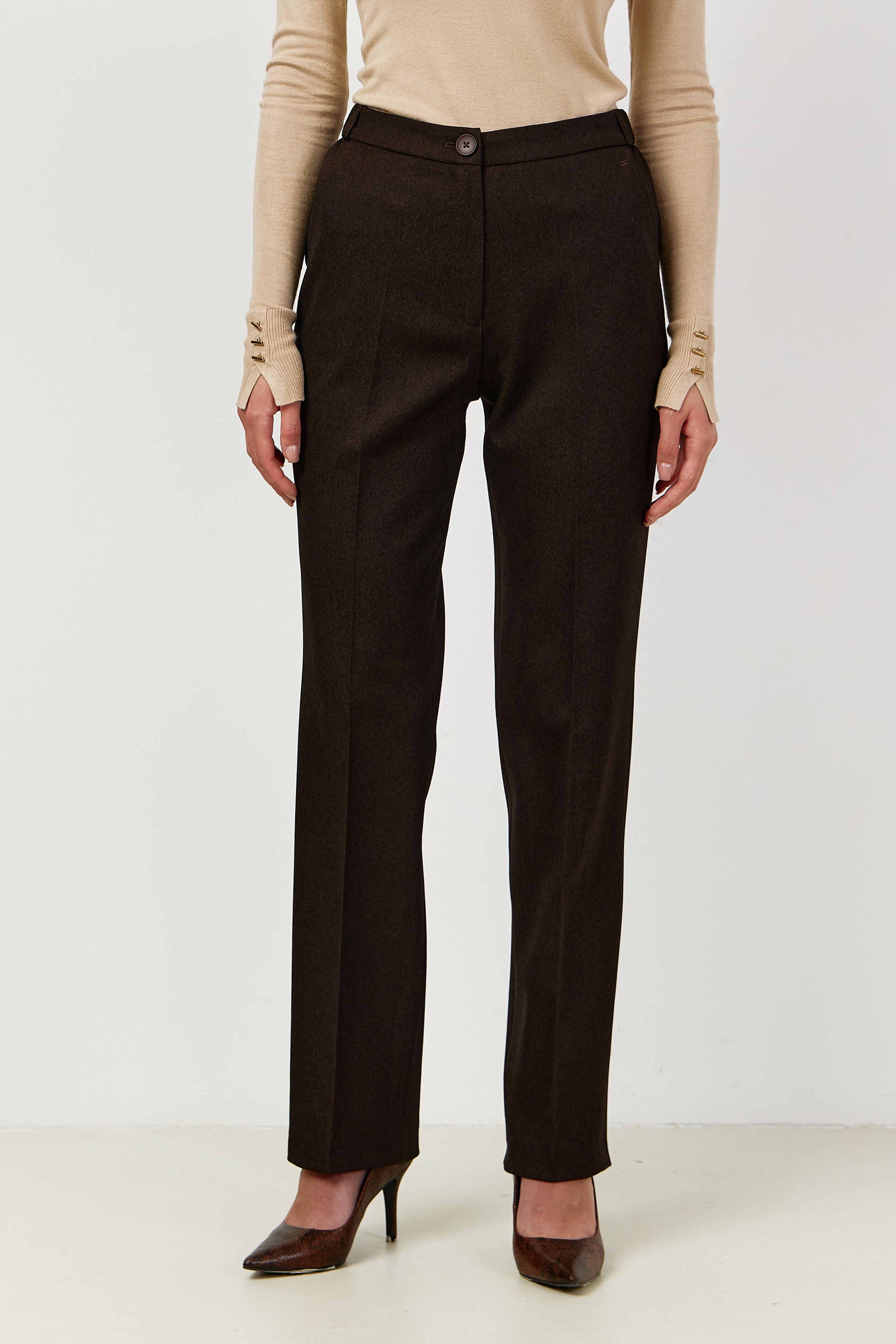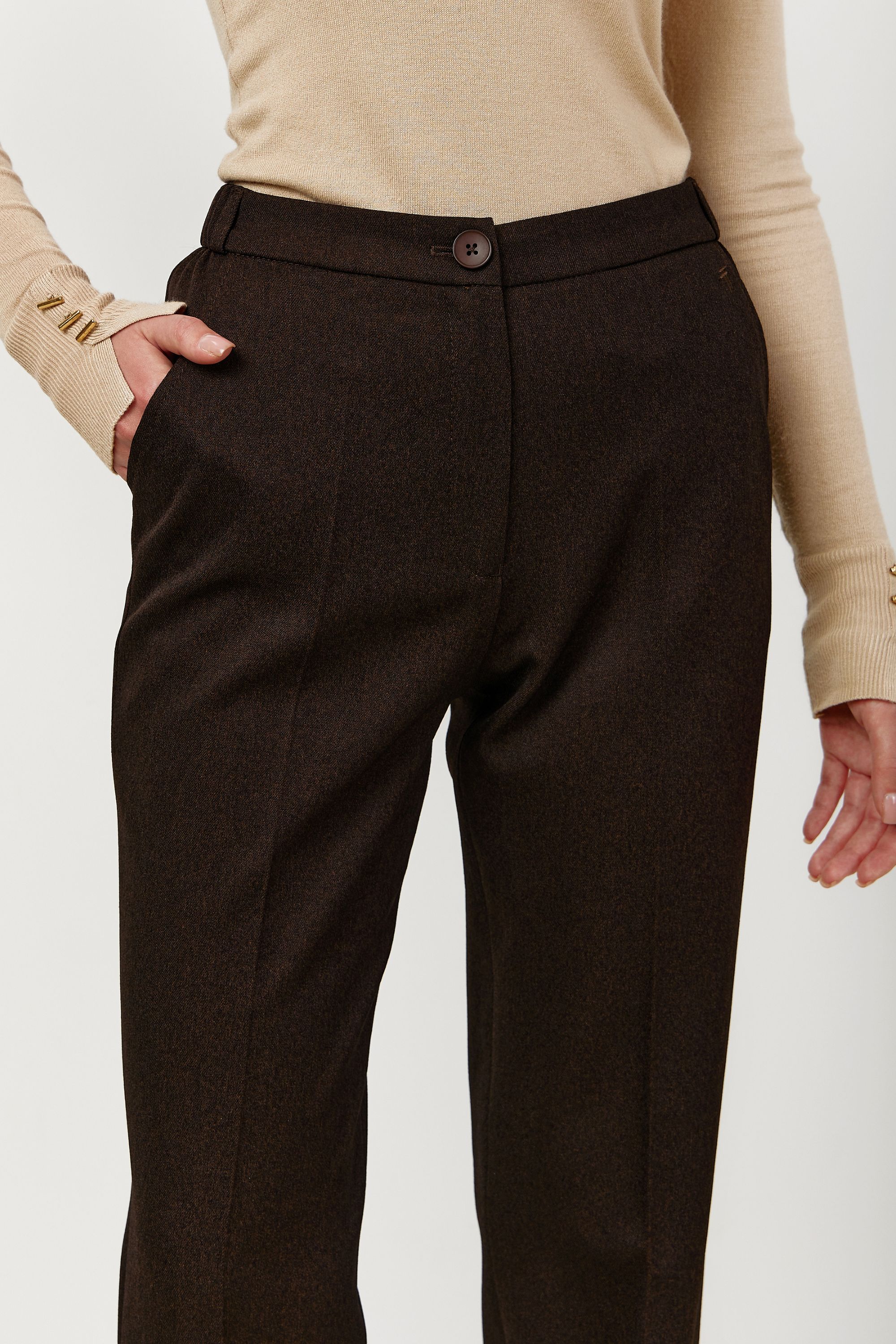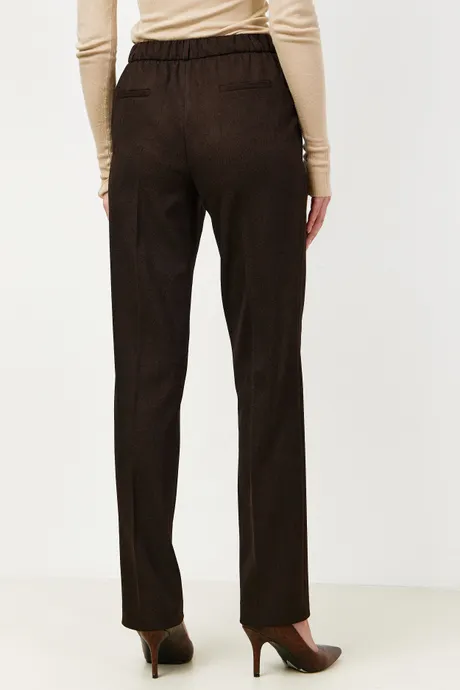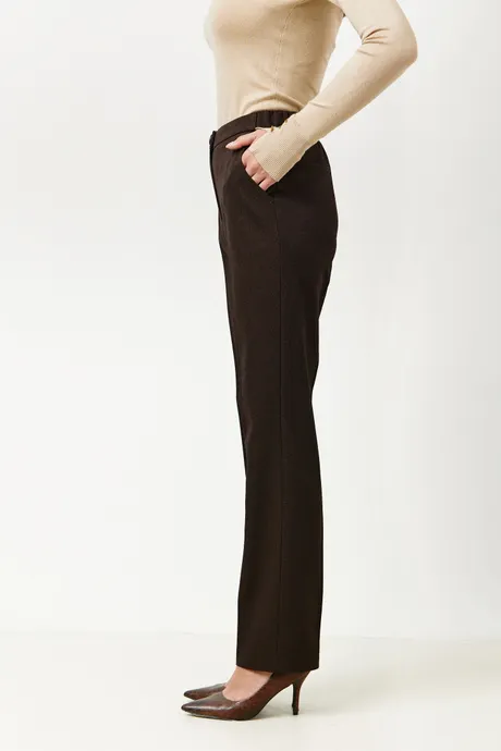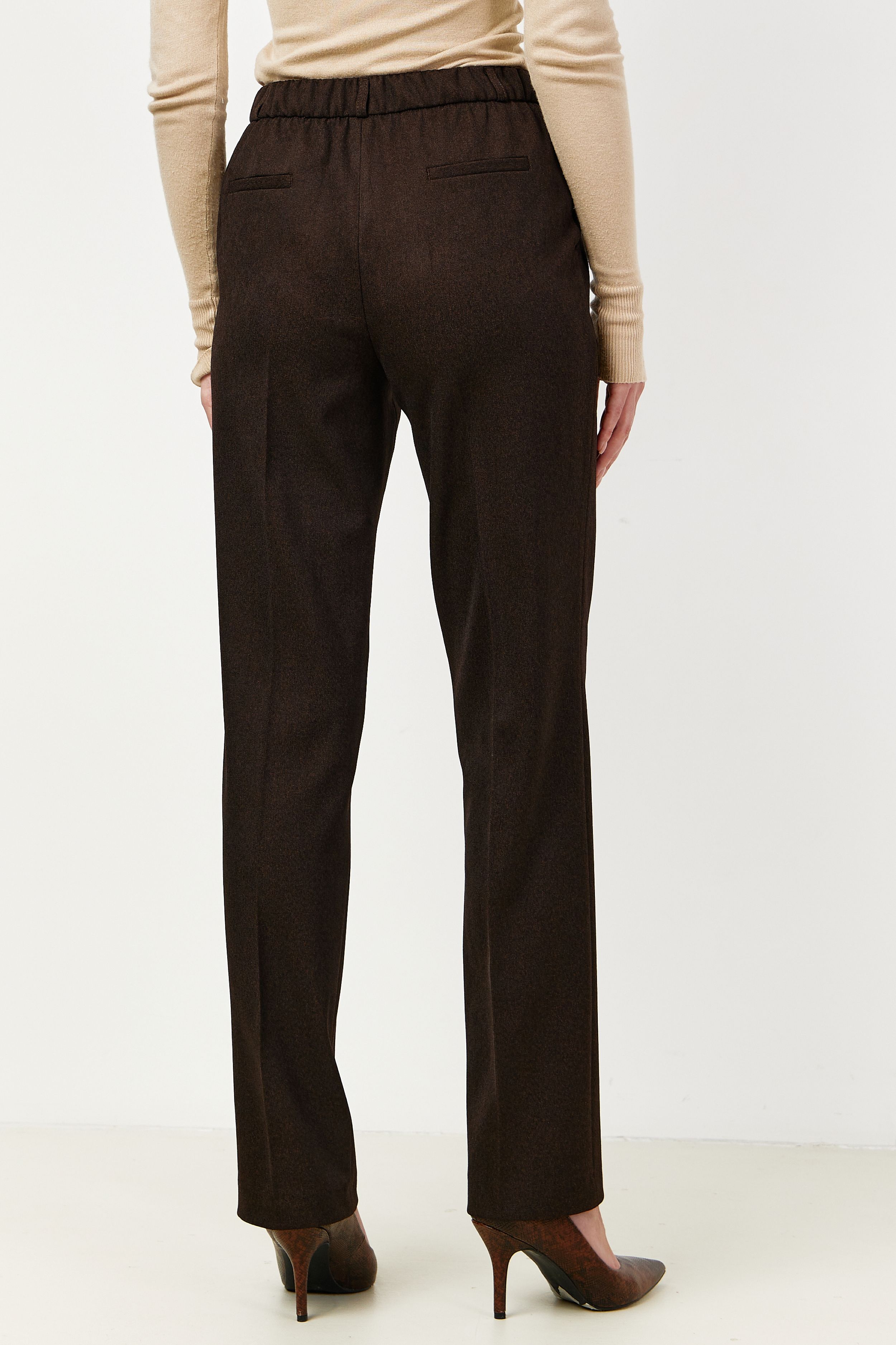 Брюки на высокой посадке, зауженные, на резинке «Элегия» коричневые