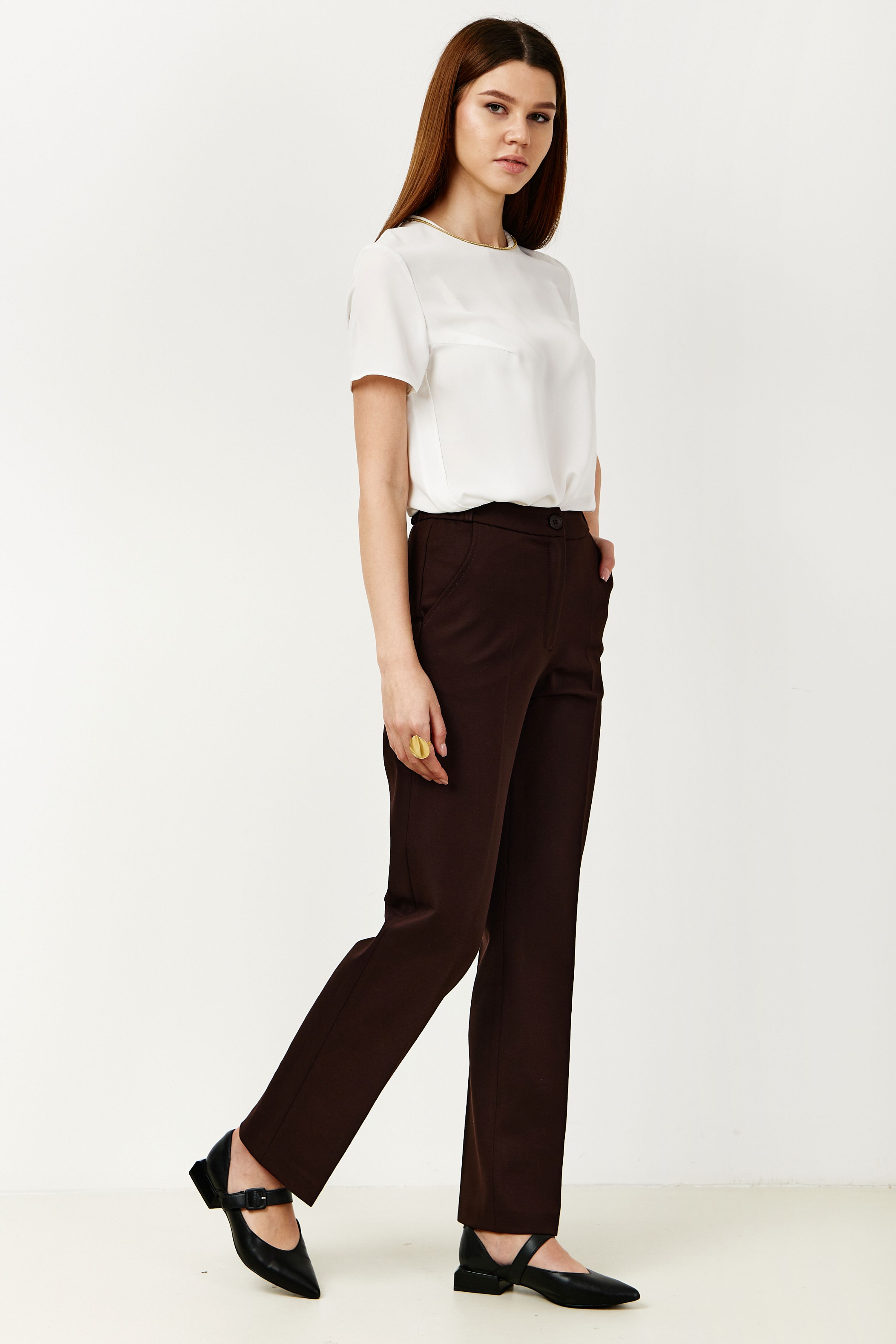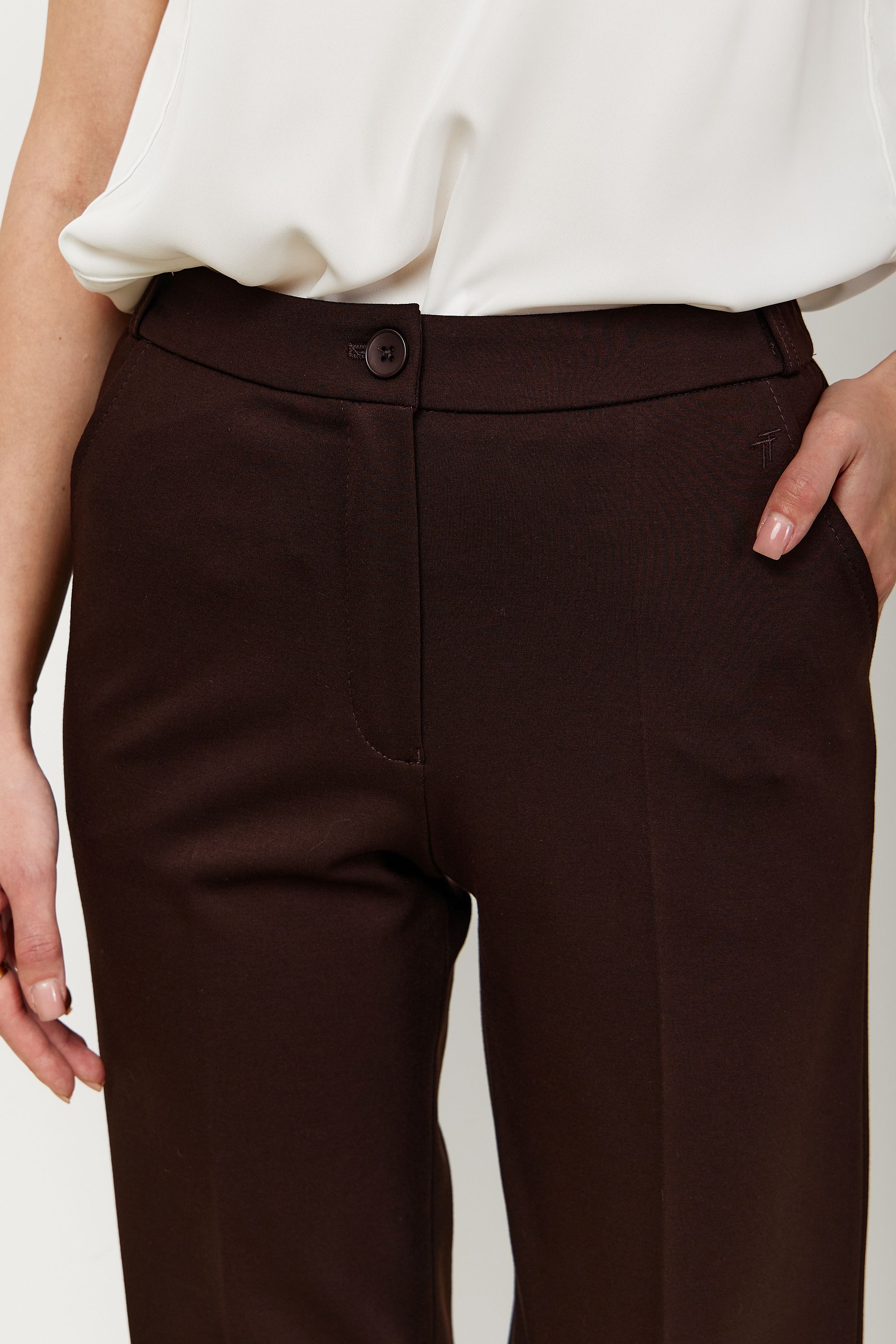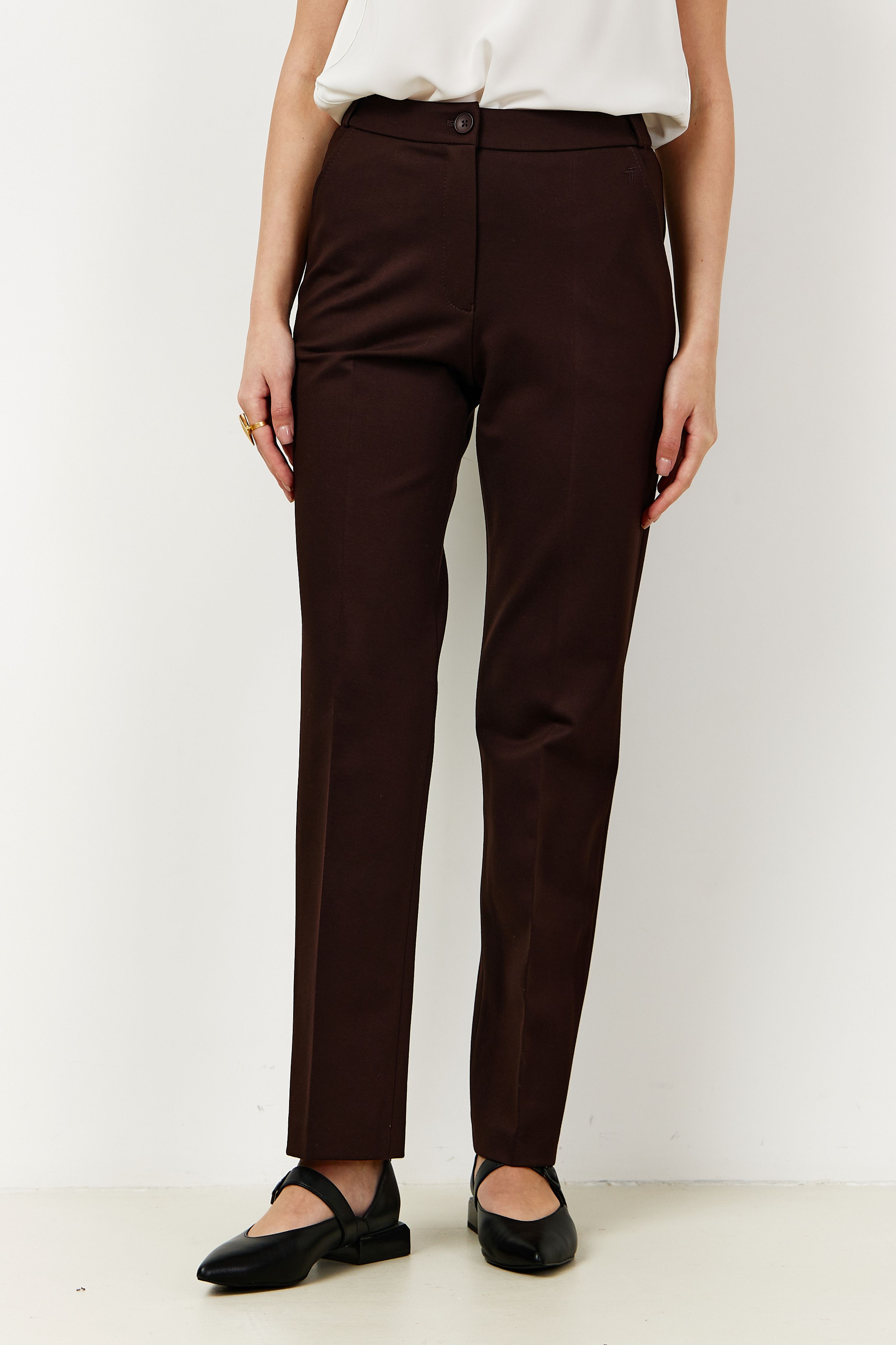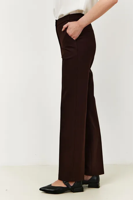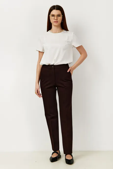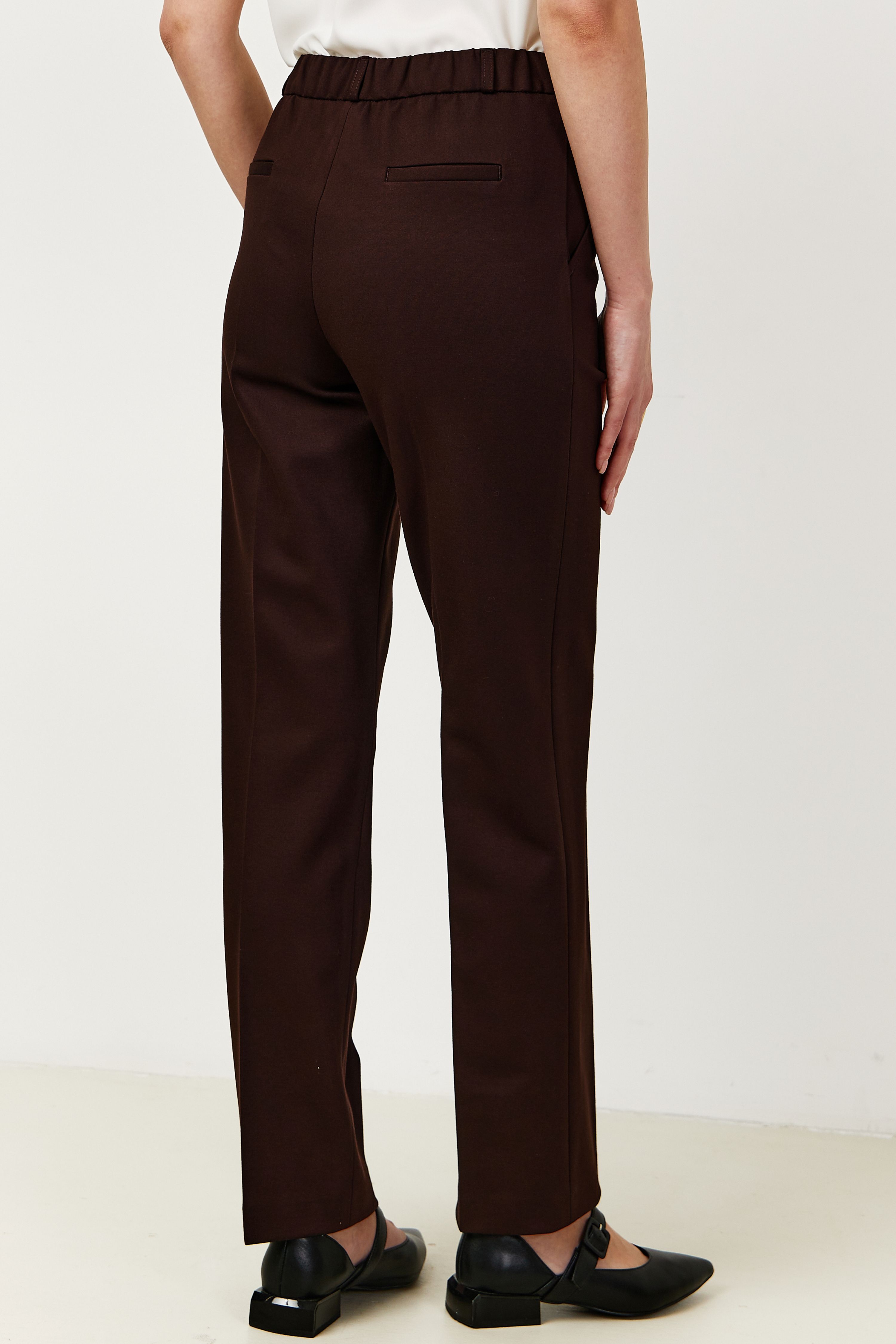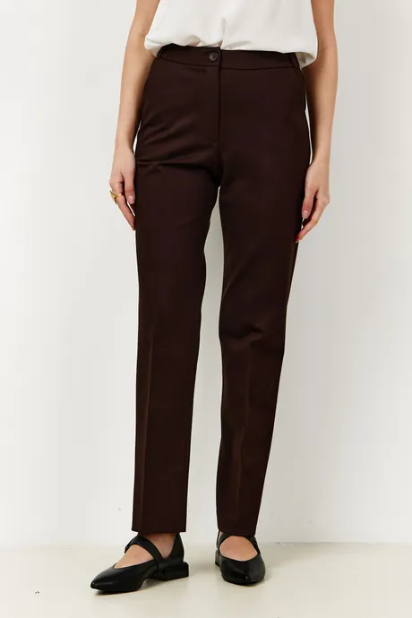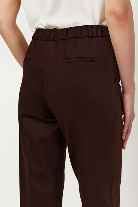 Брюки на высокой посадке зауженные, на резинке «Трикотаж» коричневые