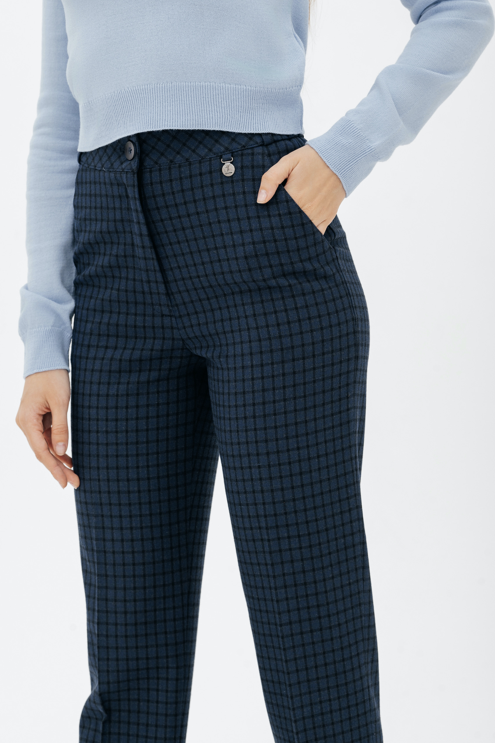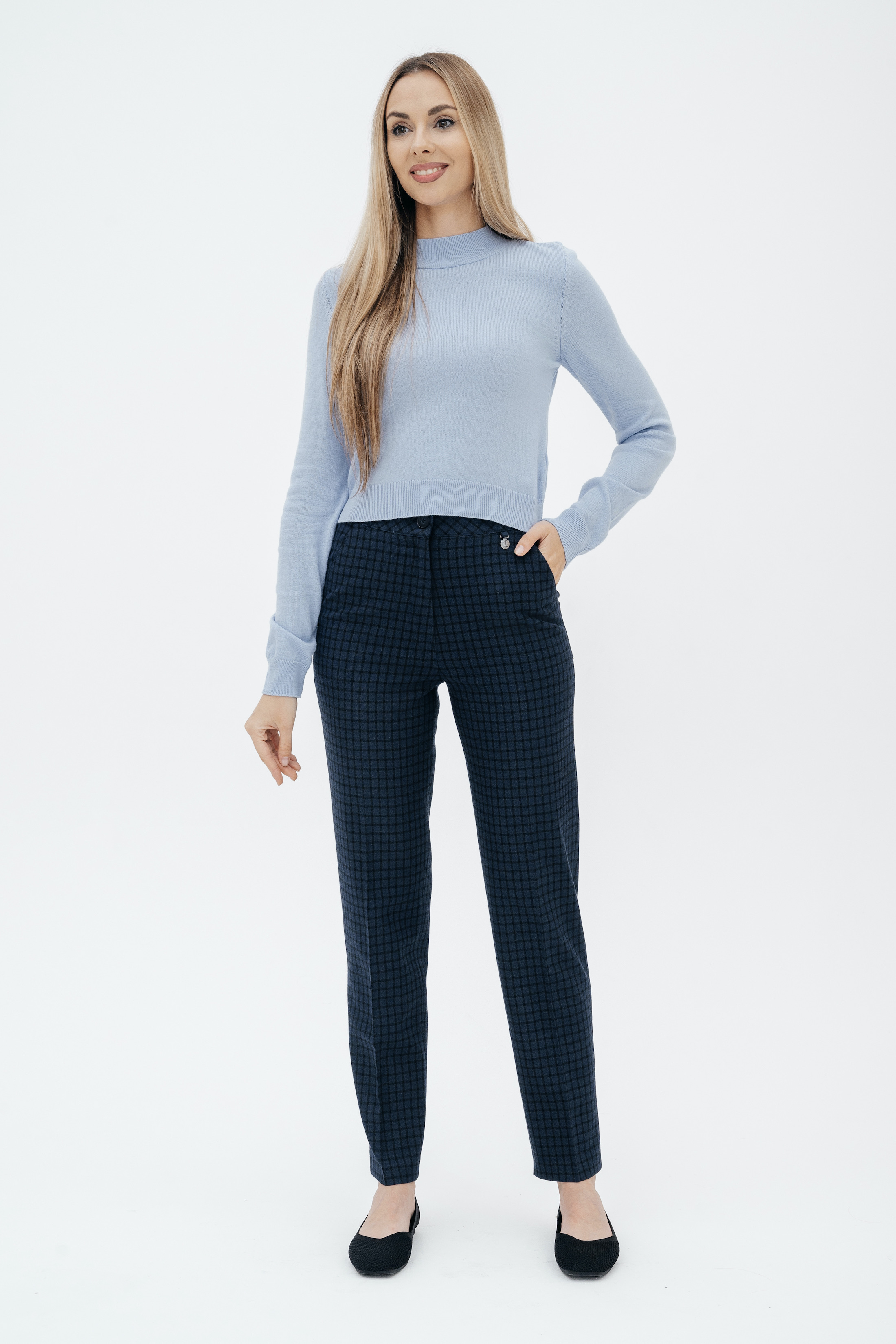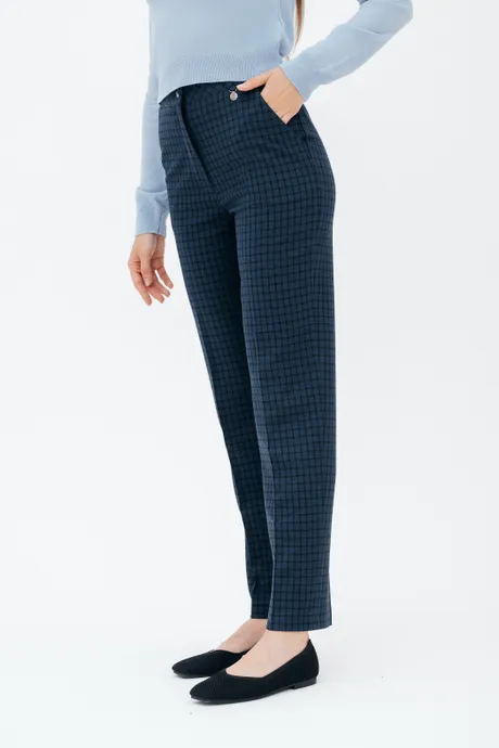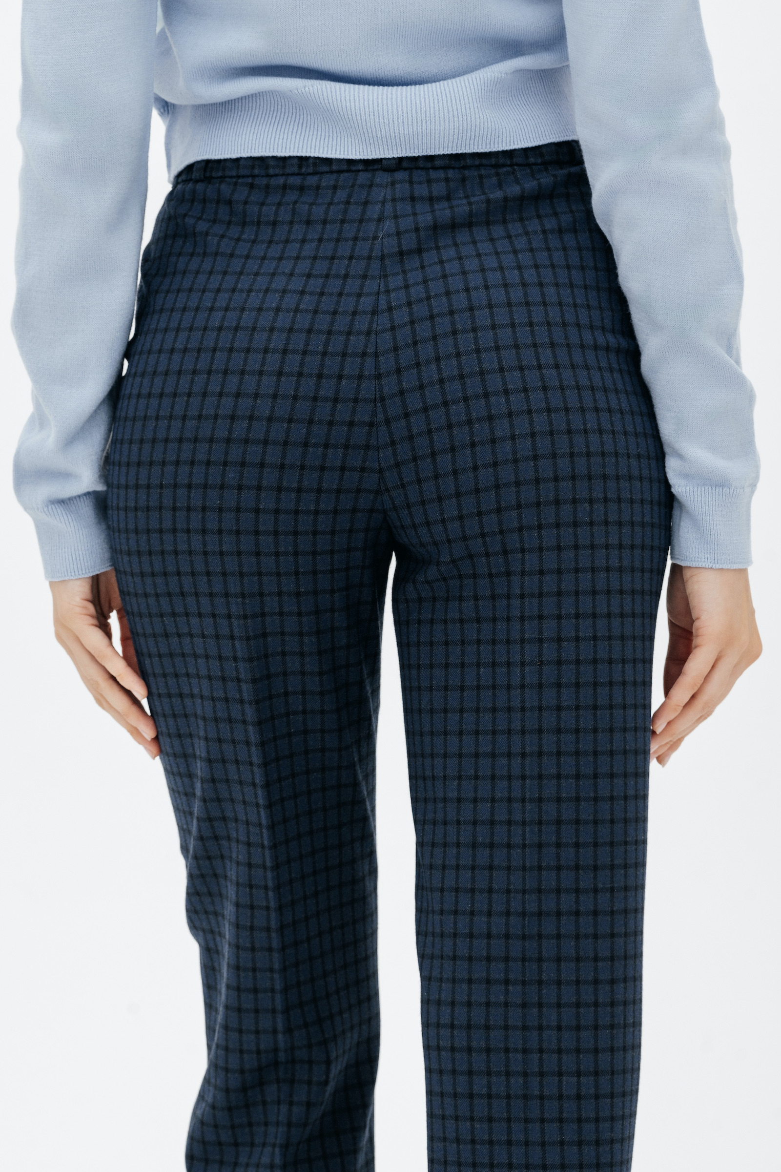 Брюки на высокой посадке, слегка зауженные, на резинке «Рива» синие