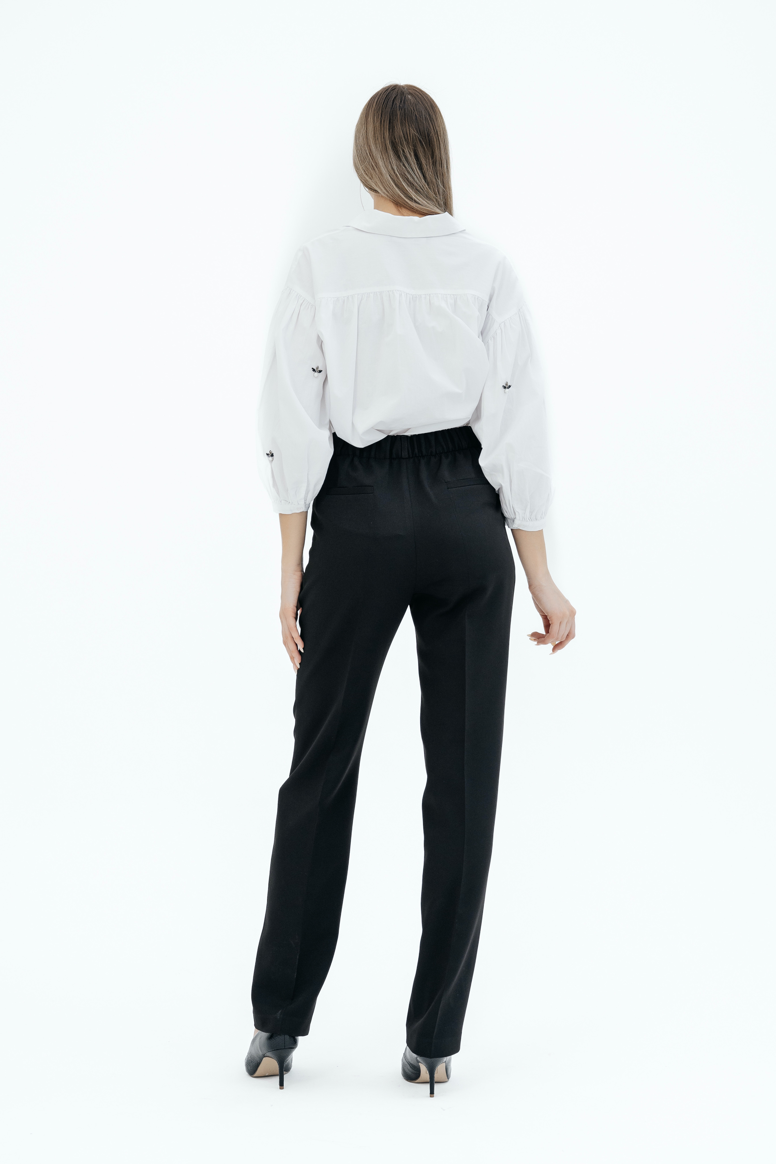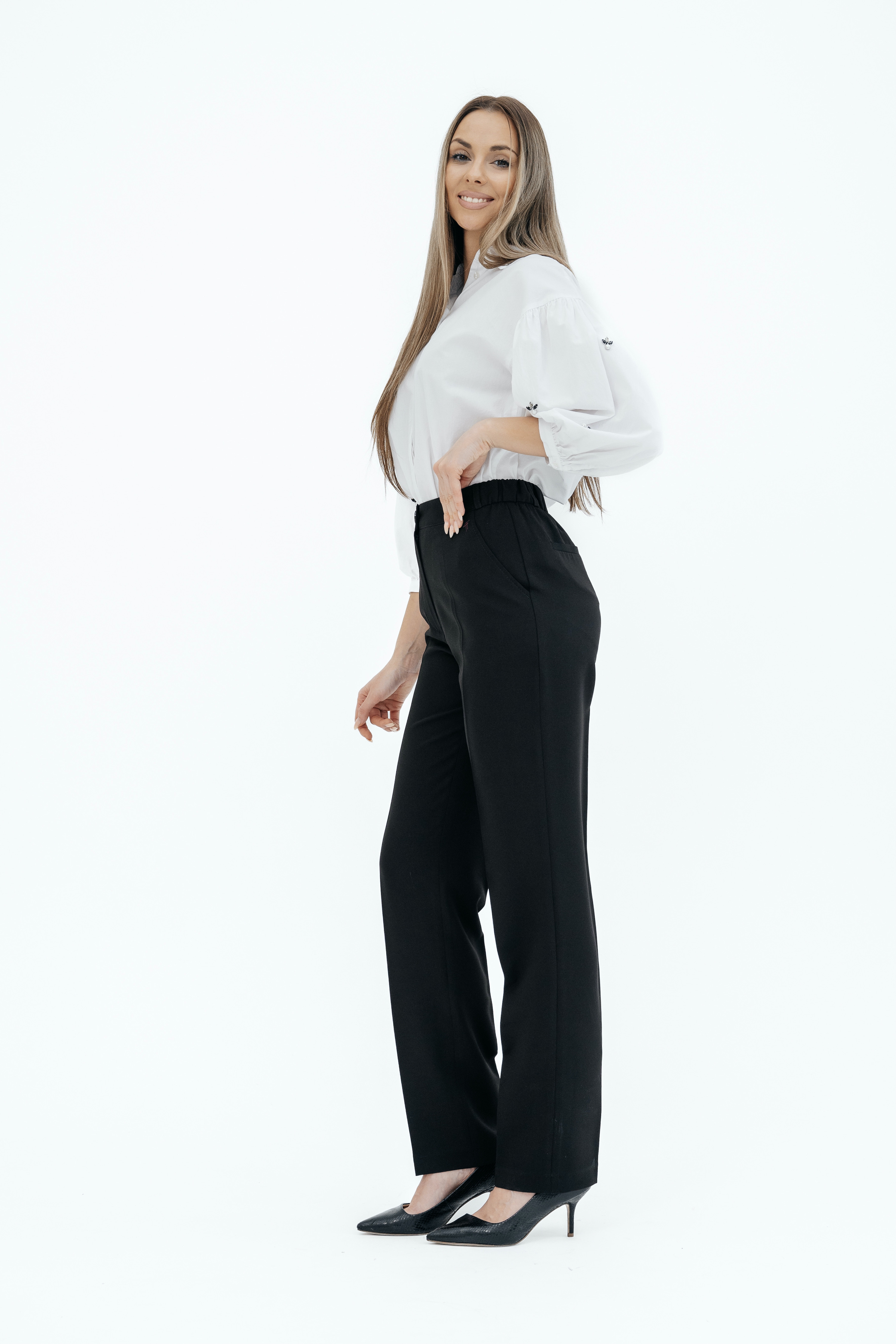 Брюки на высокой посадке, зауженные, на резинке «Эльзас» черные