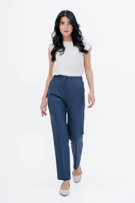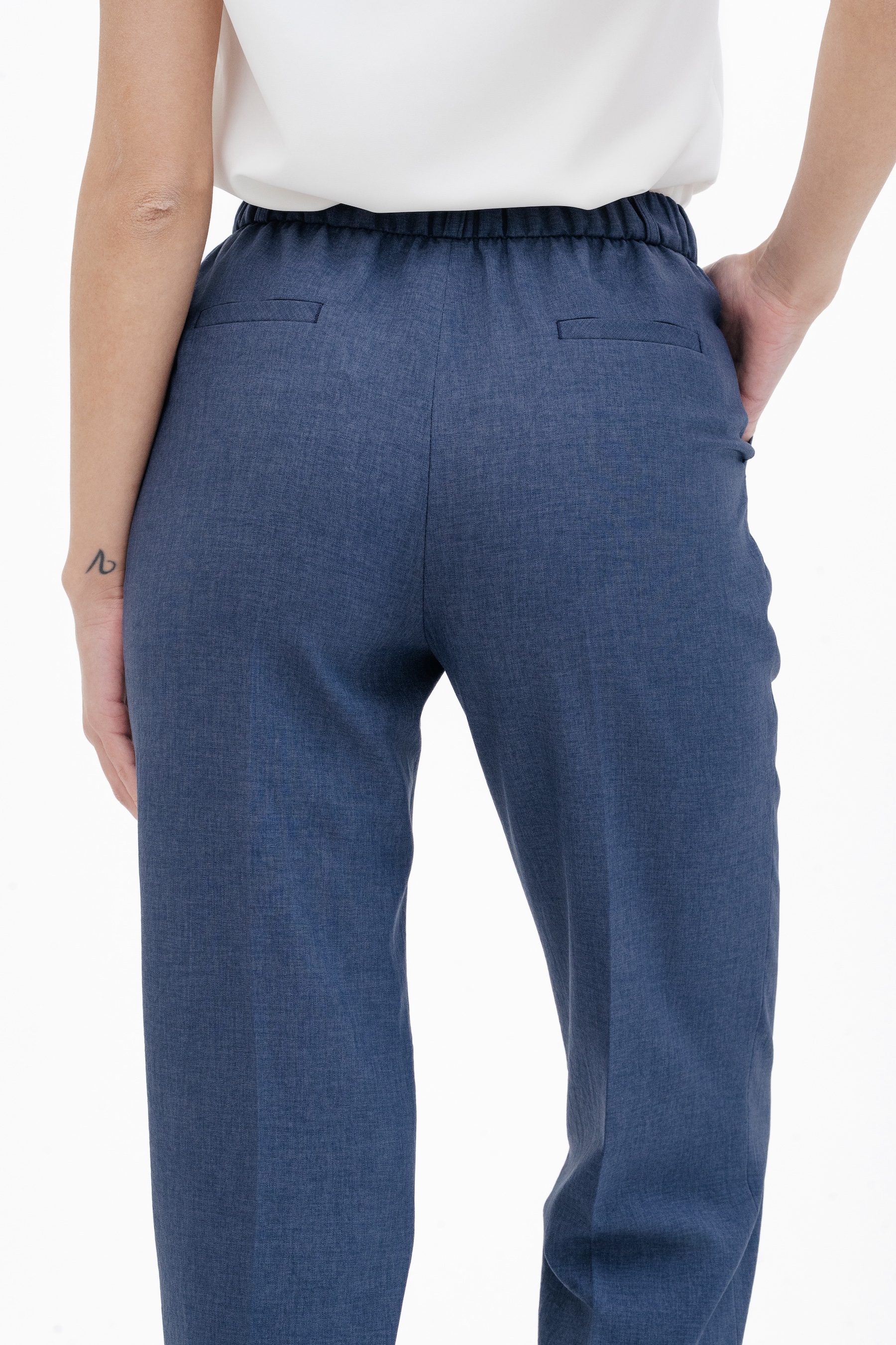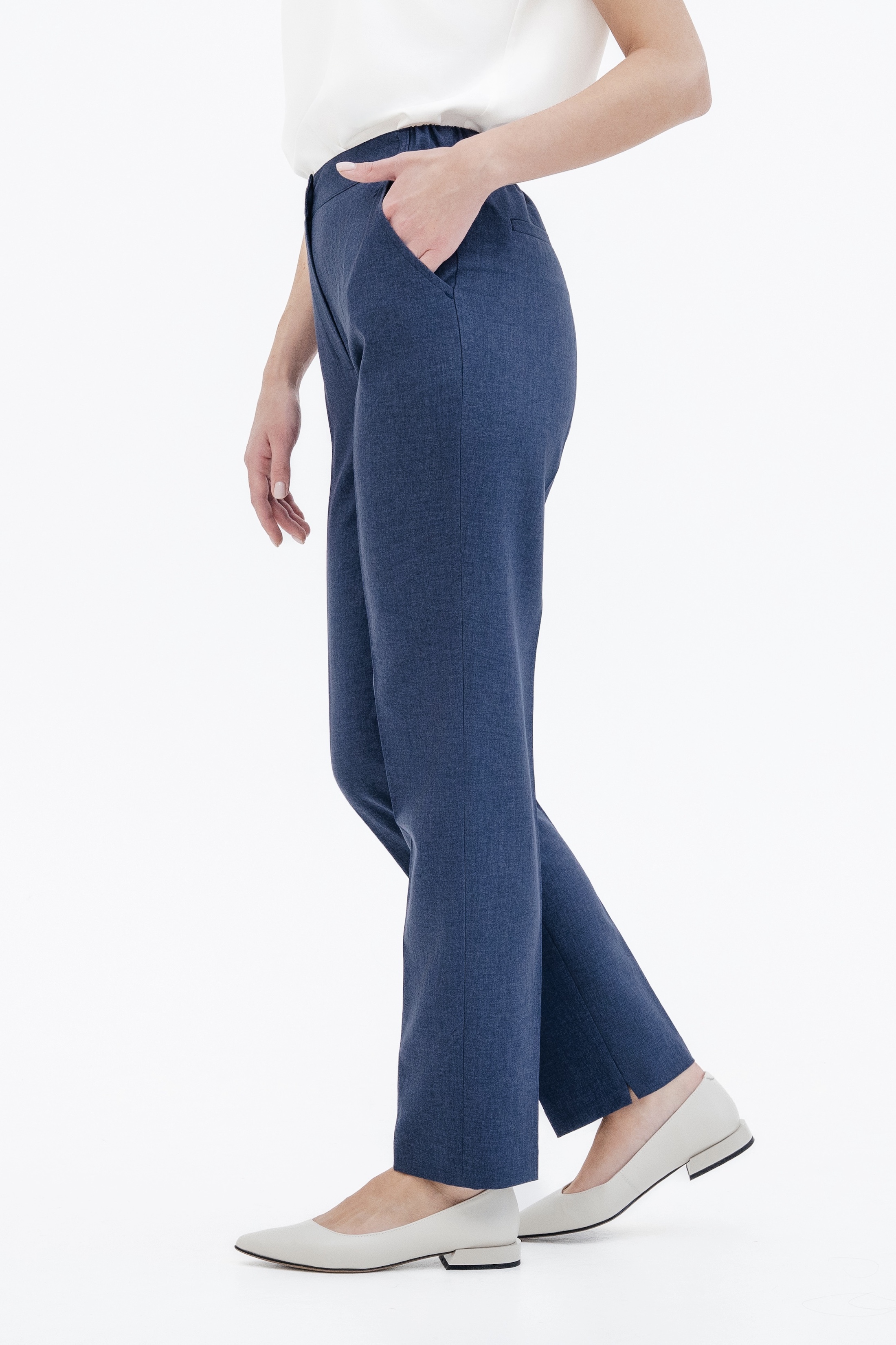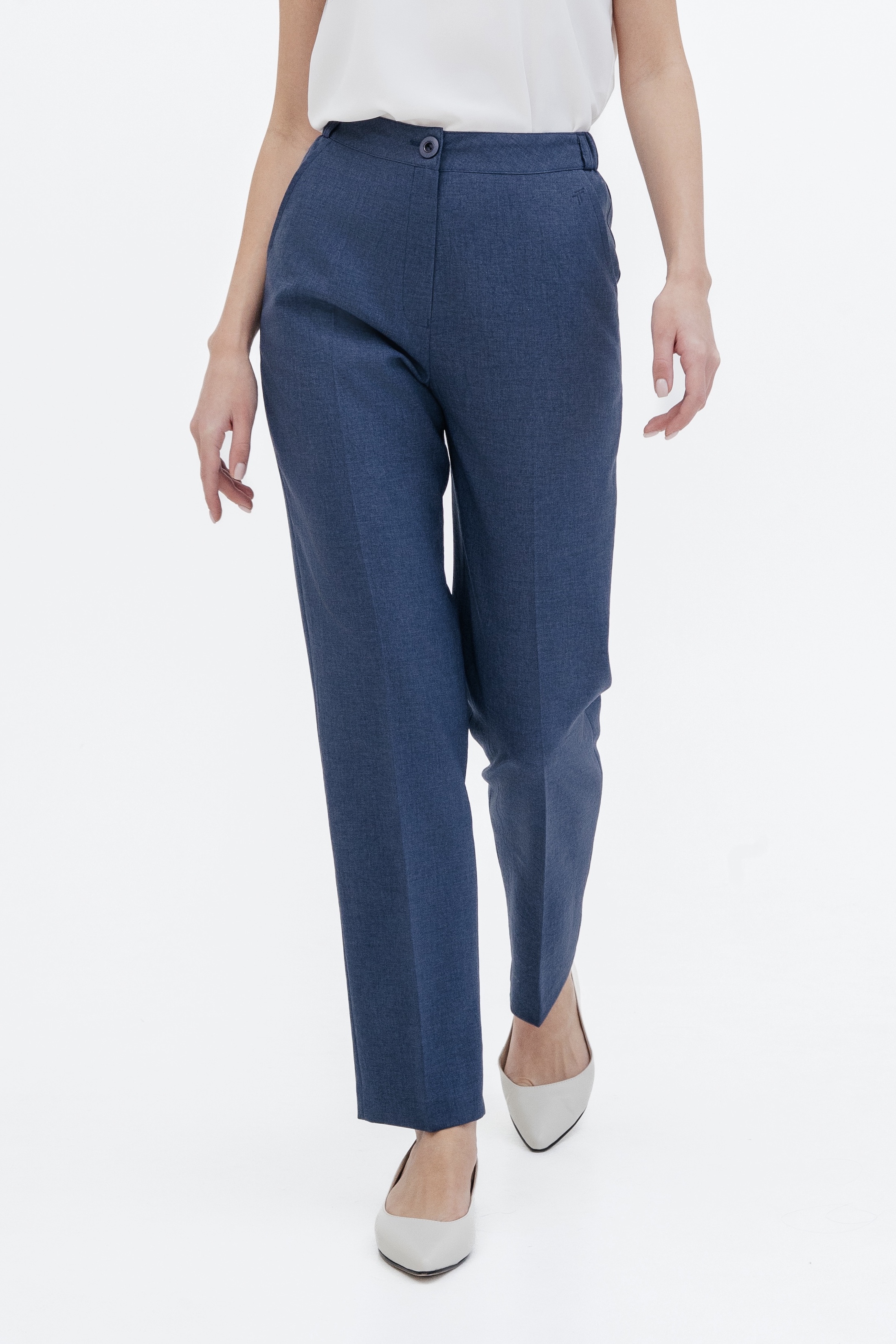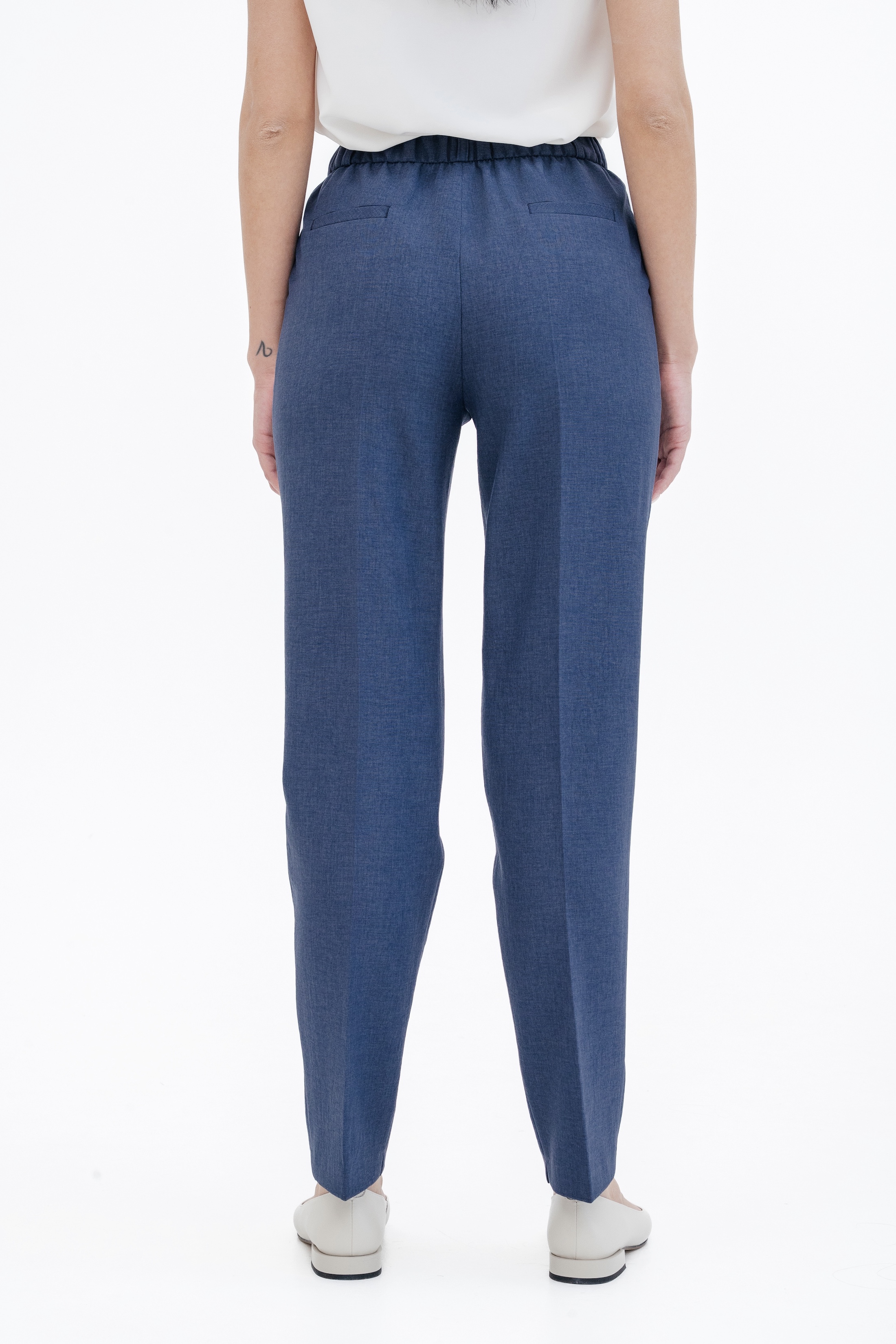 Брюки на высокой посадке, зауженные, пояс на резинке «Манарола» синие