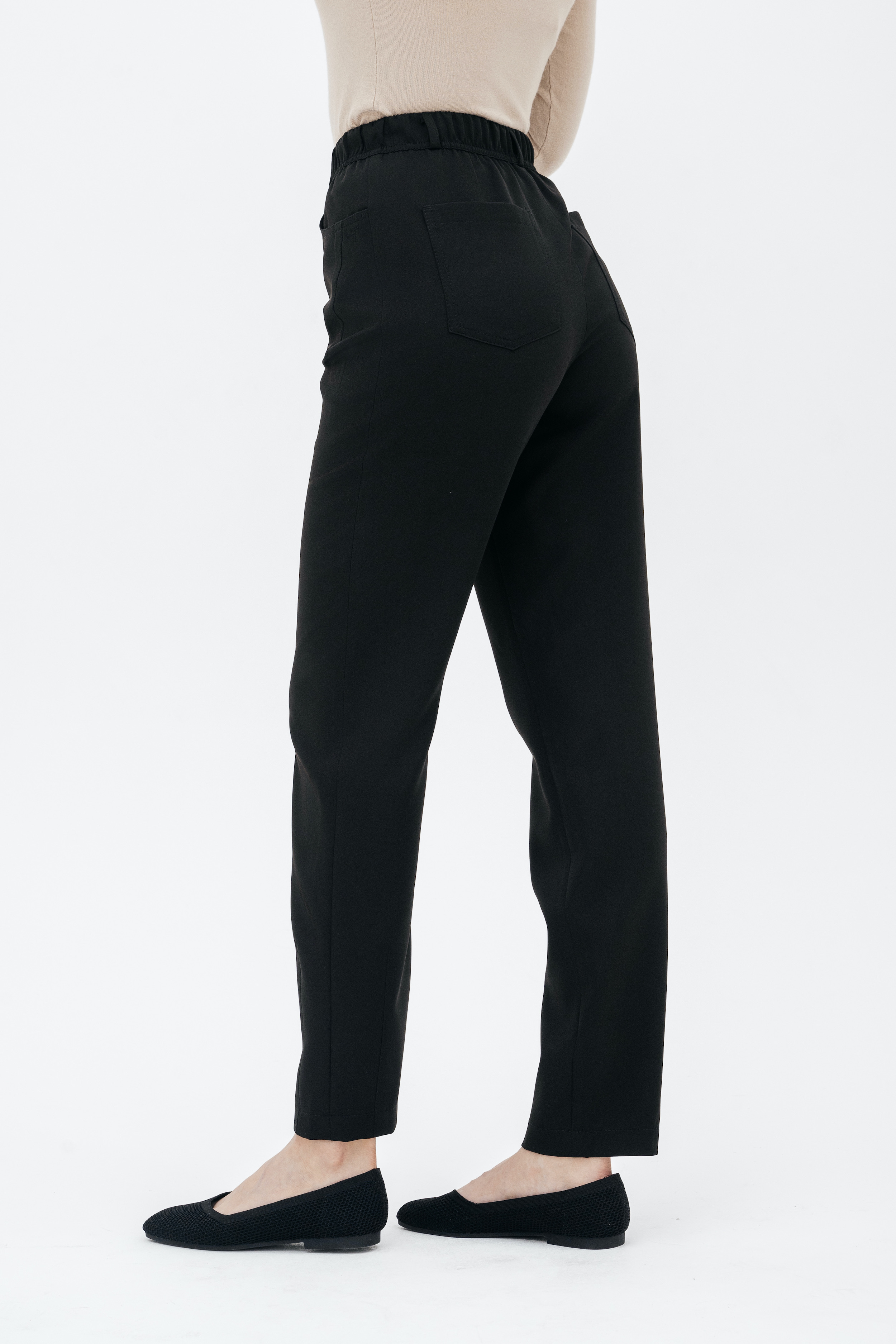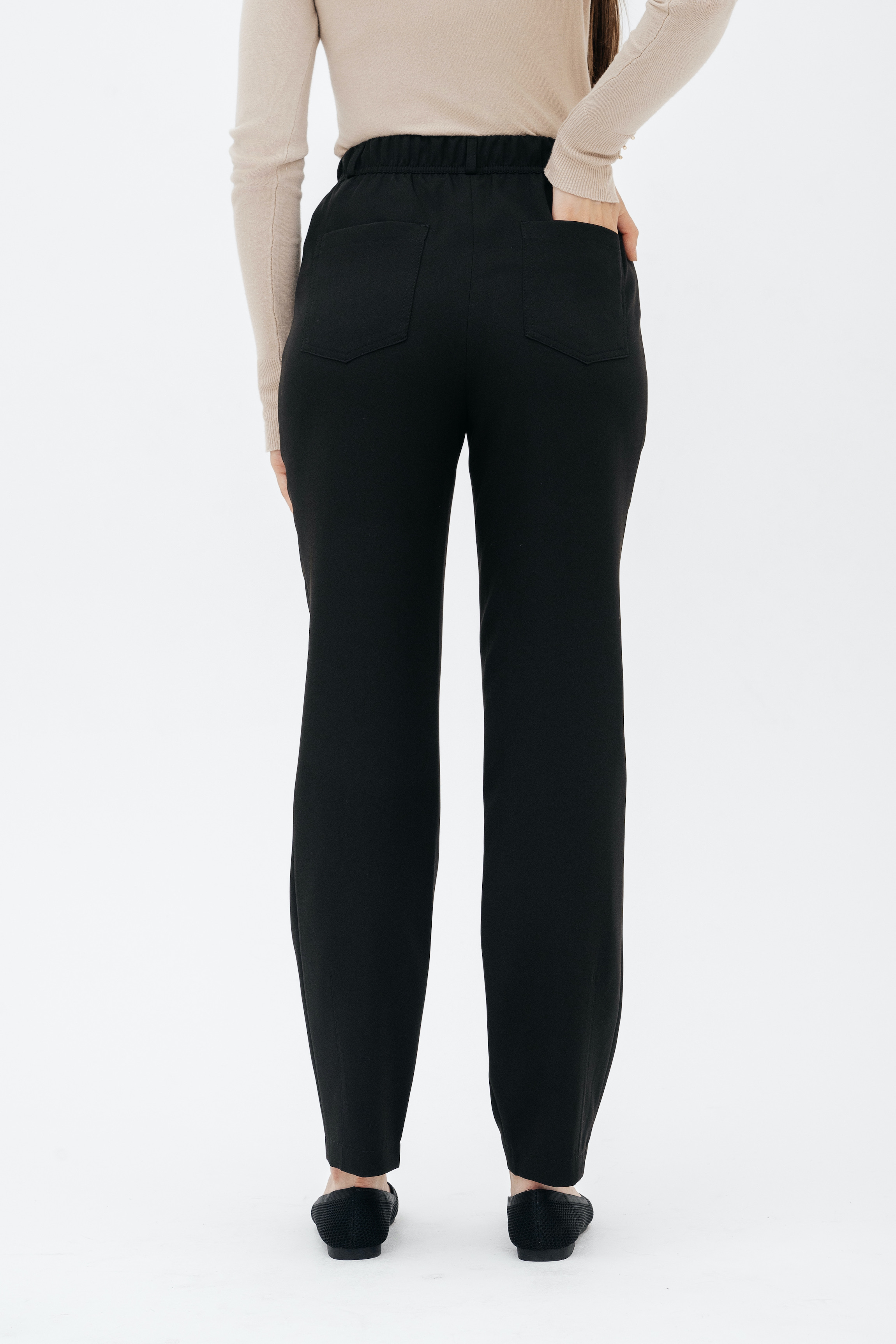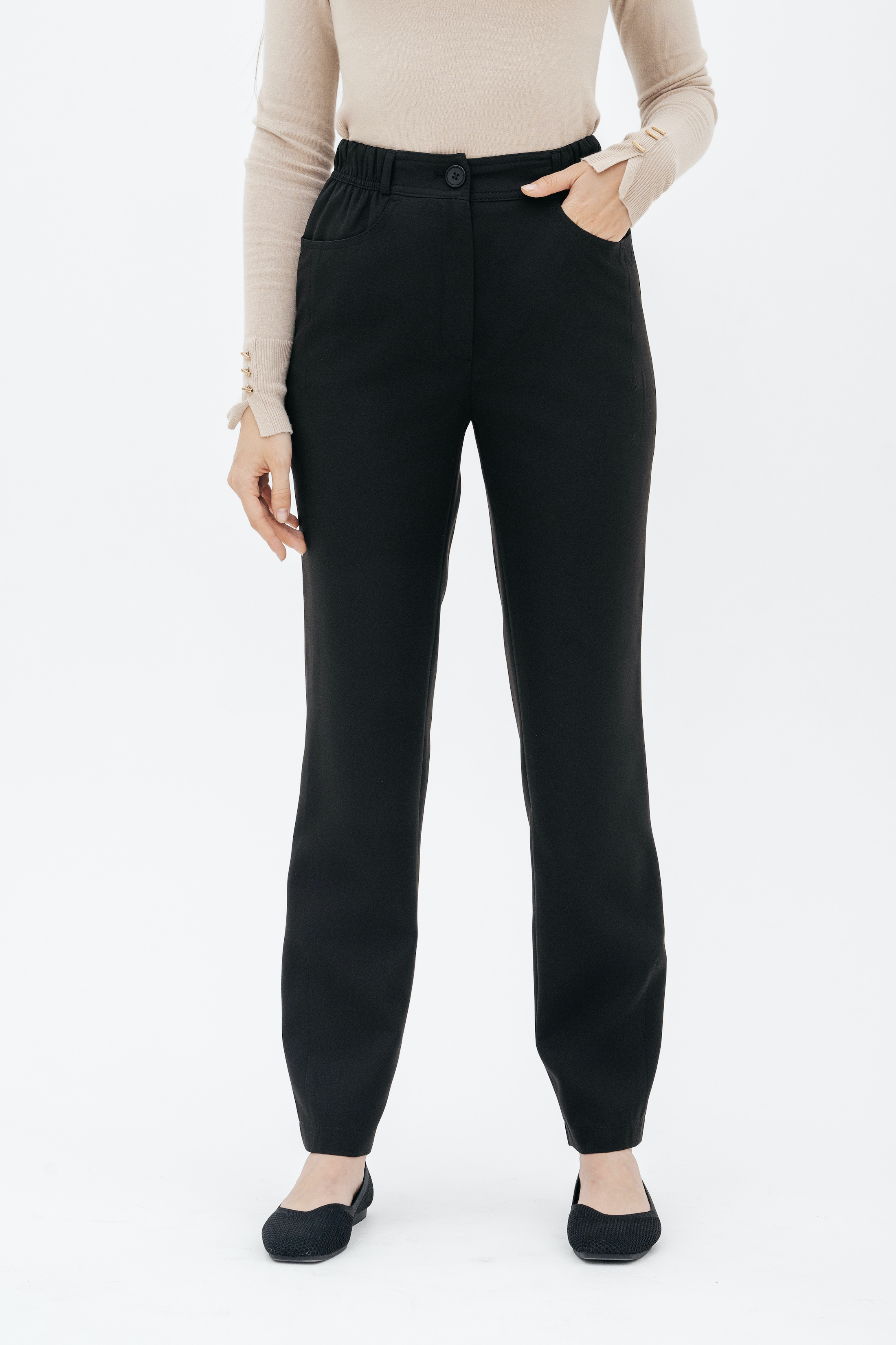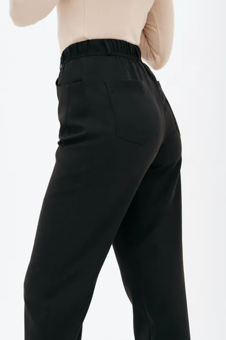 Брюки на высокой посадке, зауженные, на резинке, с карманами «Эльзас» черные