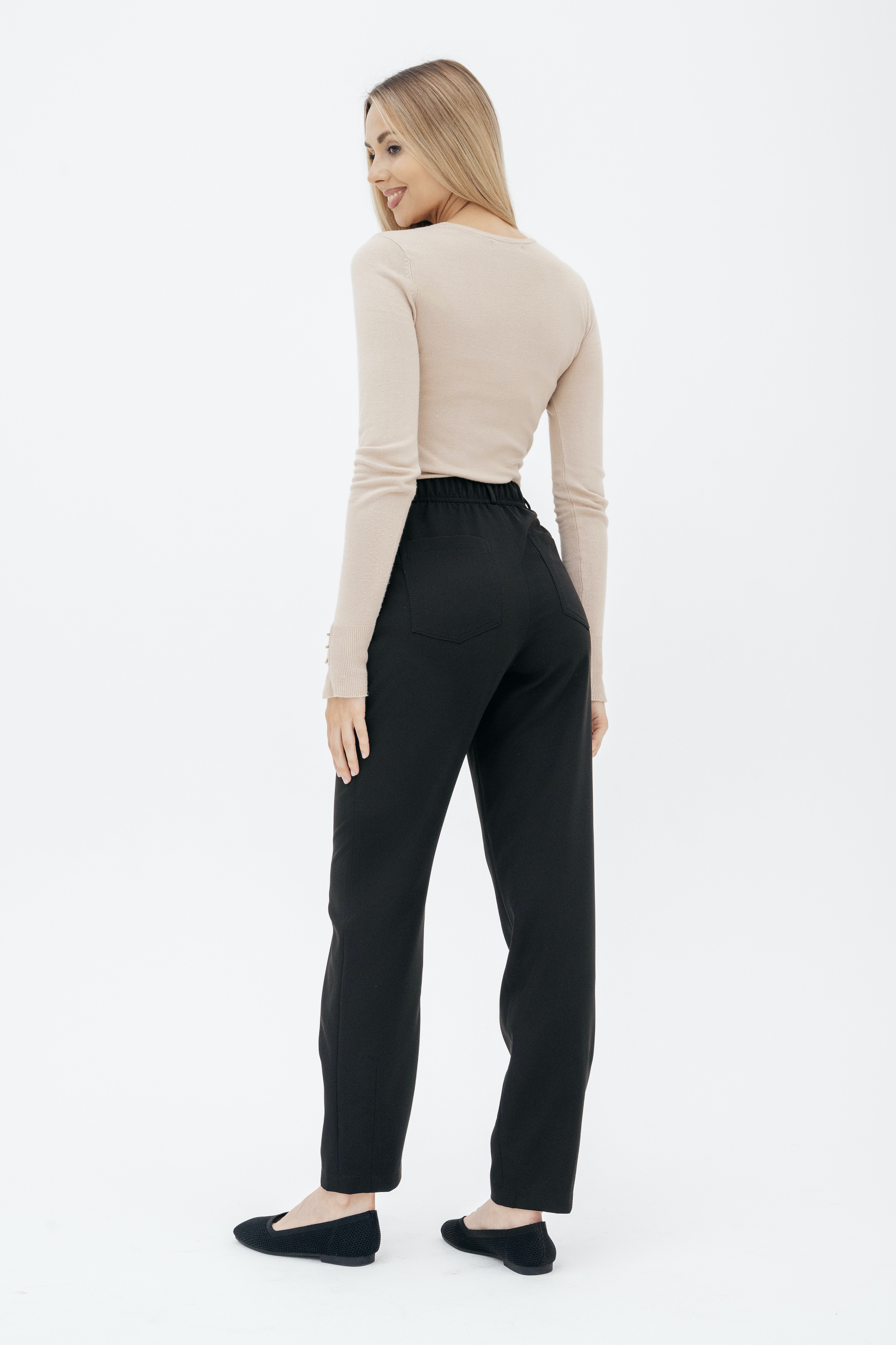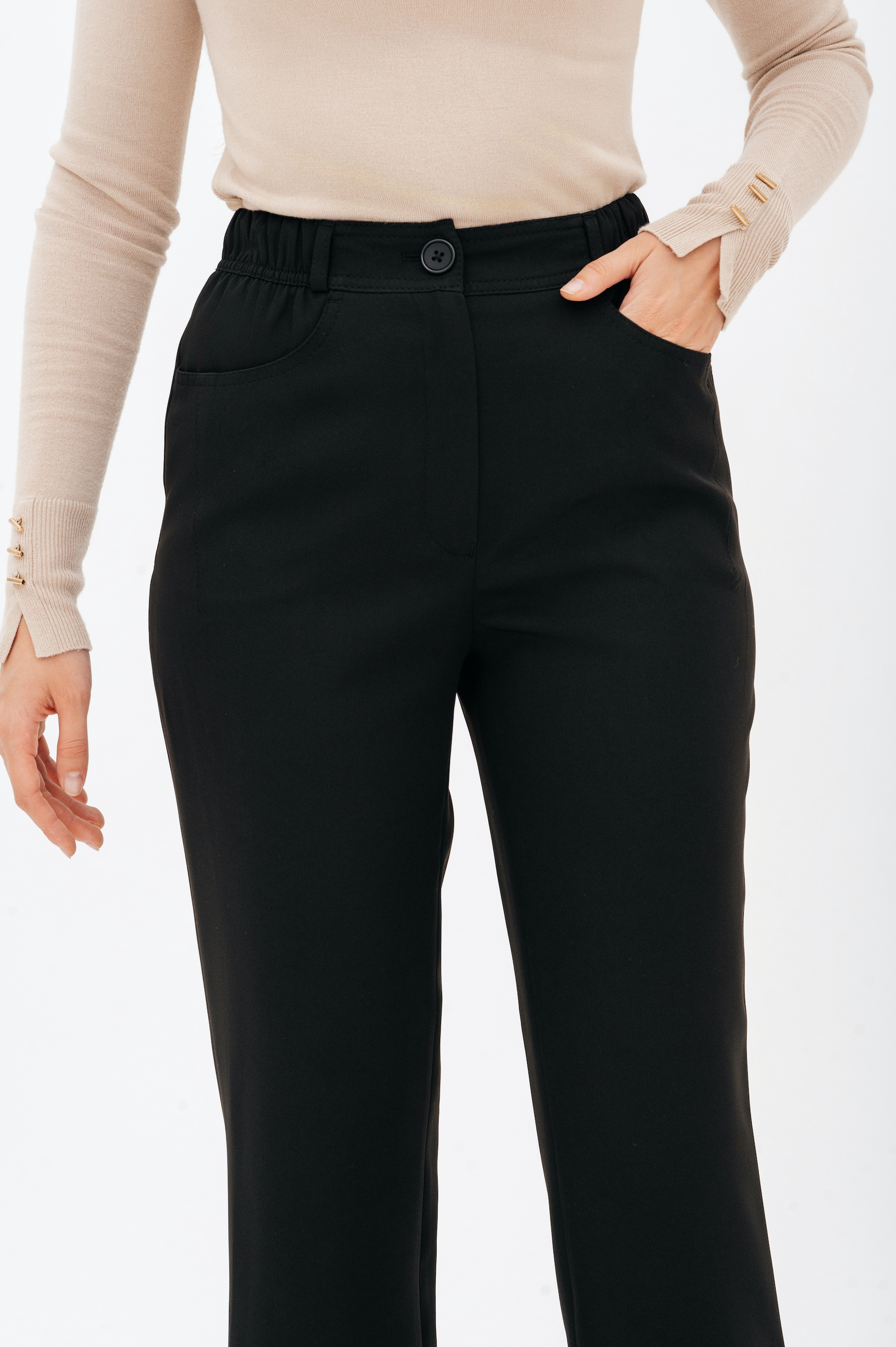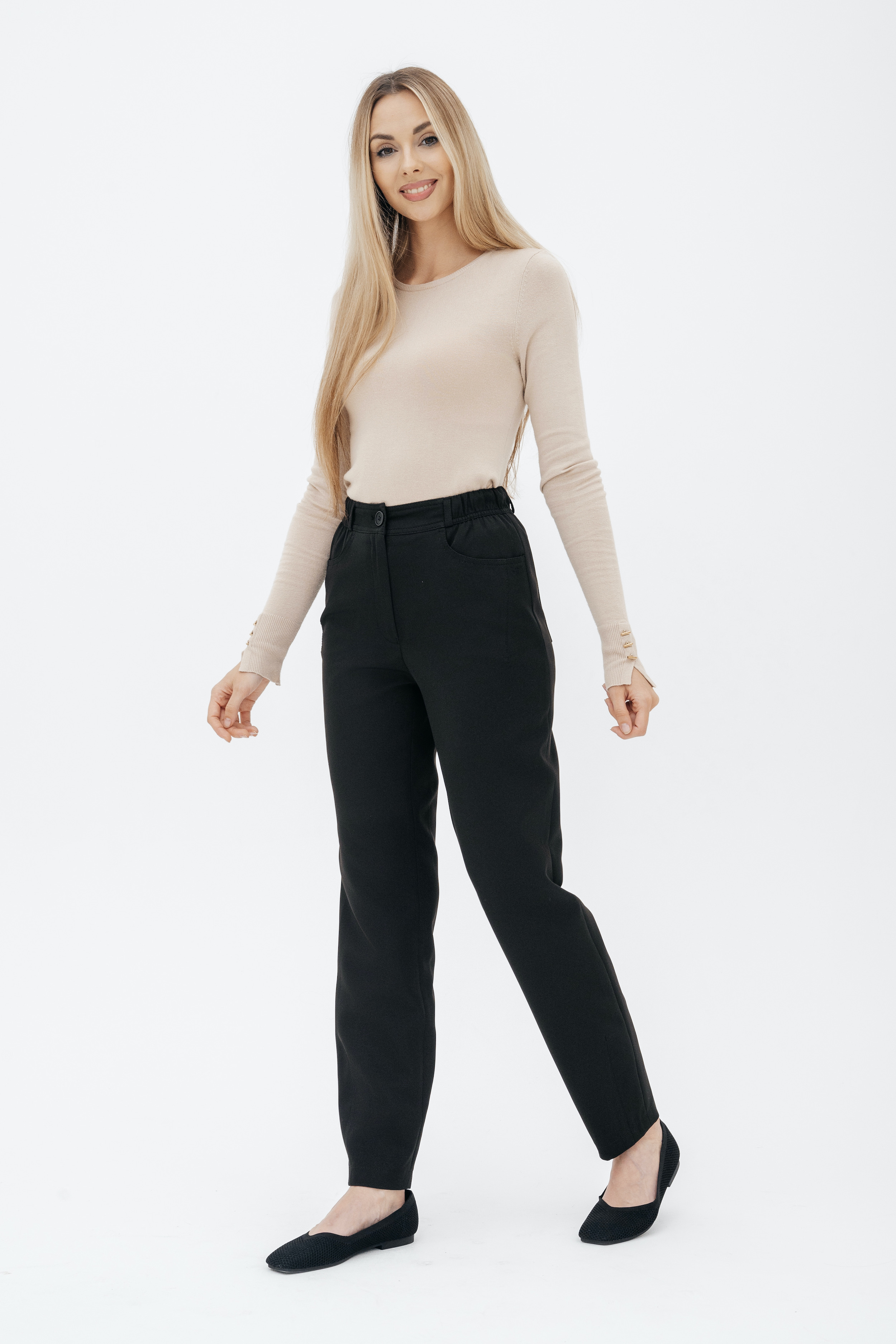 Брюки на высокой посадке, зауженные, на резинке, с карманами «Эльзас» черные