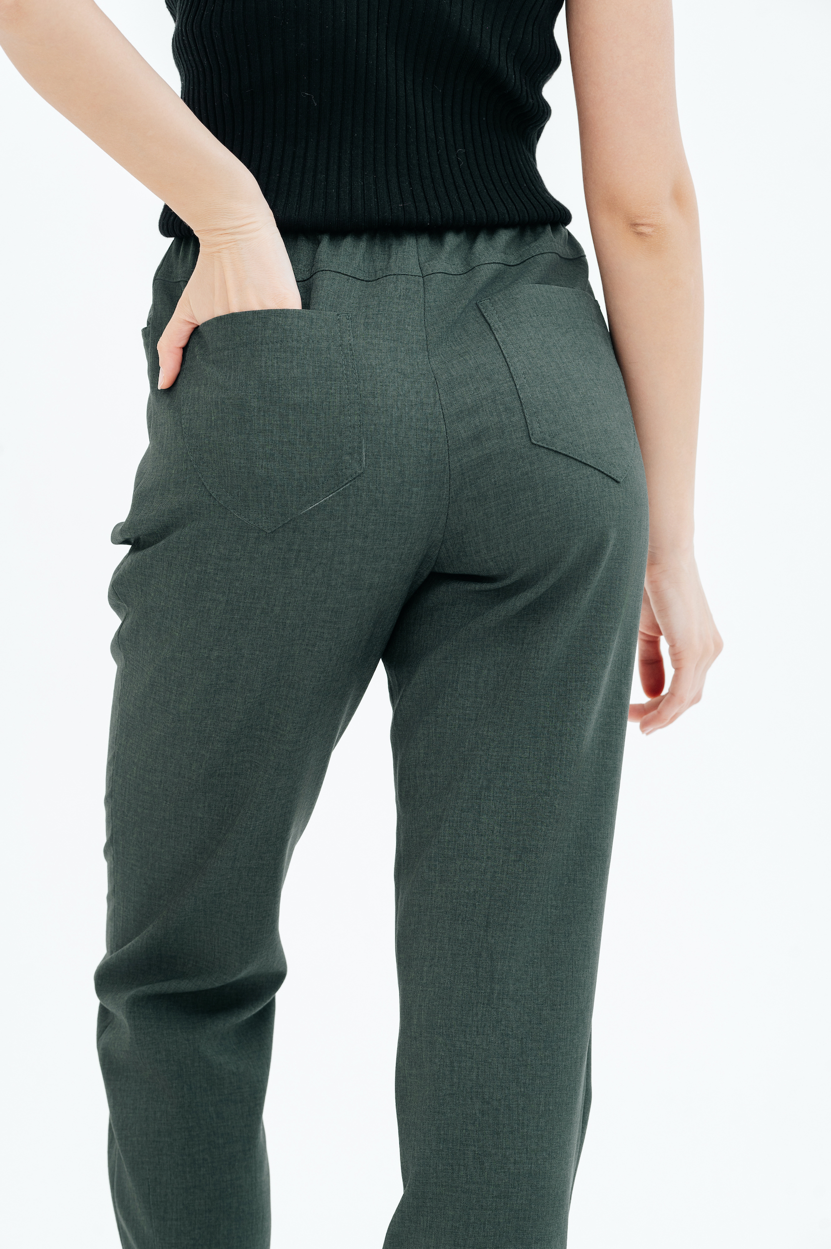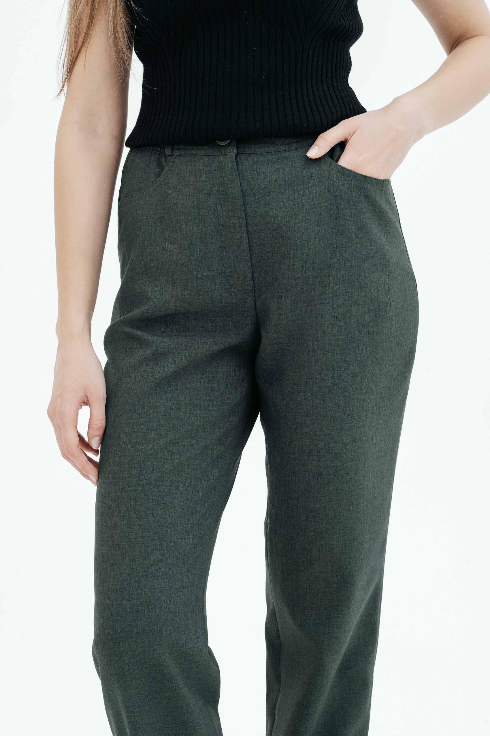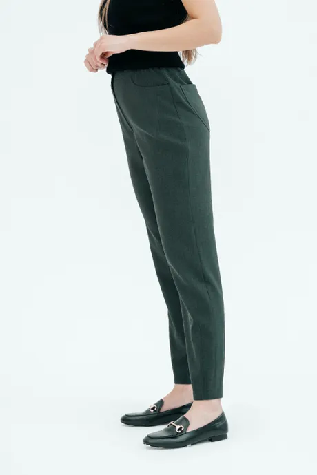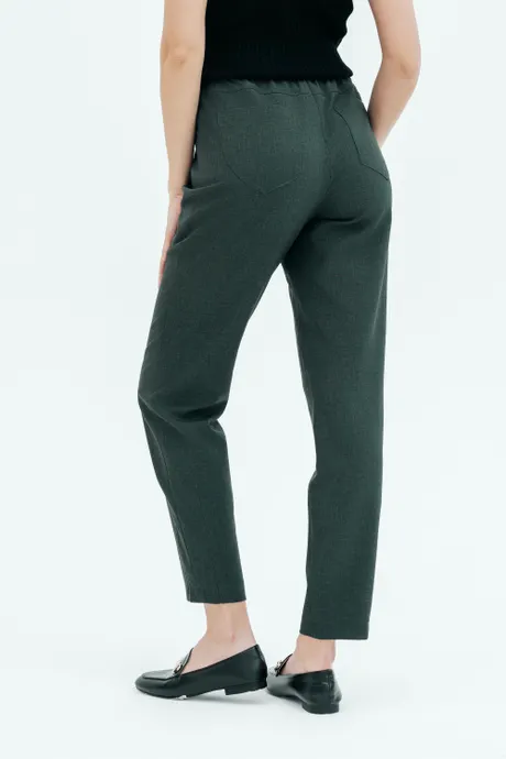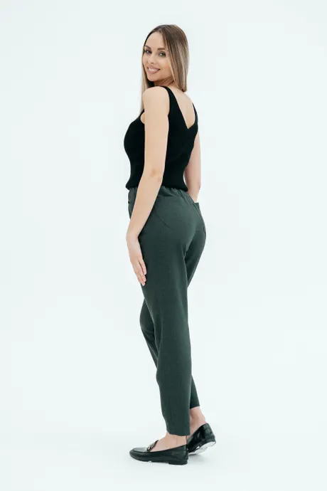 Брюки на высокой посадке, зауженные, на резинке, с карманами «Манарола» зеленые