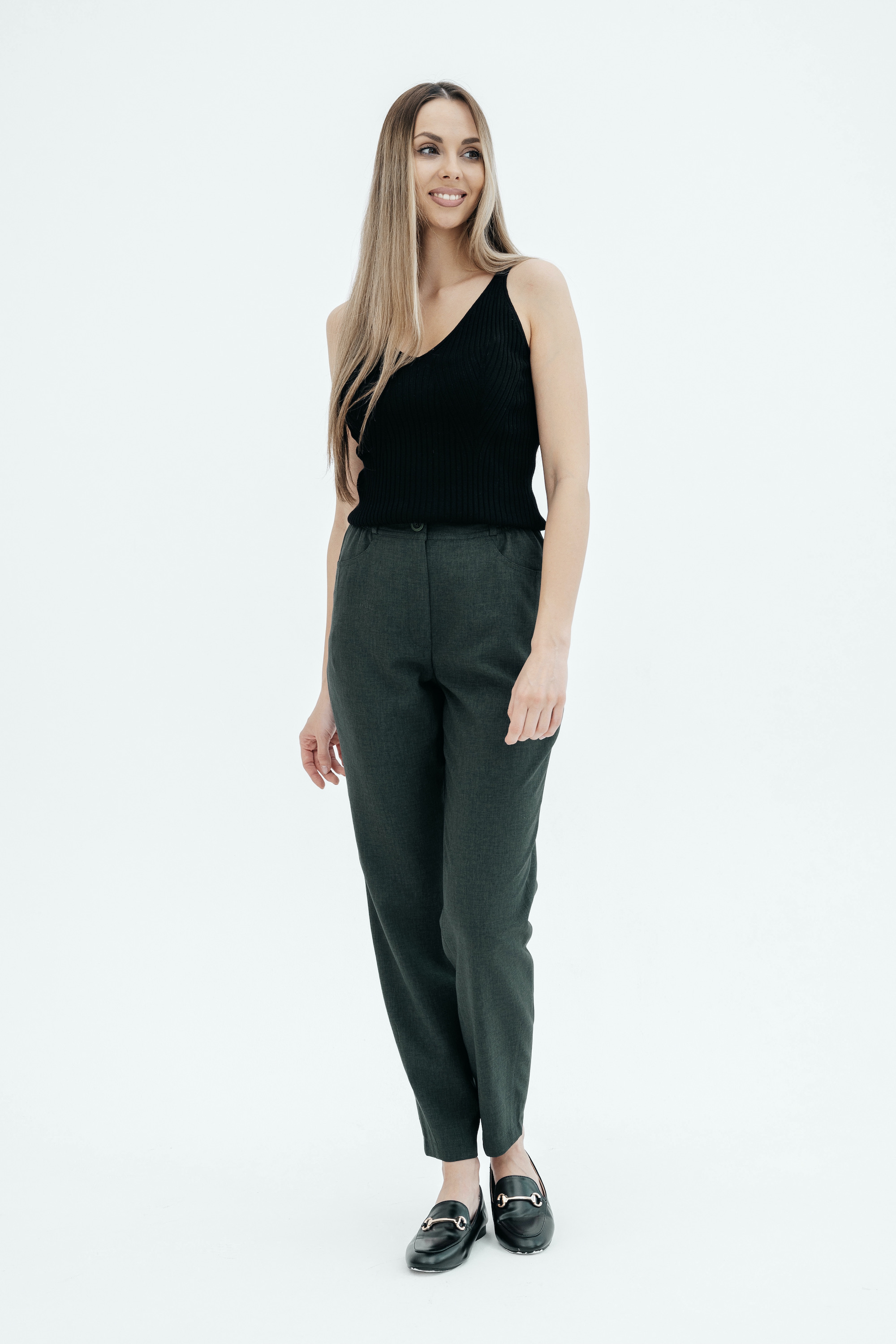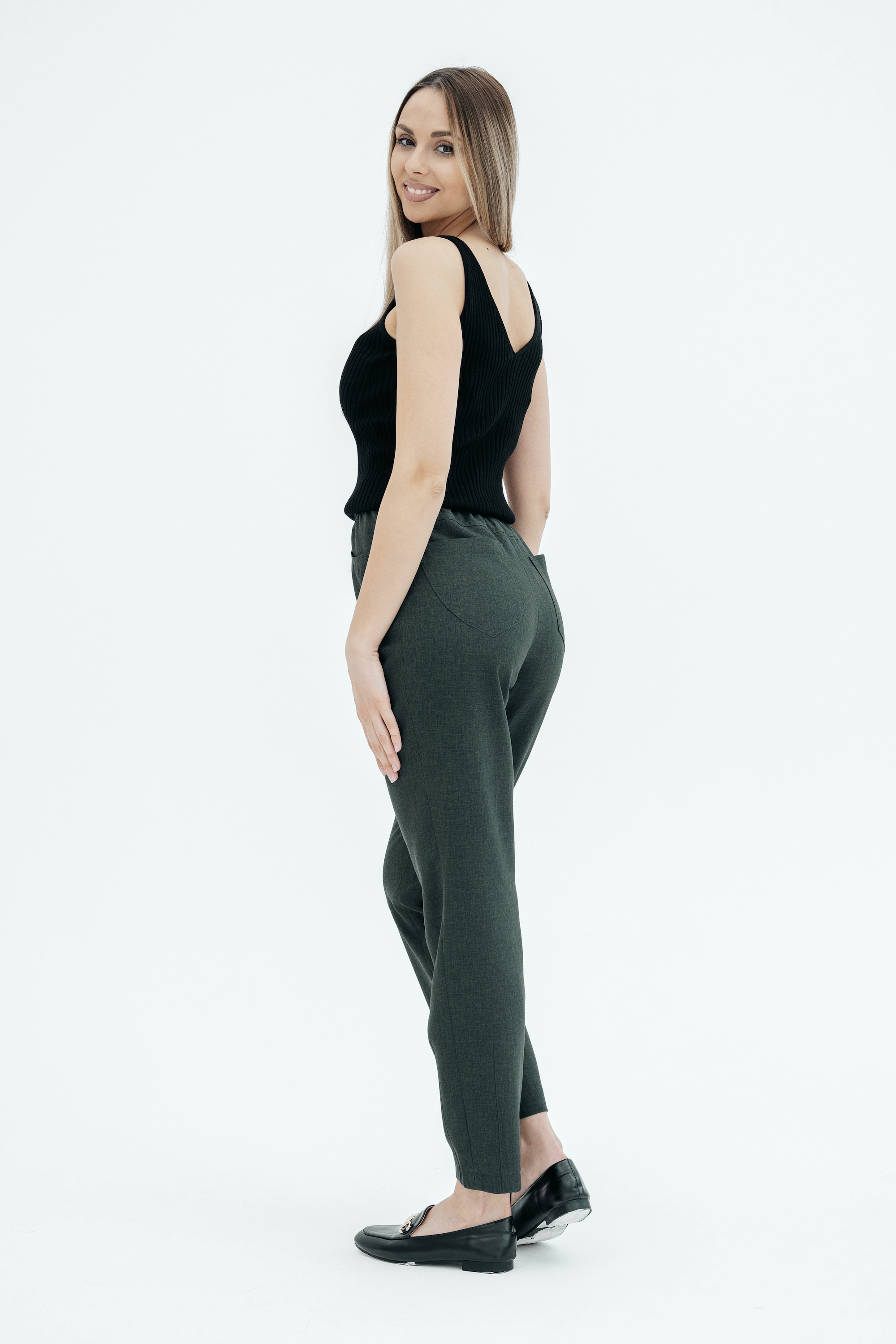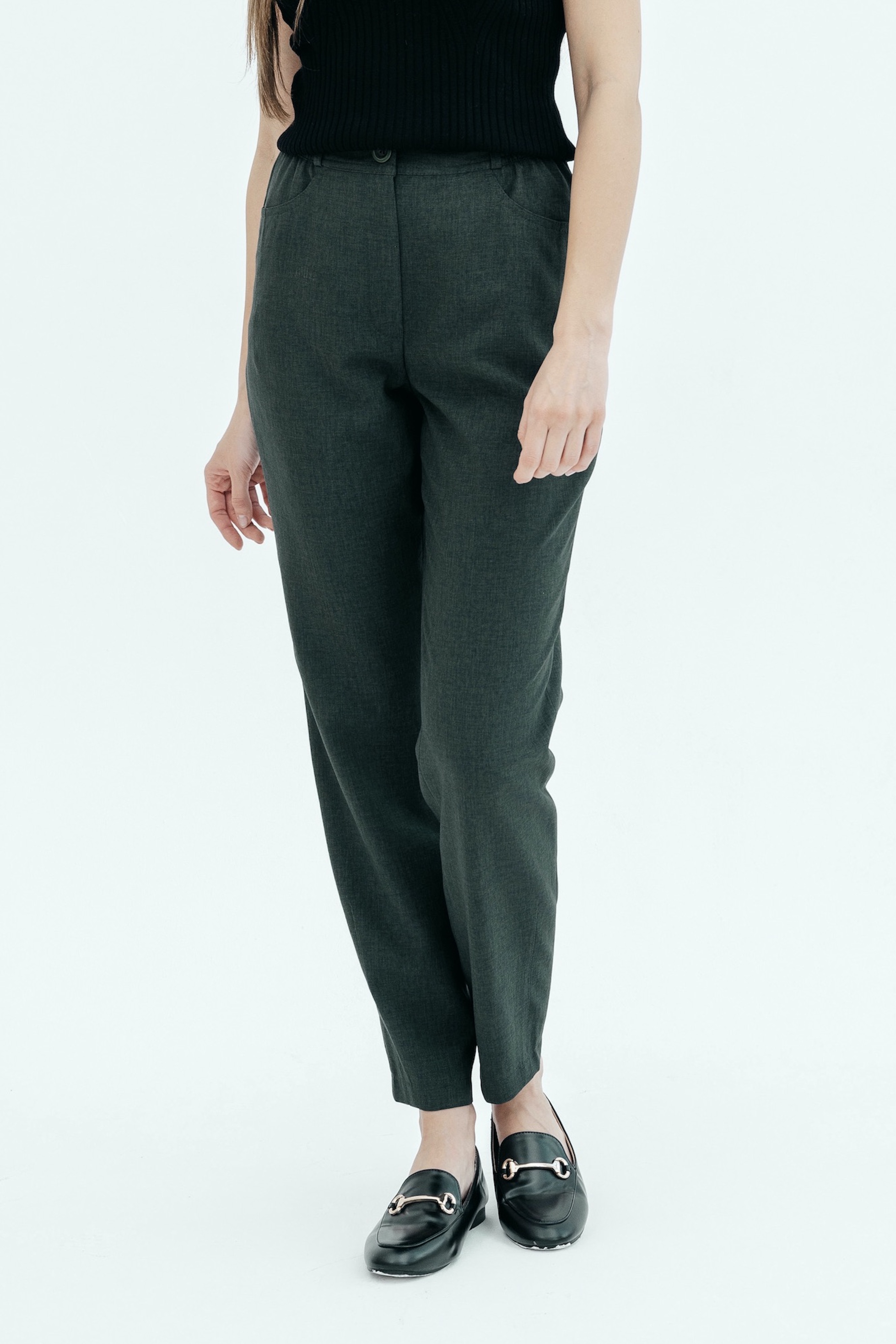 Брюки на высокой посадке, зауженные, на резинке, с карманами «Манарола» зеленые