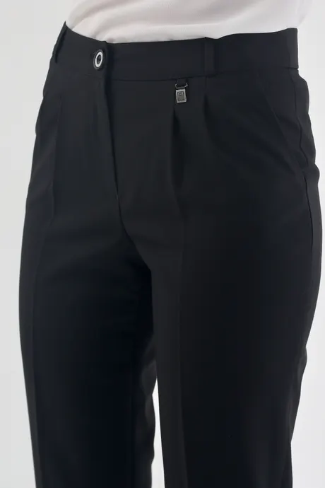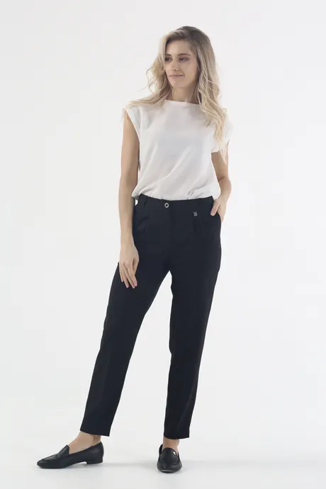 Хотите выглядеть модно и элегантно в любой ситуации? Тогда наши зауженные черные брюки с защипами на высокой посадке - идеальный выбор для вас! Их стильный дизайн идеально подходит как для повседневной носки, так и для особых случаев. Высокая посадка создает эффект стройных ног, а защипы придают брюкам особую изюминку. Но самое главное - брюки выполнены из высококачественного материала, который сохраняет свой первоначальный вид даже после многократной стирки.