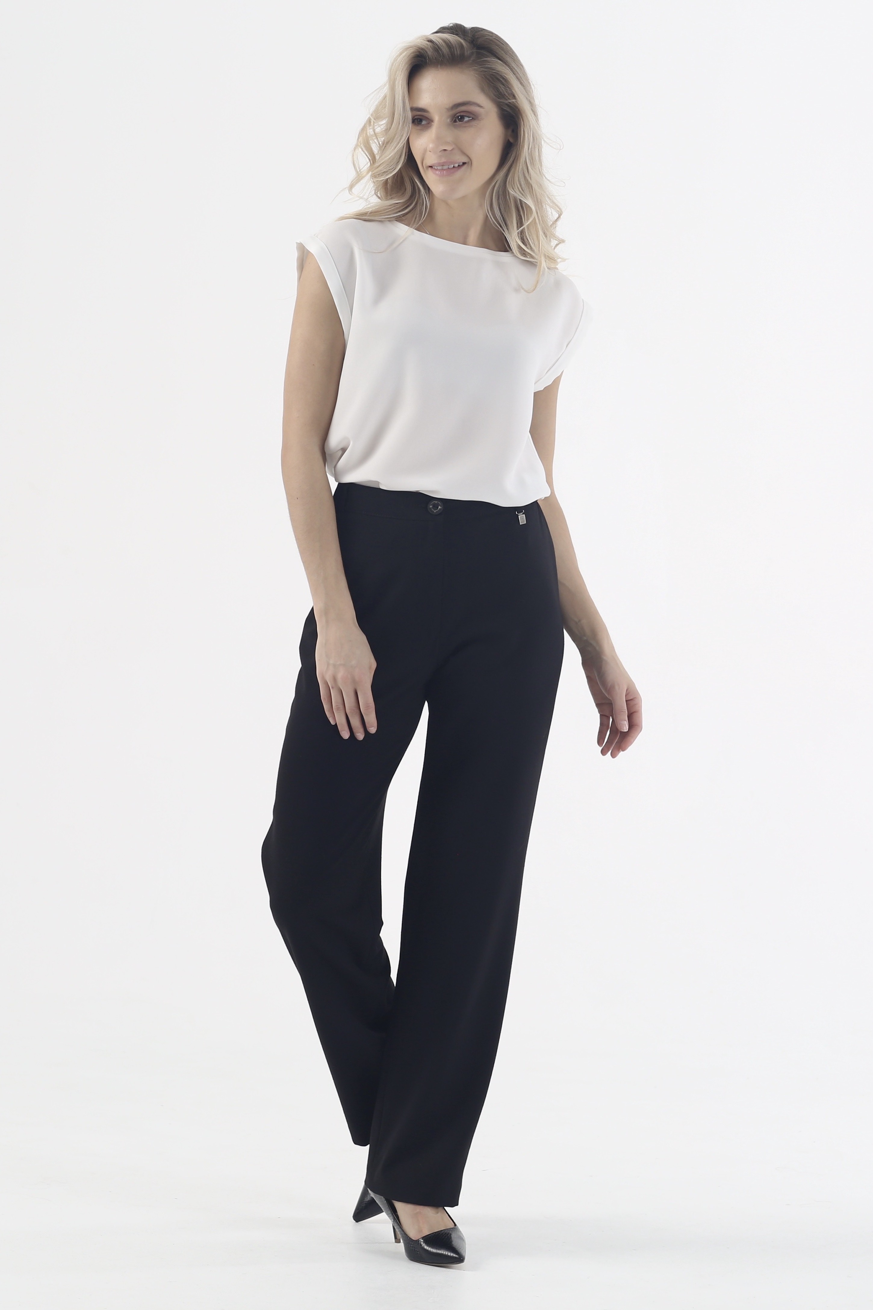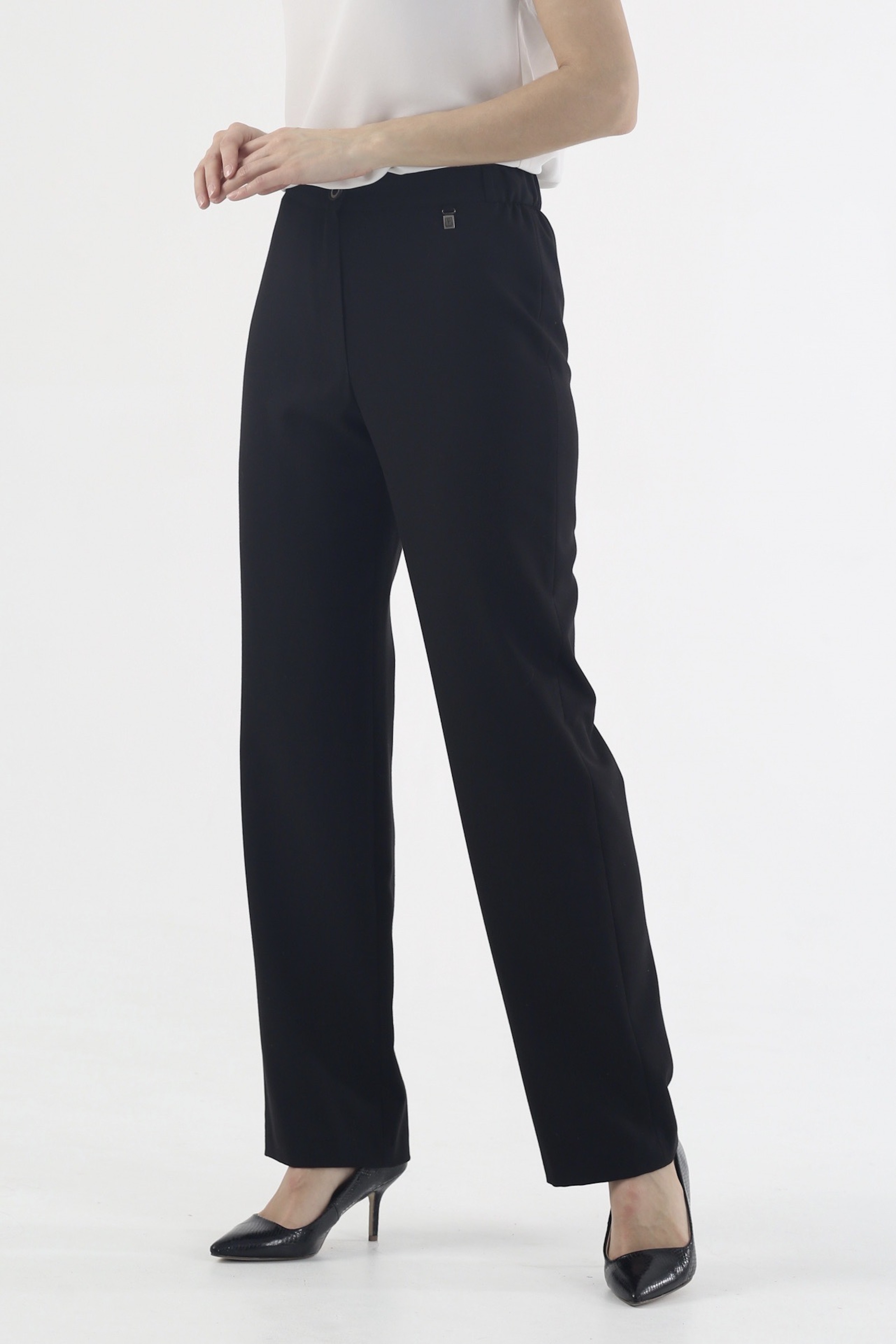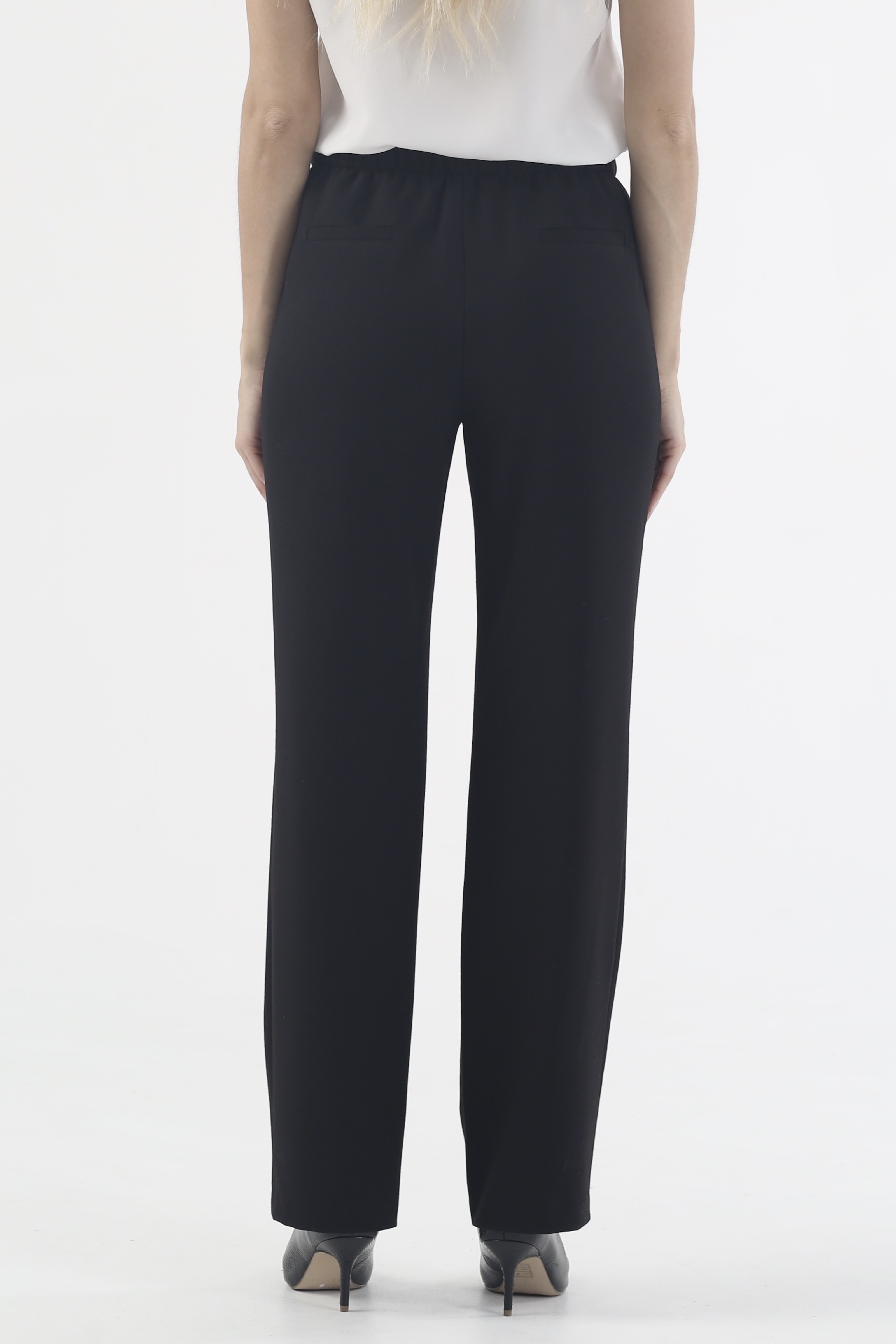 Черные прямые брюки на высокой посадке на резинке "Рубенс" - станут незаменимой вещью в вашем гардеробе! Они создают идеальный силуэт, подчеркивая красоту ваших ног и придавая фигуре выразительности. Брюки выполнены из качественного материала, который обеспечивает комфорт и свободу движений, а удобная резинка на поясе делает их еще более удобными в использовании. Благодаря своему стильному дизайну, эти брюки подходят для создания как повседневных, так и более формальных образов. Независимо от того, куда вы собираетесь и что собираетесь делать, эти брюки "Рубенс" станут незаменимой вещью в вашем гардеробе. Купите брюки "Рубенс" и наслаждайтесь комфортом и стилем каждый день!
