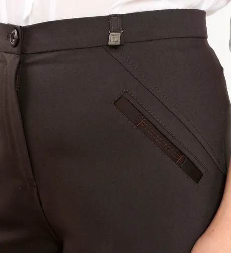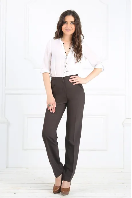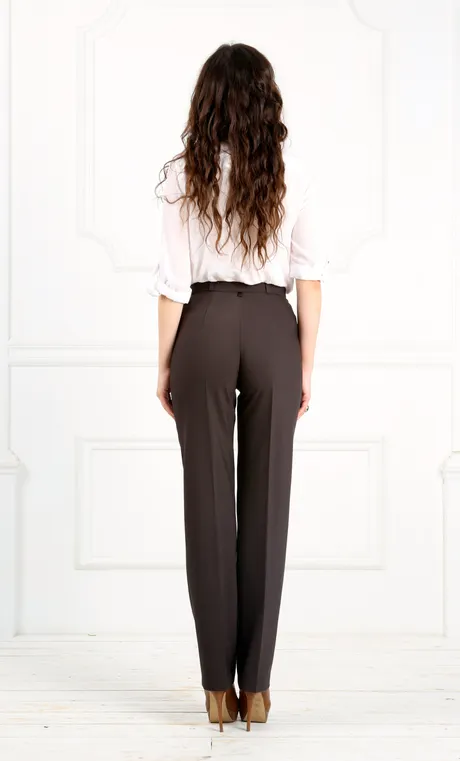 Великолепные брюки с высокой посадкой! Коричневый цвет и отделка из французского шелка придают им элегантный вид. Очень довольна покупкой!