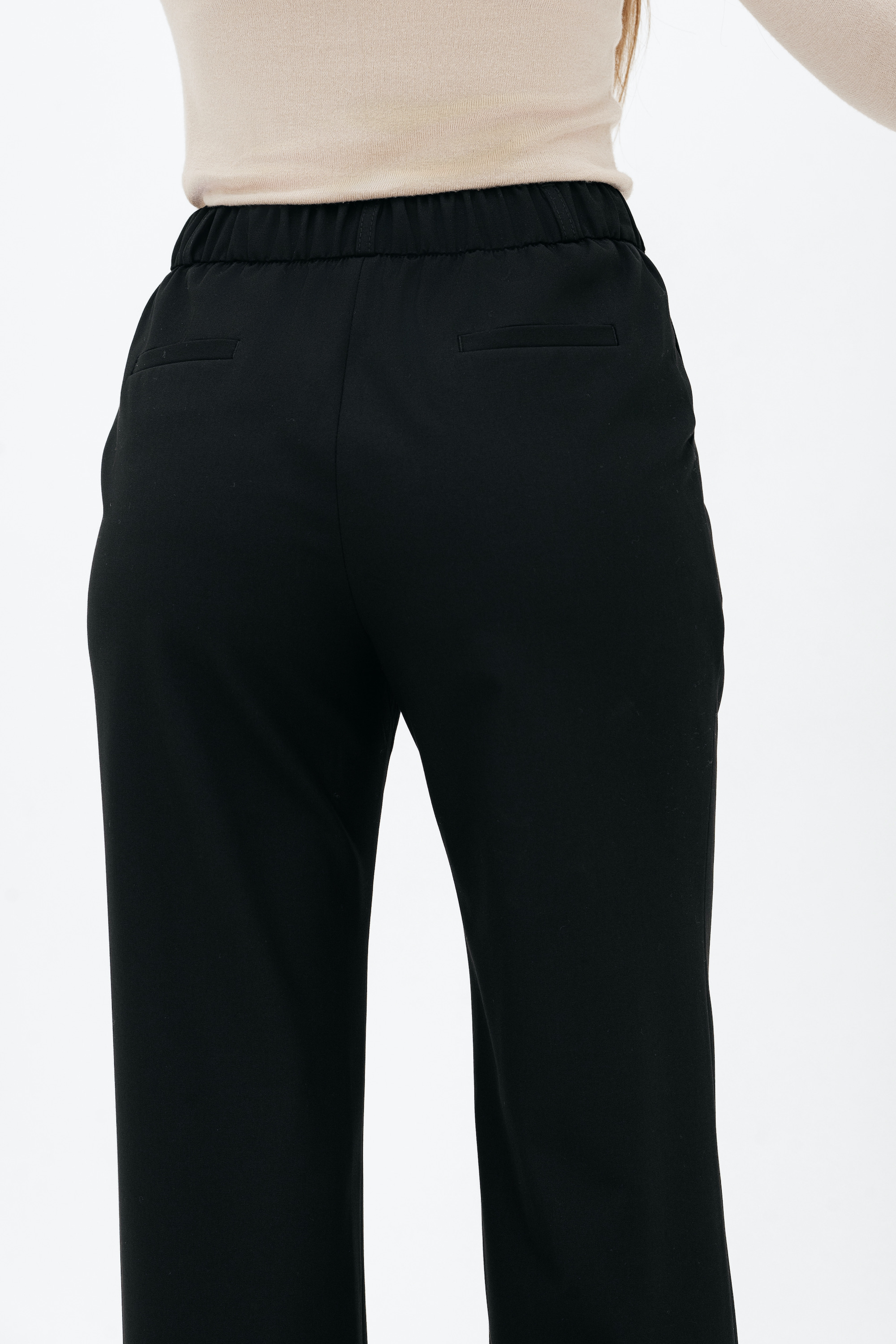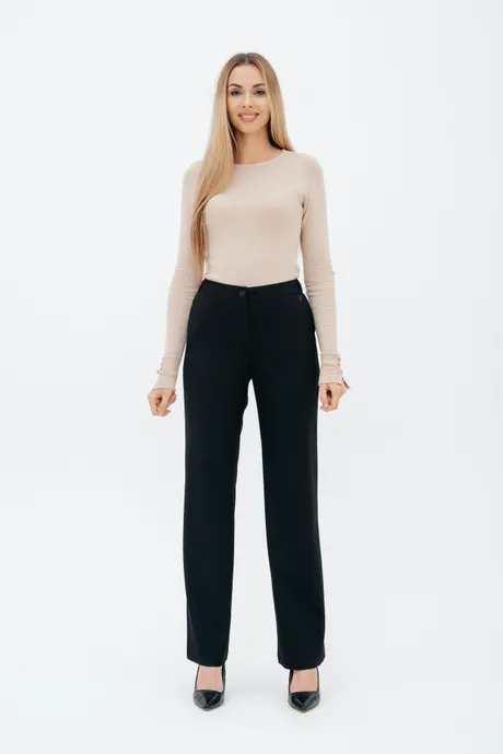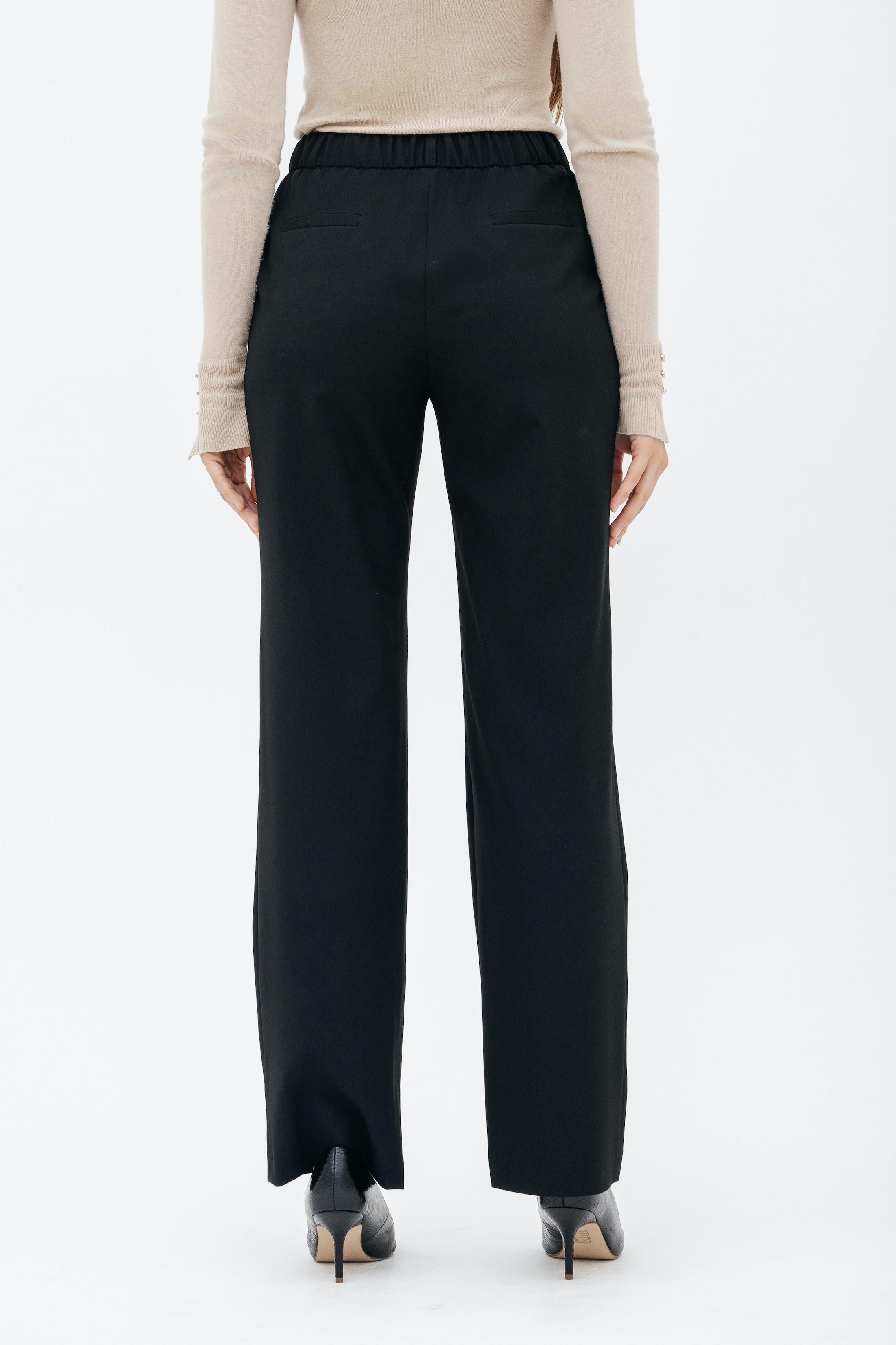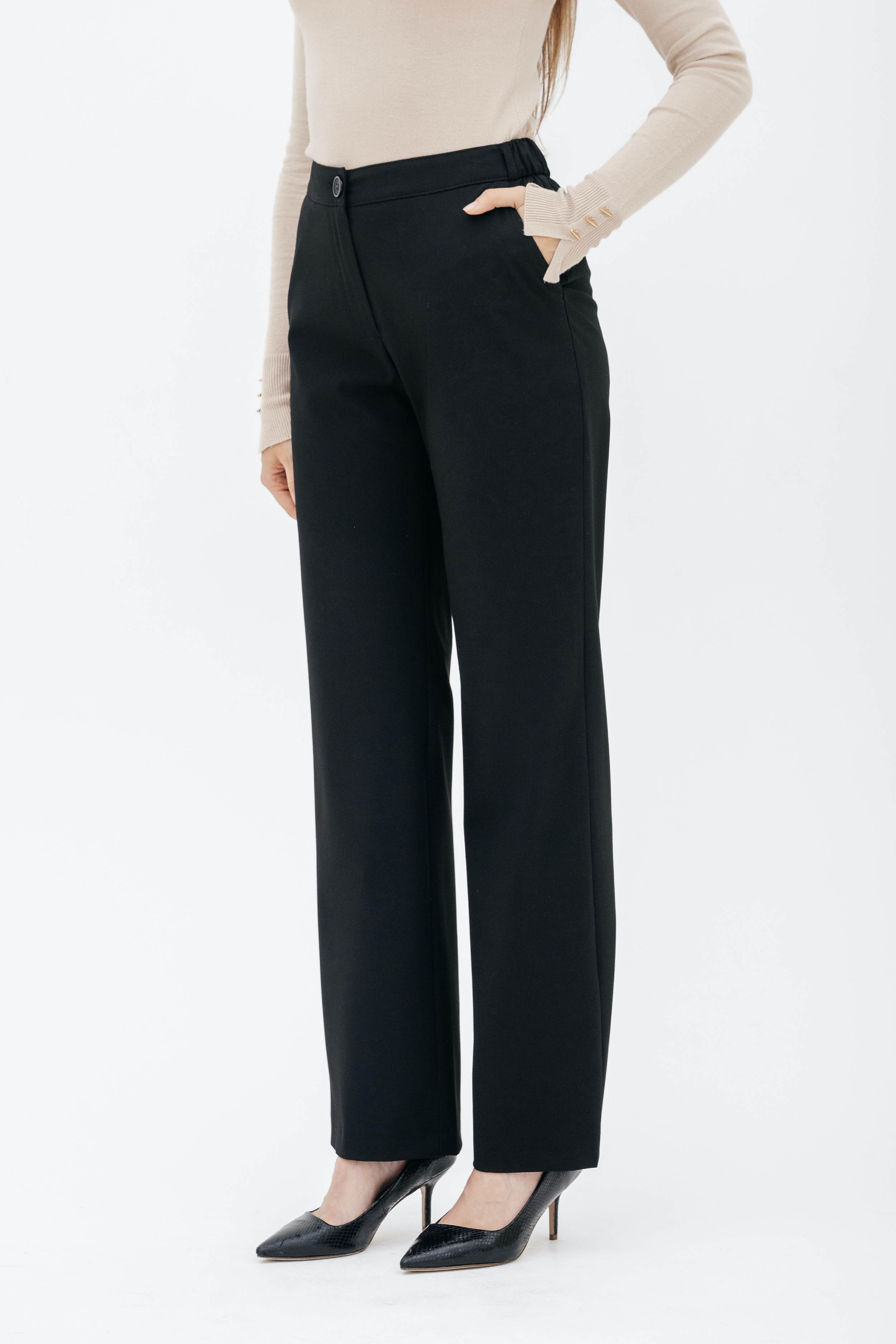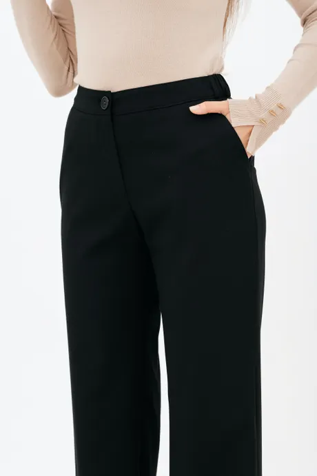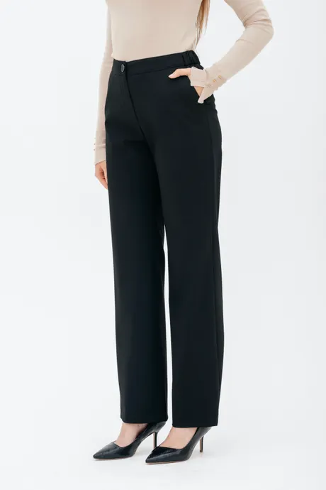 Брюки на высокой посадке, прямые на резинке, с карманами «Босфор» черные