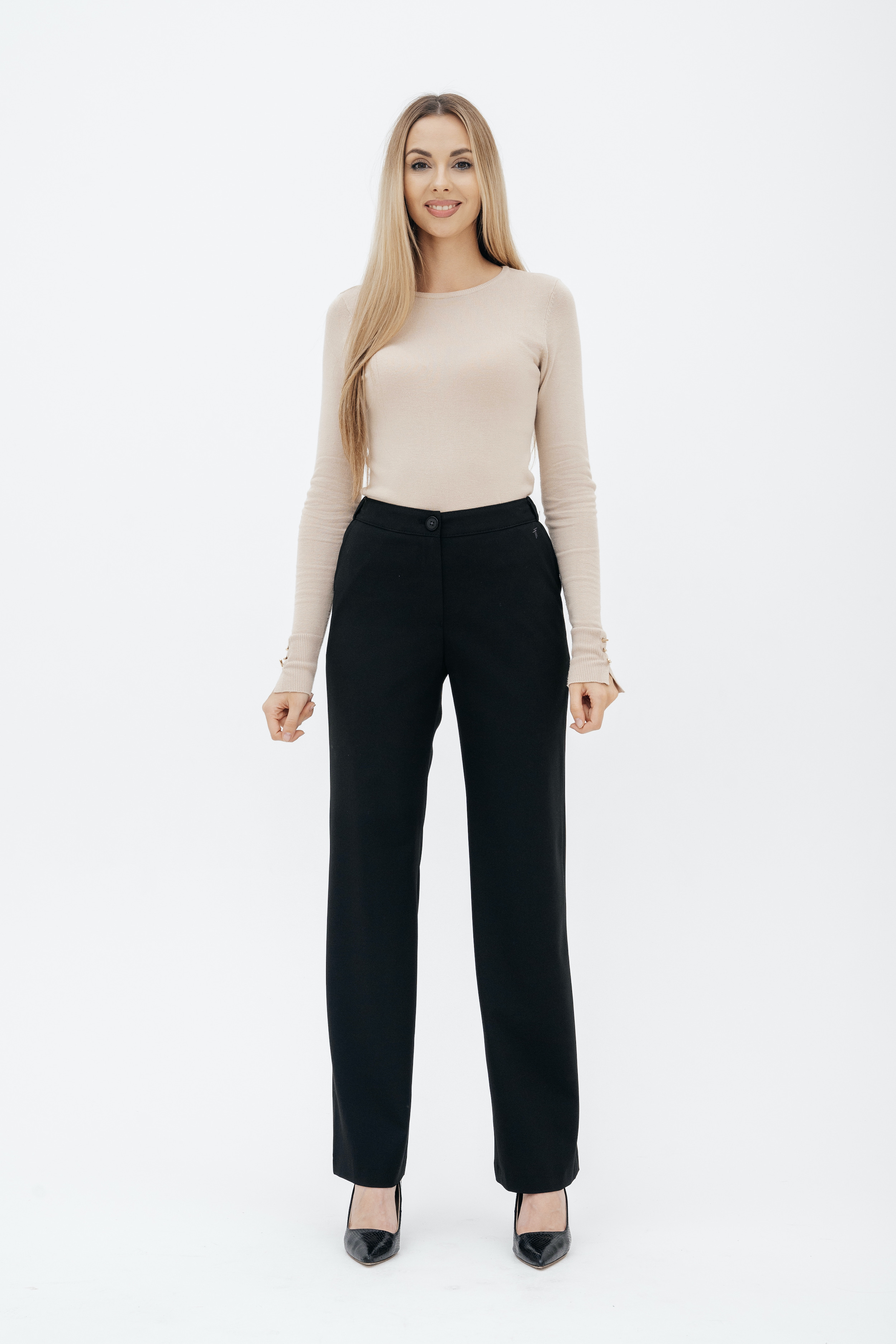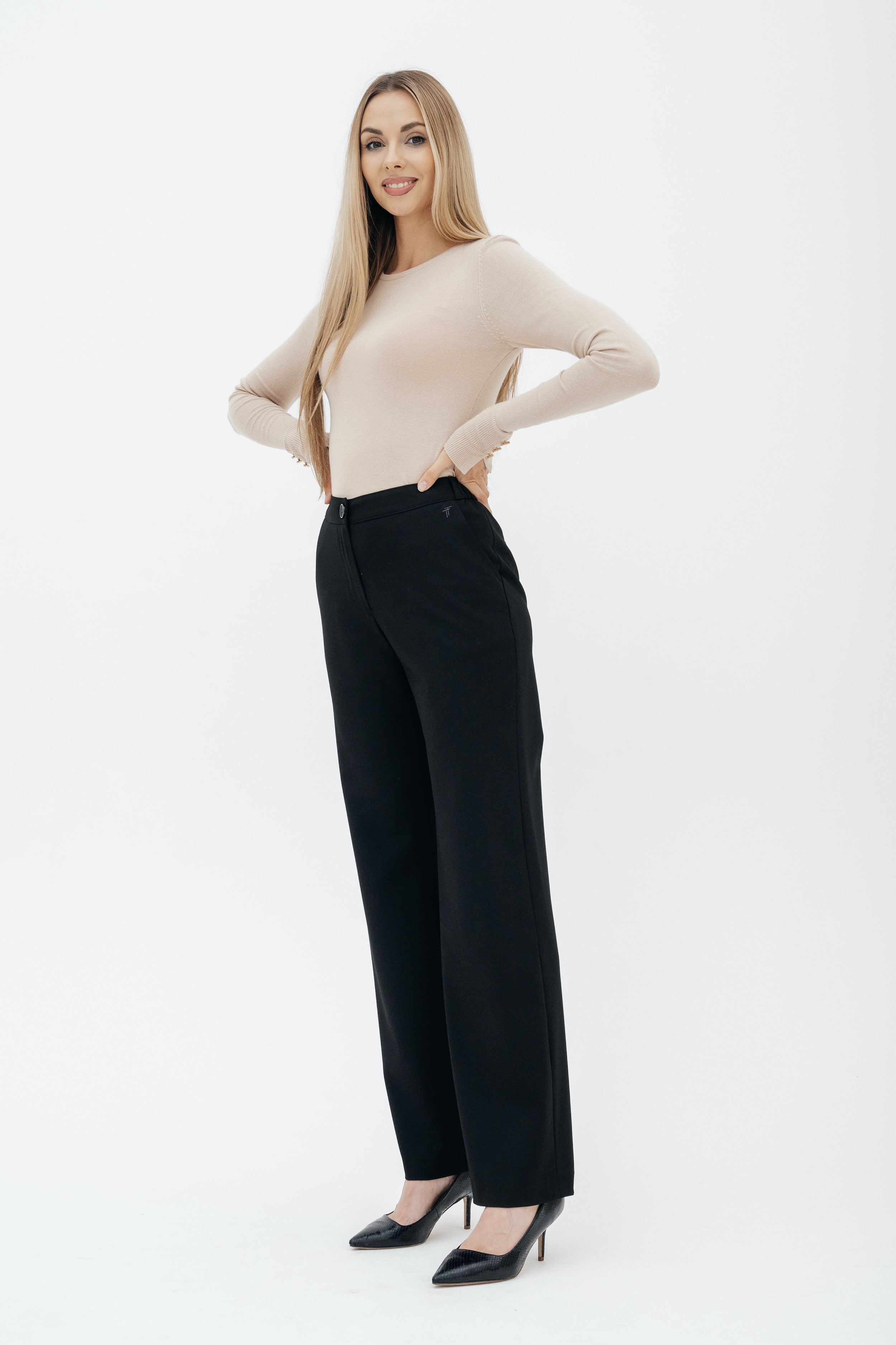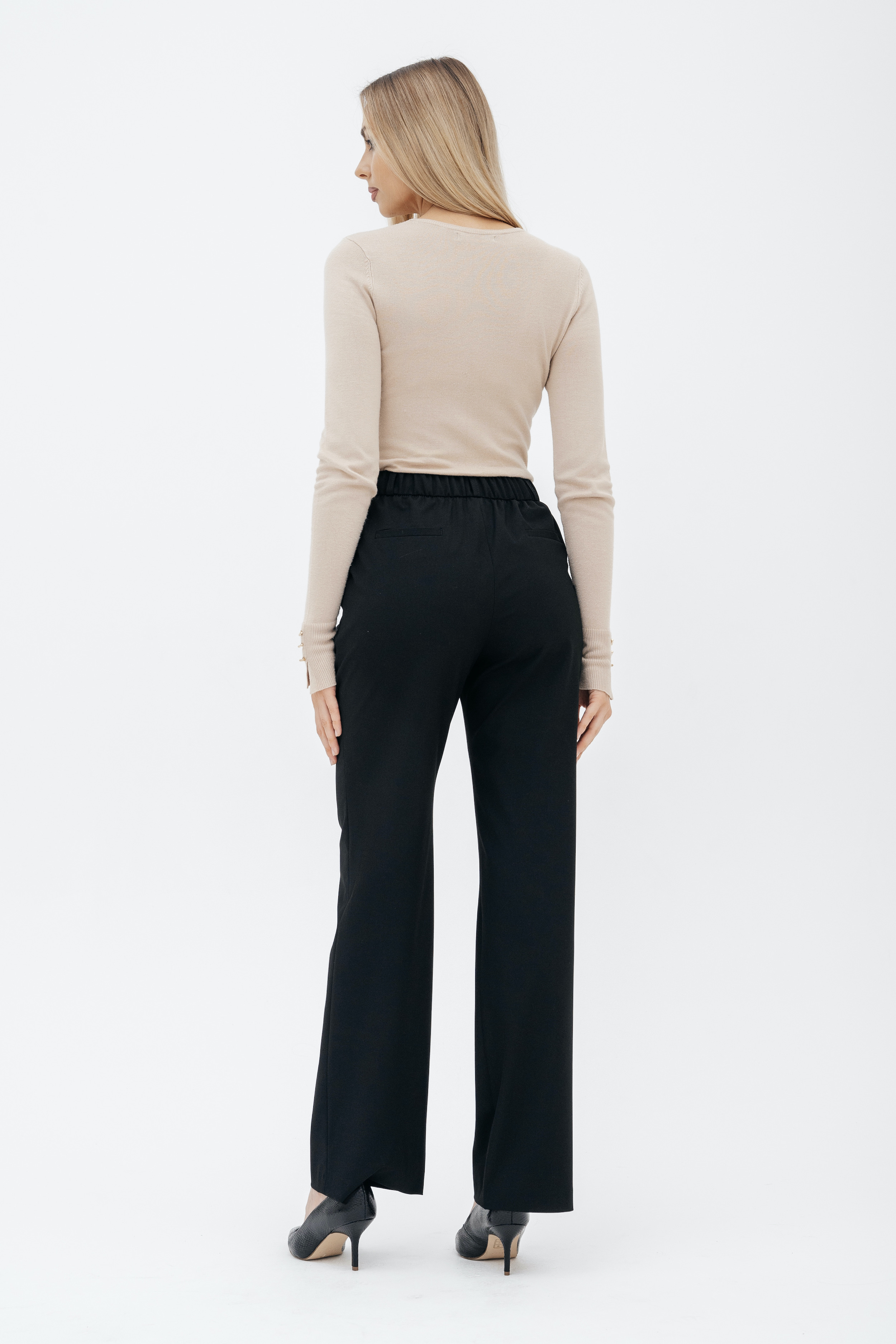 Брюки на высокой посадке, прямые на резинке, с карманами «Босфор» черные
