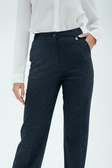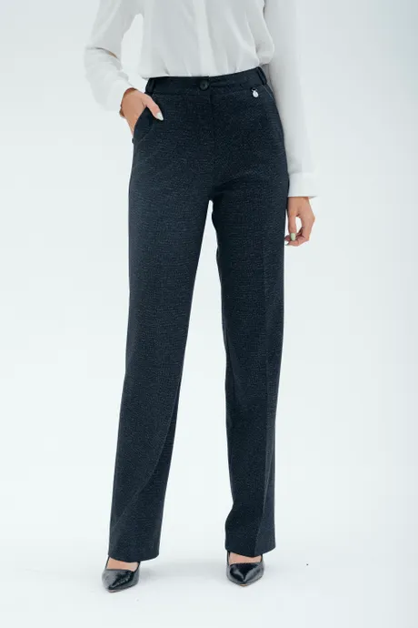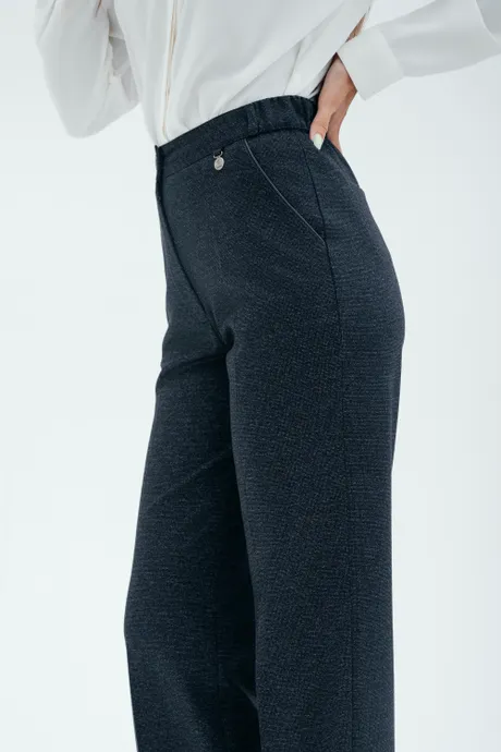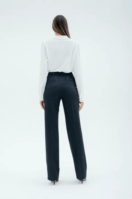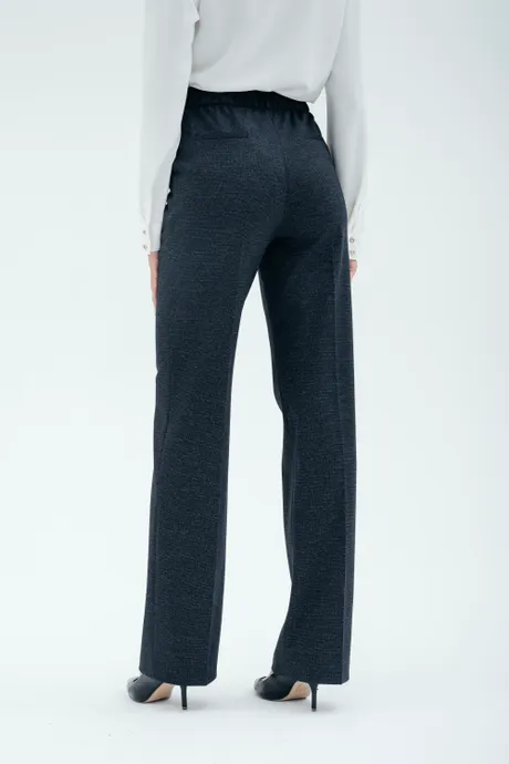 Брюки на высокой посадке, прямые на резинке «Эльц» темно-синие