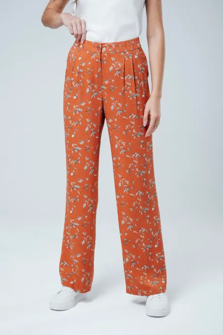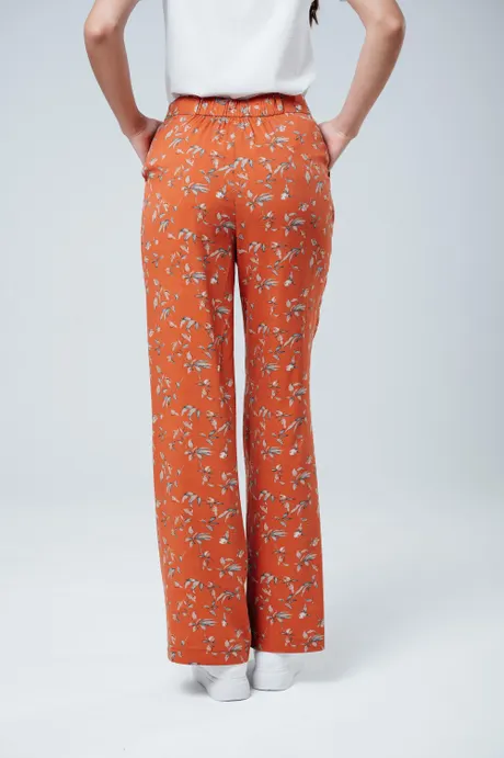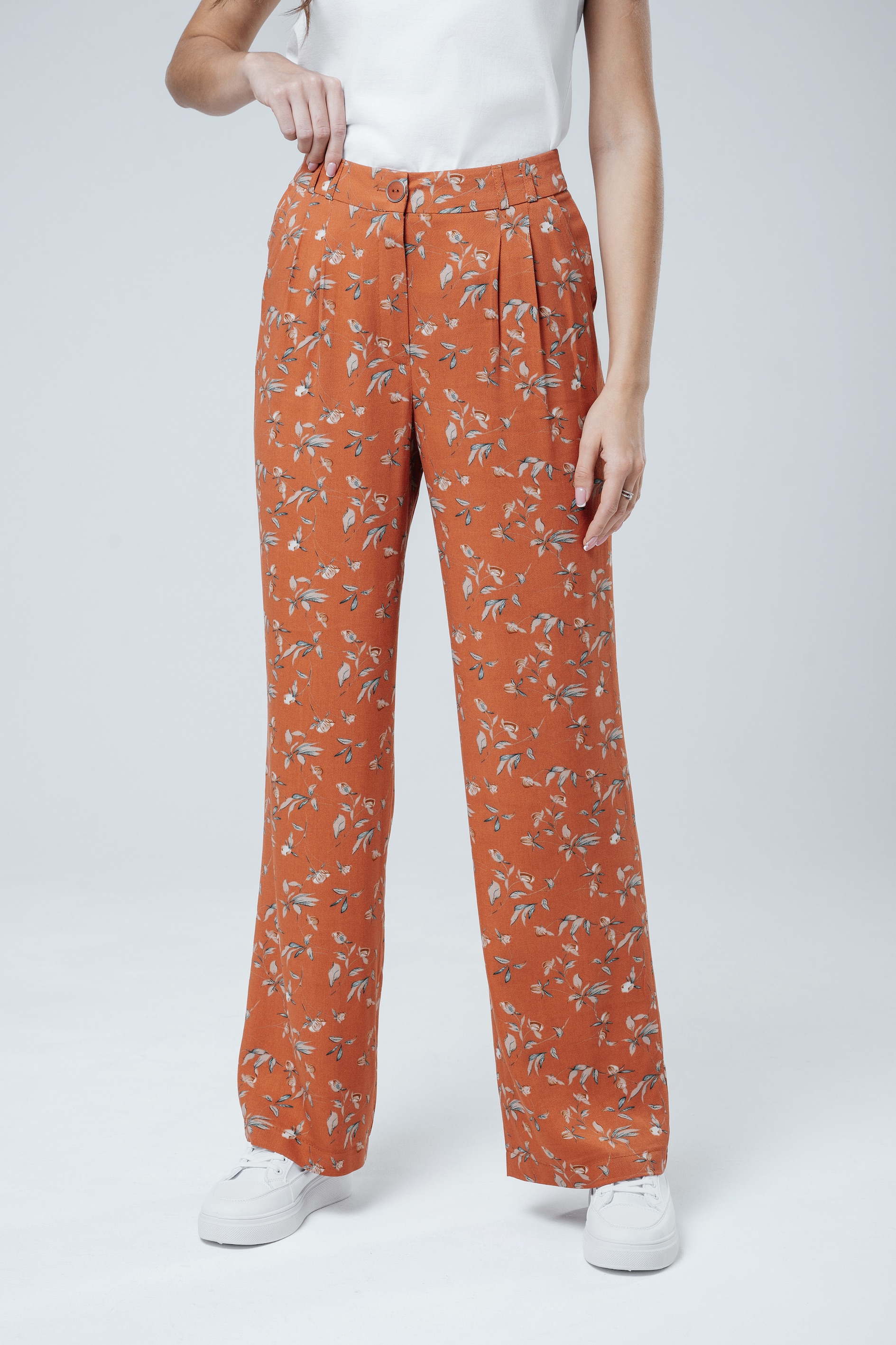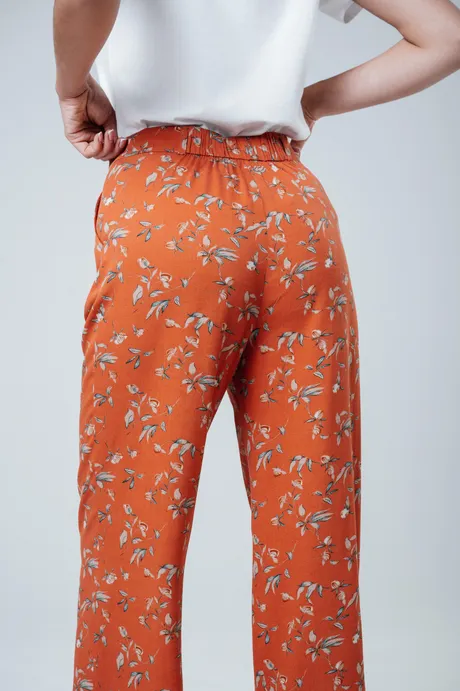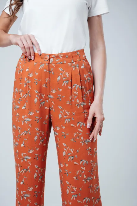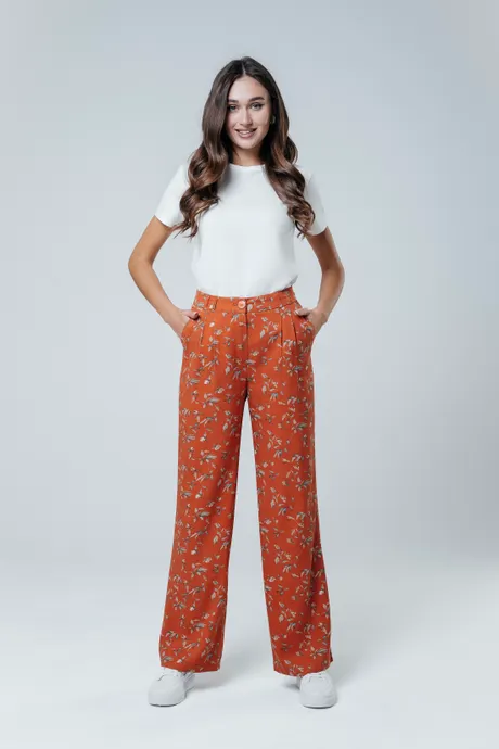 Яркие и стильные оранжевые брюки "Бутоны", изготовленными из прочного штапель-твила. Высокая посадка, прямой крой с изящными защипами делают эту модель отличным выбором для создания современного и эффектного образа. Удобный пояс на резинке гарантирует комфорт в течение всего дня.