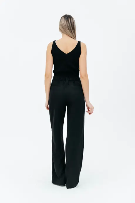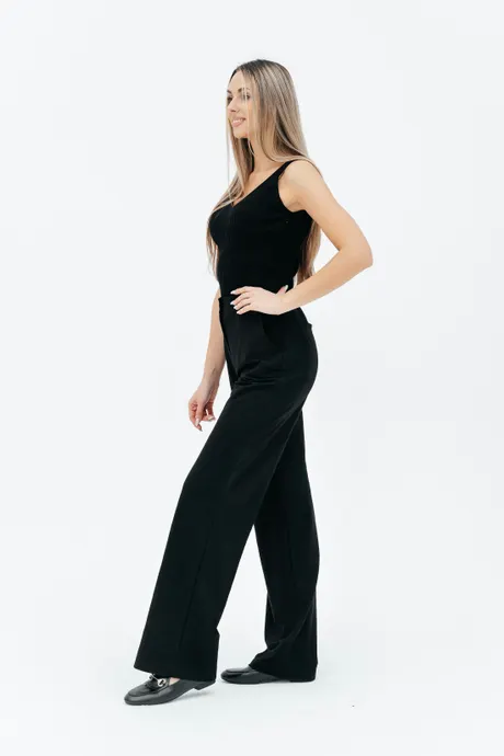 Брюки на высокой посадке, широкие на резинке, с карманами «Херис» черные