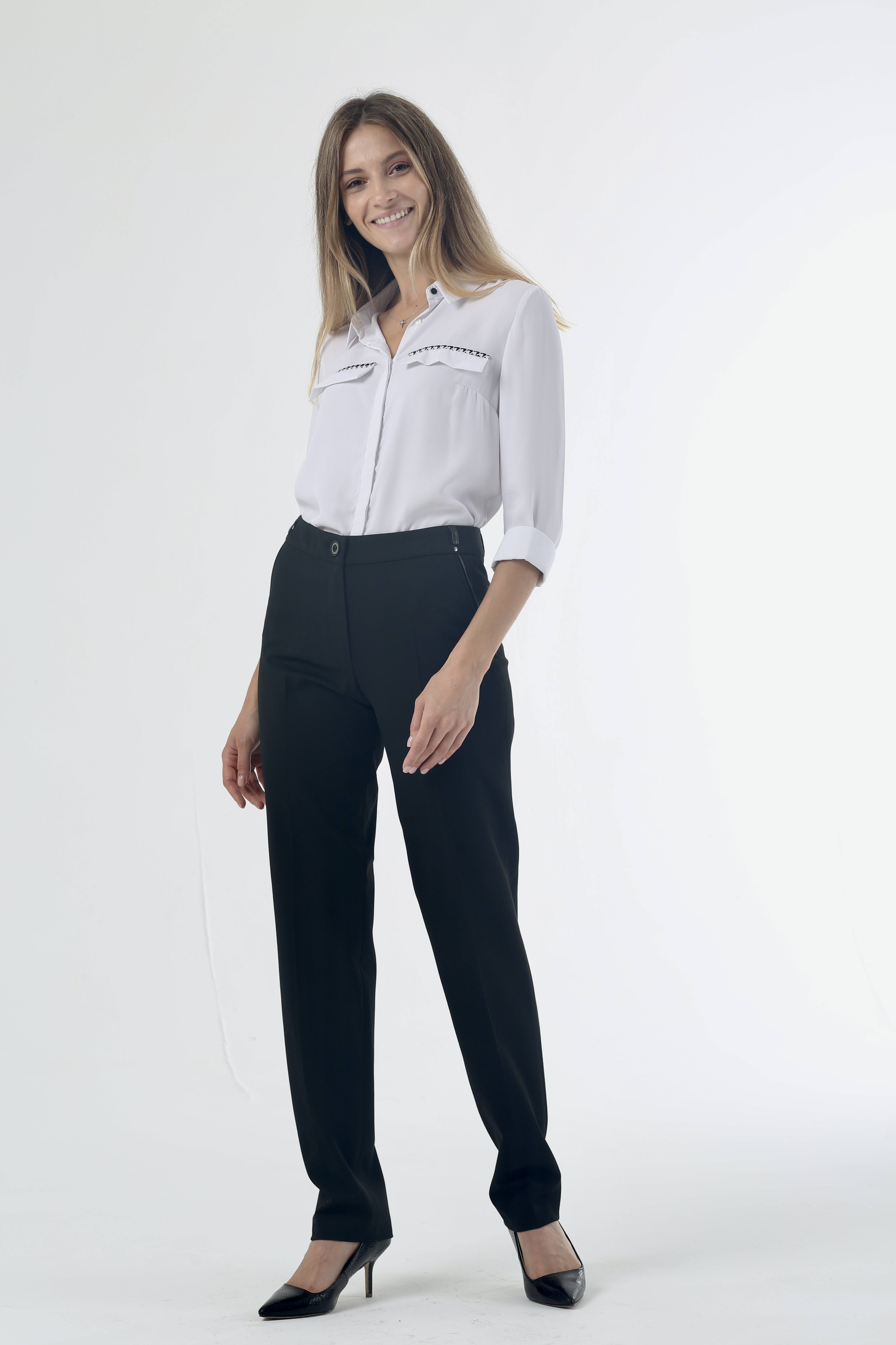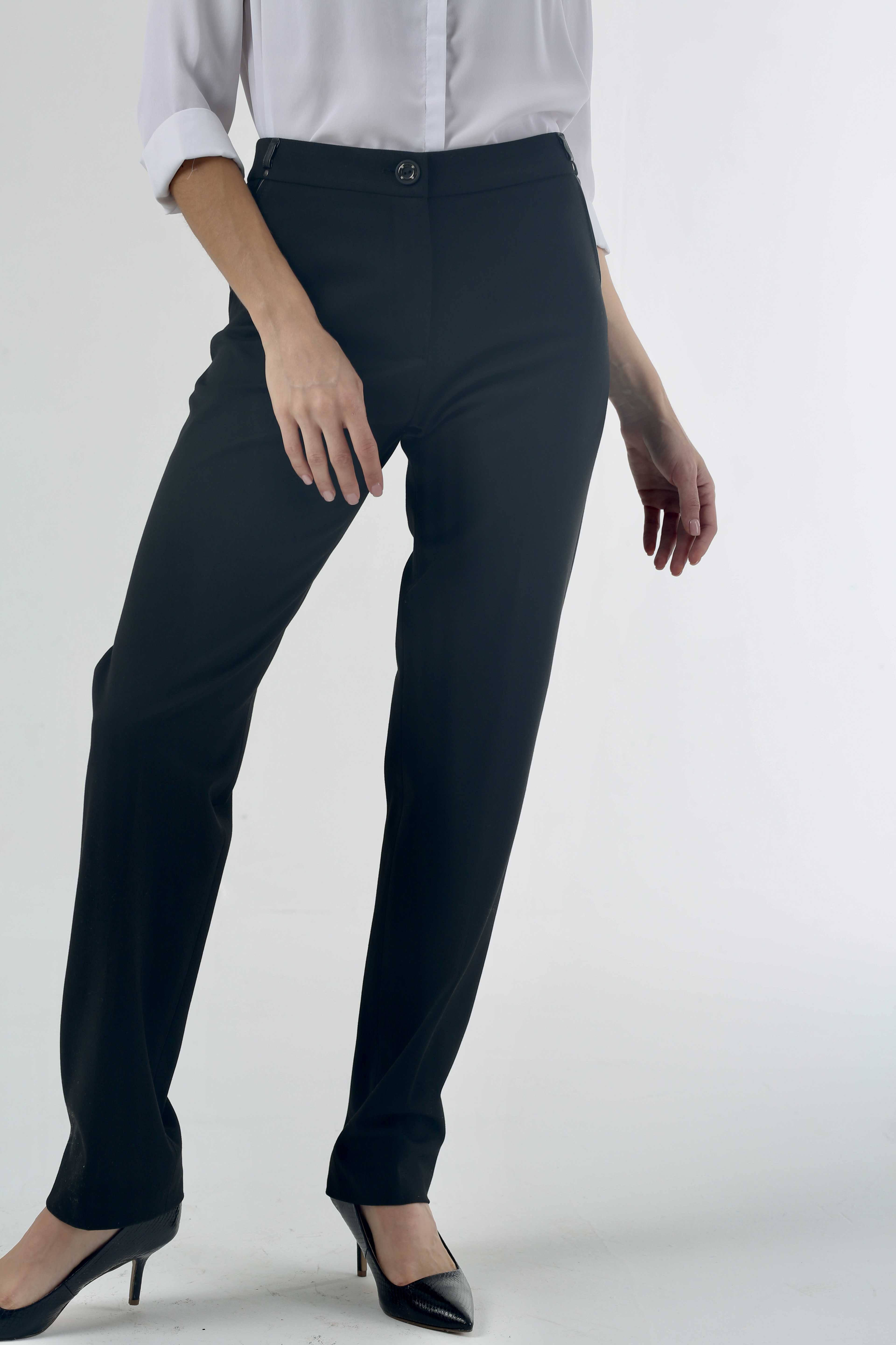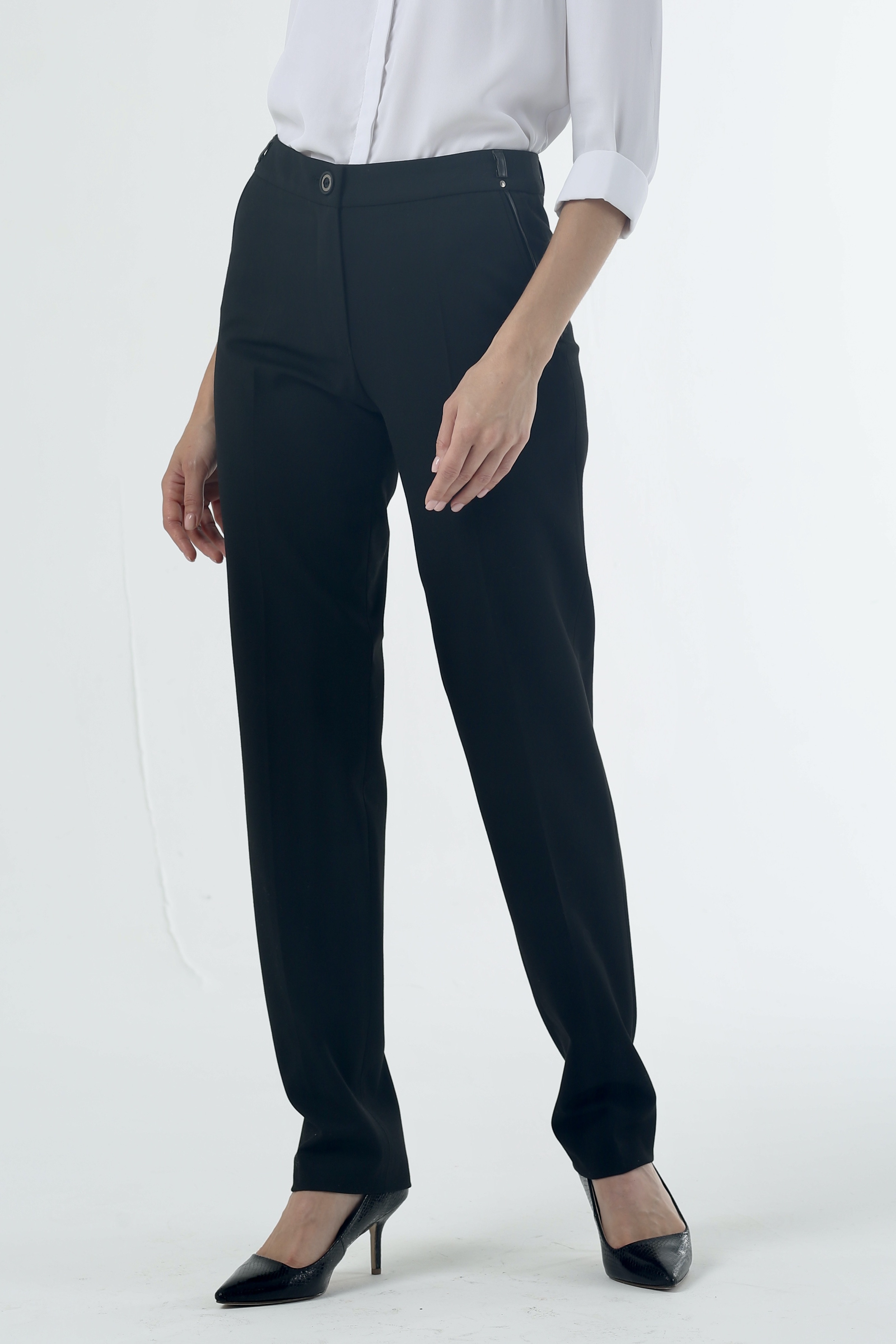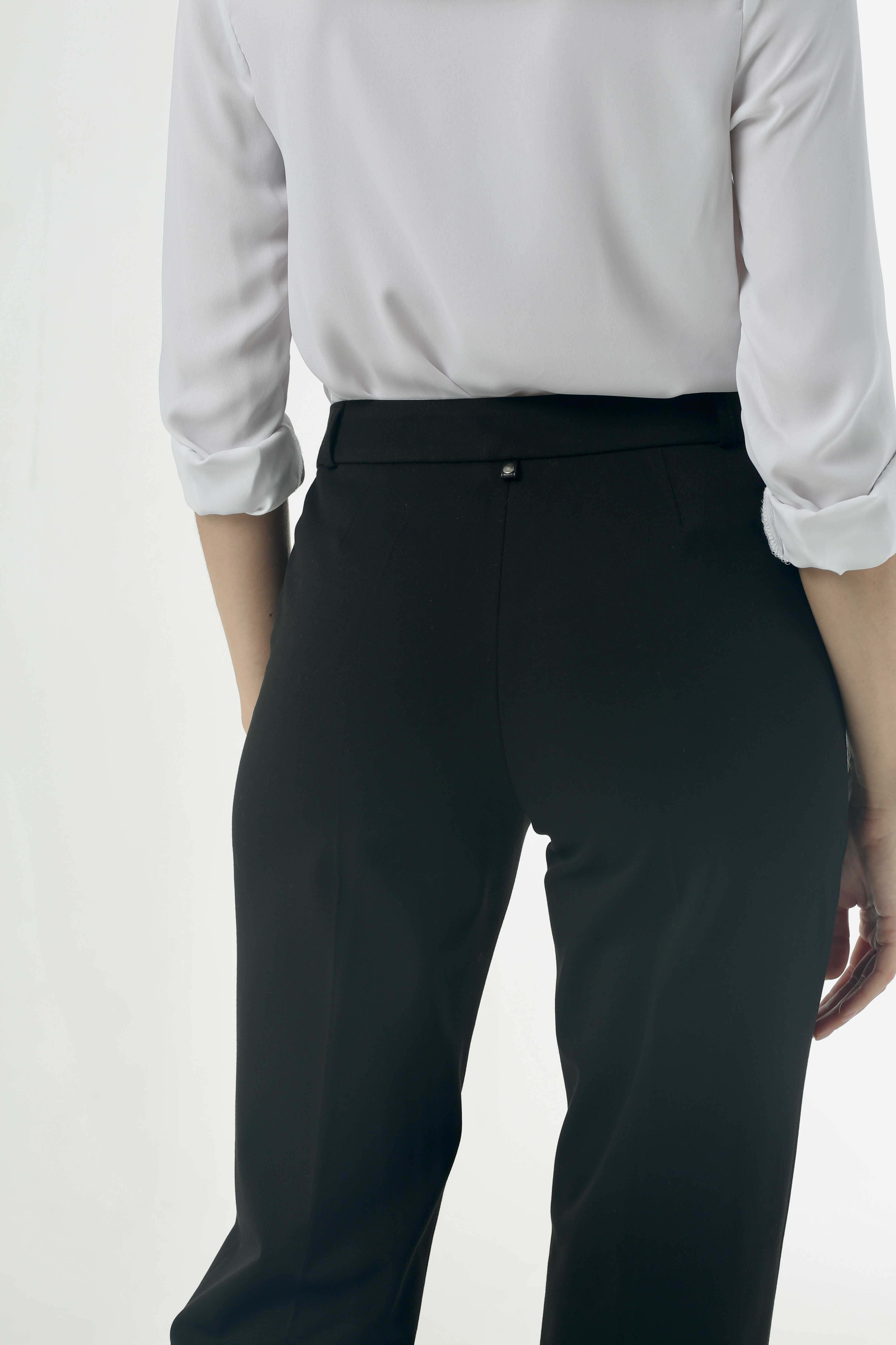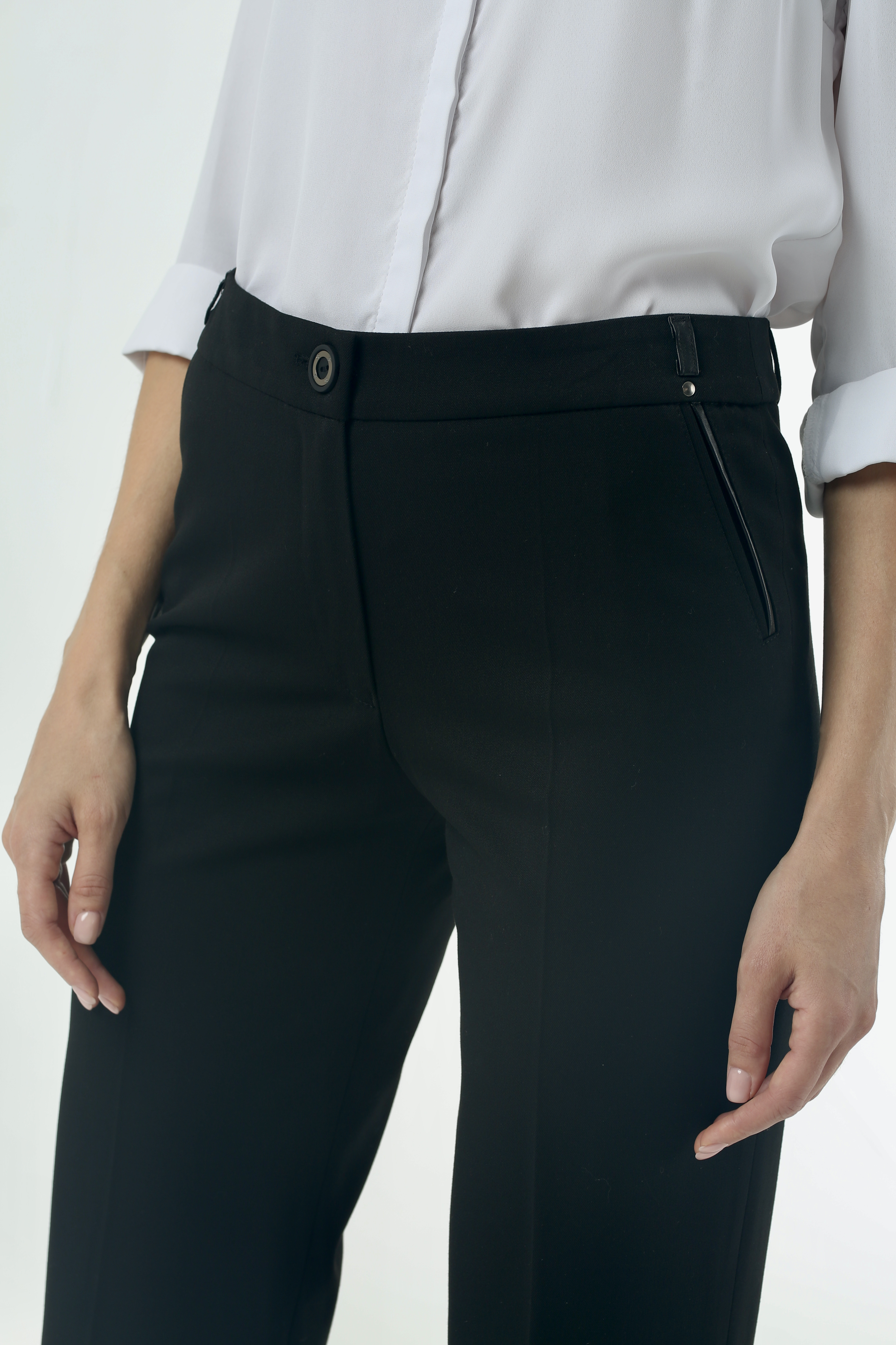 Брюки черные на средней посадке зауженные к низу с отделкой "Броди"