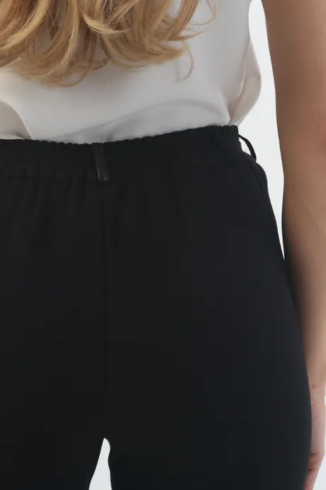 Чтобы будничное утро начиналось с улыбки, позаботьтесь о стильных нарядах на каждый день. Черные зауженные брюки «Трикотаж» на высокой посадке на резинке 7/8 длины станут отличной базой для создания оригинальных повседневных образов. Ярких, строгих, романтичных, изысканных, нежных, кокетливых. Главное – подобрать к ним удачную пару.