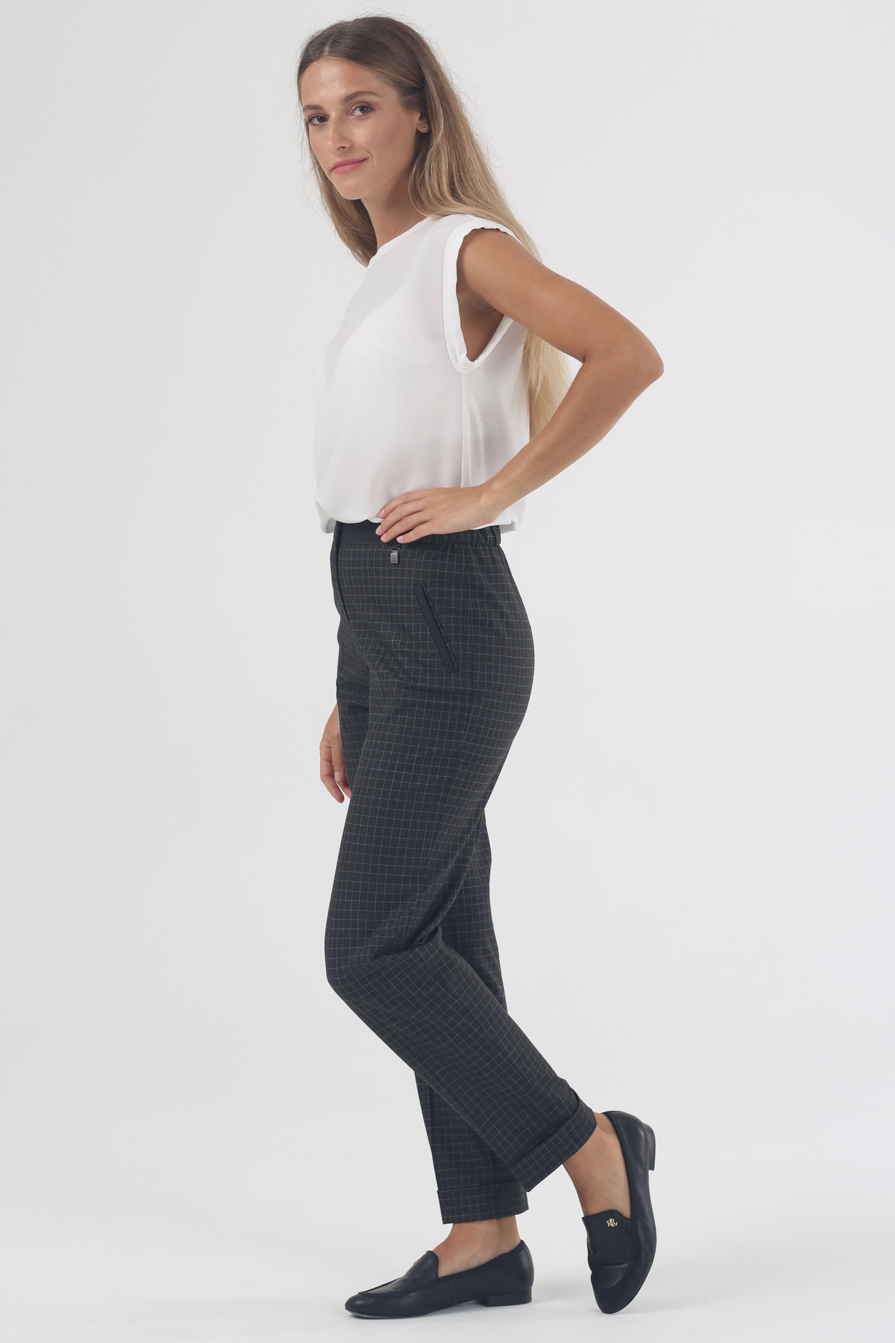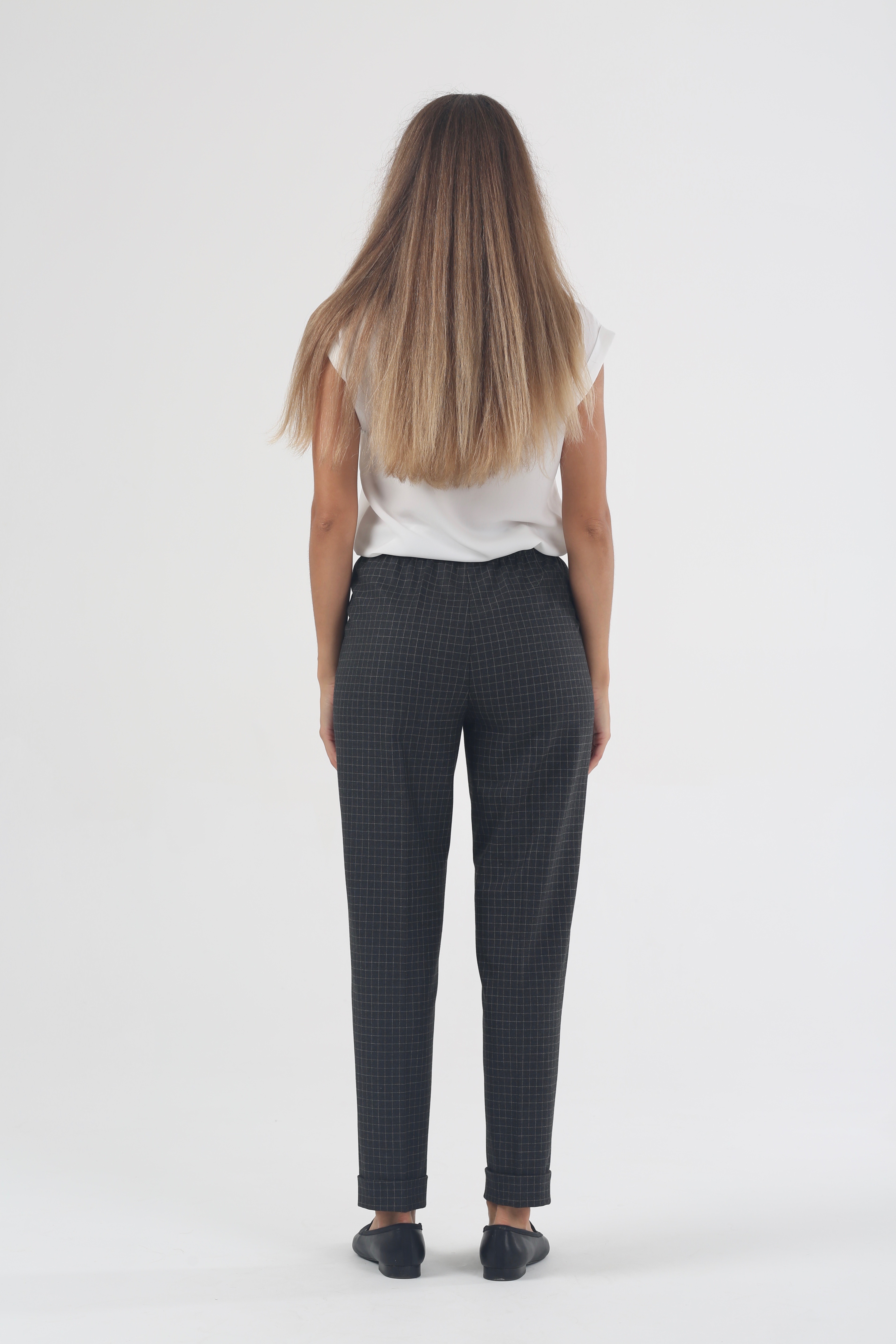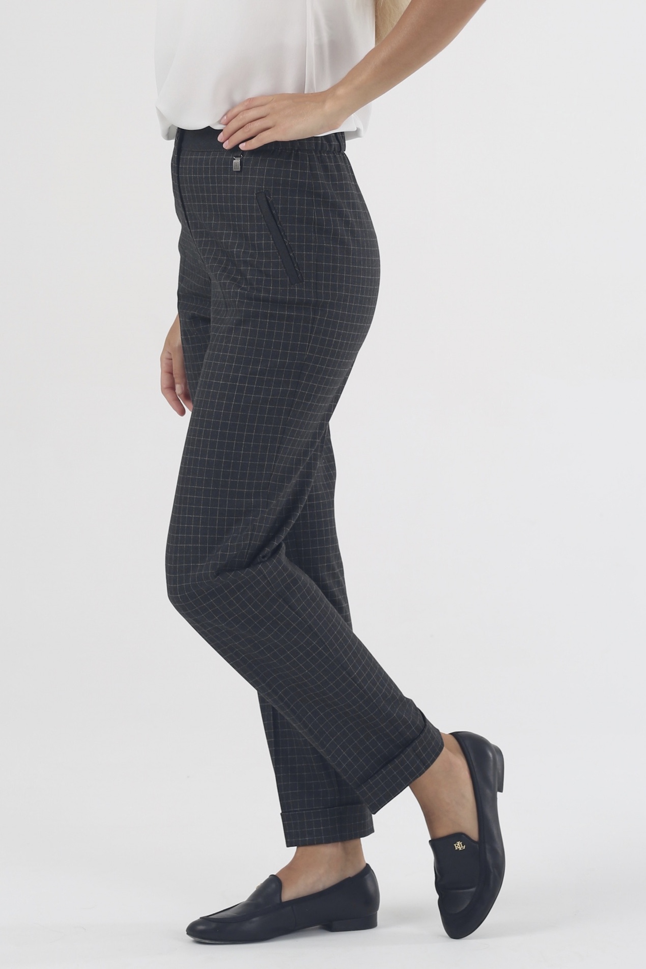 Уютная деловая одежда – это не роскошь, а реальность. Брюки на высокой посадке на резинке 7/8 длины с манжетом «Клеточка Сьюзи» серо-белая созданы, чтобы дарить комфорт во время напряженного рабочего дня. Чувствуйте себя удобно, занимаясь повседневными делами. Не отвлекайтесь от важных занятий, чтобы поправить впившийся в поясницу ремень или разгладить складки на талии.