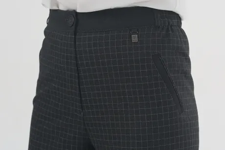 Совершенный крой стильной дизайнерской модели «Клеточка Сьюзи» длиной 7/8 гарантирует аккуратную посадку на фигуре. В модных брюках чуть зауженного силуэта вы всегда будете выглядеть безупречно и элегантно, а эластичная резинка на талии и плотная качественная ткань позаботятся о комфорте. Серо-белая геометрическая расцветка – классика, никогда не теряющая актуальности. Ее можно сочетать с верхом любых цветов и фактур. Поэкспериментируйте с нежными шелковыми блузами, эффектными блейзерами, рельефными пиджаками из жаккарда или кожаными жакетами. Дополните наряд изысканными лодочками на высоком каблуке или уютной обувью на плоском ходу. Модель снабжена кокетливыми манжетами и удобными прорезными карманами, добавляющими нотку неформальности в строгий офисный образ.