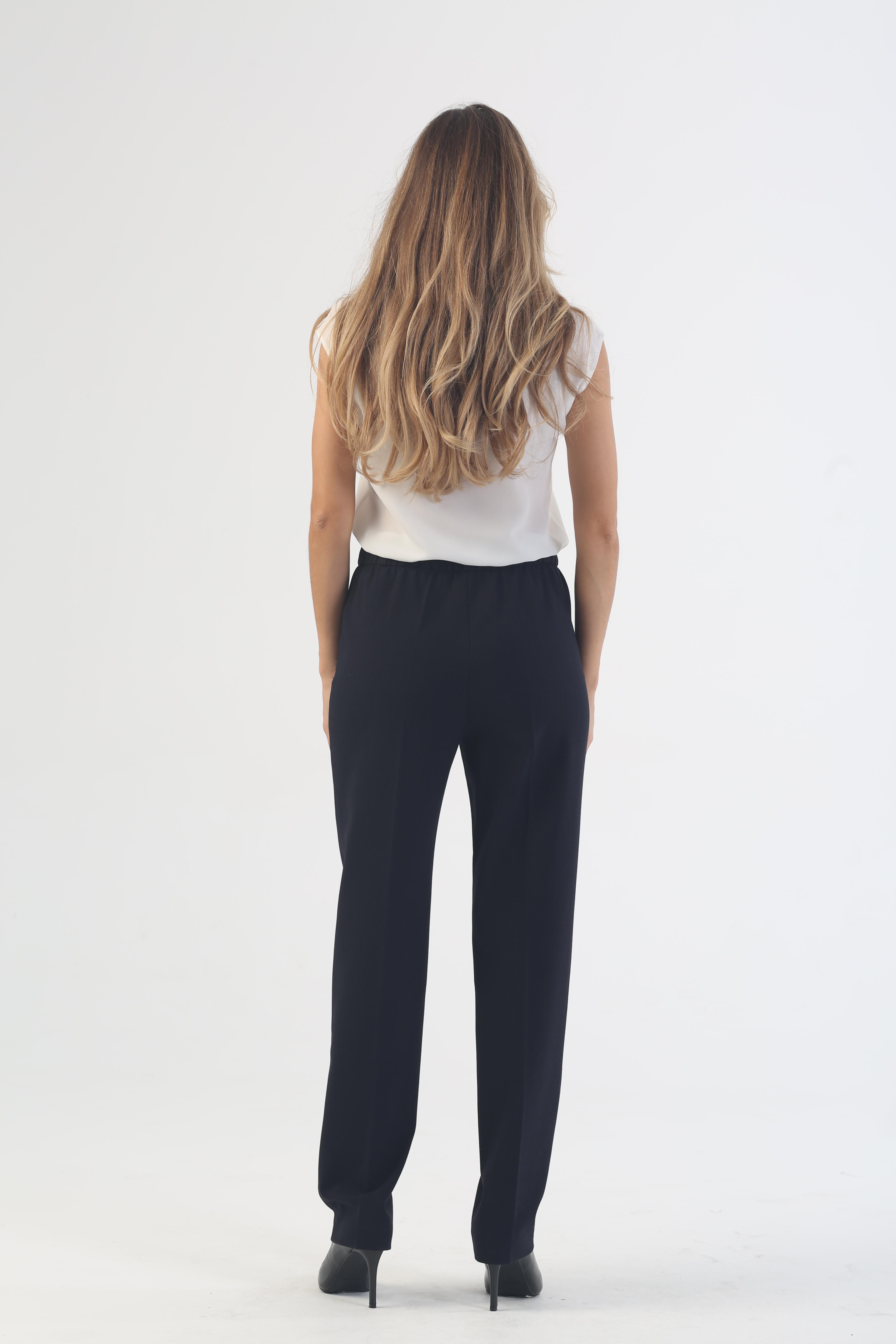 Черно-синие зауженные брюки на высокой посадке на резинке «Полонез утепленный» предназначены для создания эффектных повседневных образов в холодную, сырую и ветреную погоду. Благодаря высокому содержанию шерсти модель отлично согревает, а включение эластичной лайкры и нежной вискозы обеспечивает комфорт в процессе ношения.