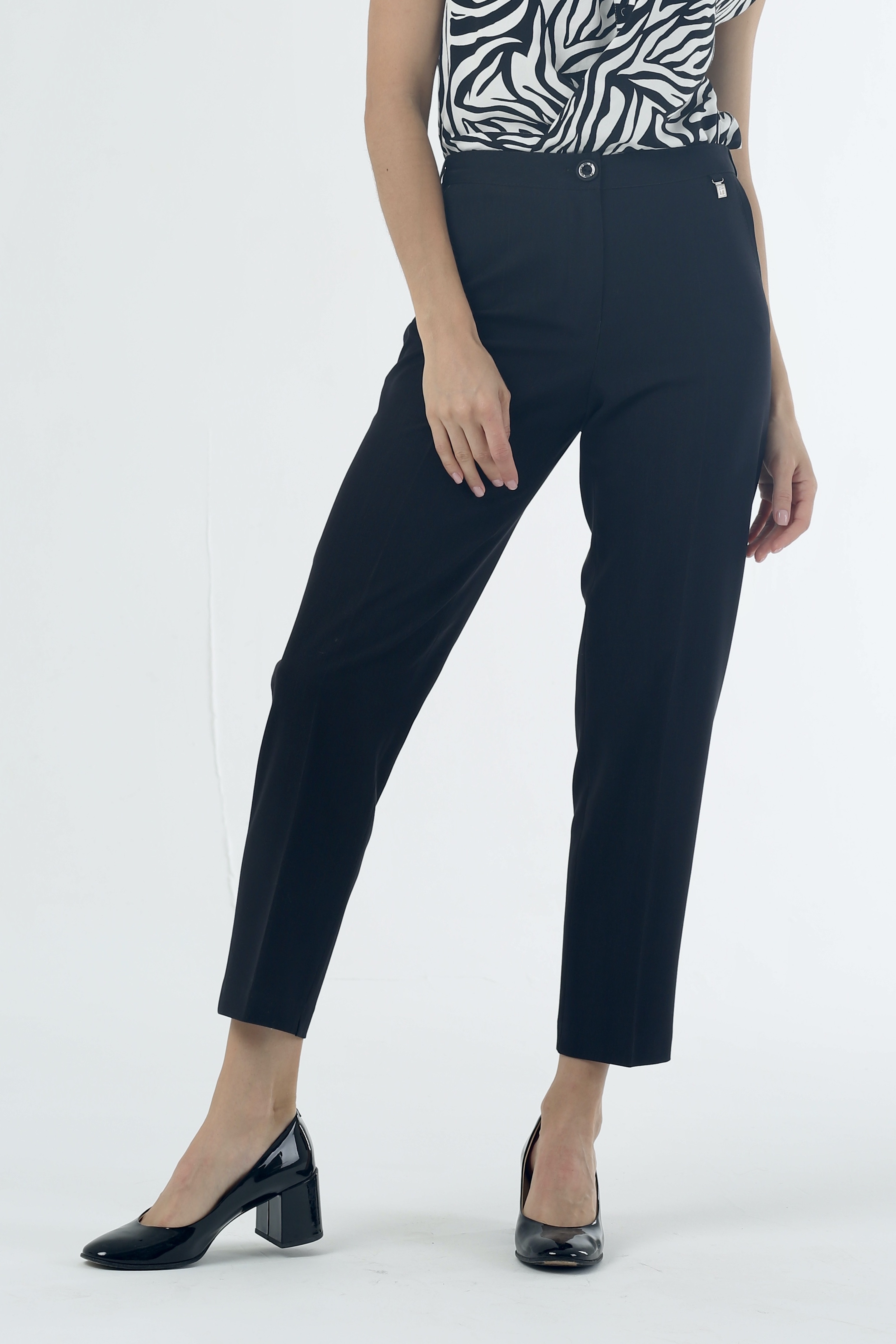 Добавьте в свой гардероб стильные и элегантные брюки на высокой посадке слегка зауженные 7/8 «Константа» черные. Они идеально подходят для офисных выходов, а также для повседневной носки. Высокая посадка брюк подчеркнет вашу талию и создаст идеальное сочетание с любой топовой одеждой. Слегка зауженный крой и длина 7/8 делают эти брюки модными и современными. Черный цвет - это универсальный оттенок, который легко сочетается с различными цветами и стилями. Изготовленные из высококачественных материалов, эти брюки обеспечат максимальный комфорт и удобство в ношении на протяжении всего дня.