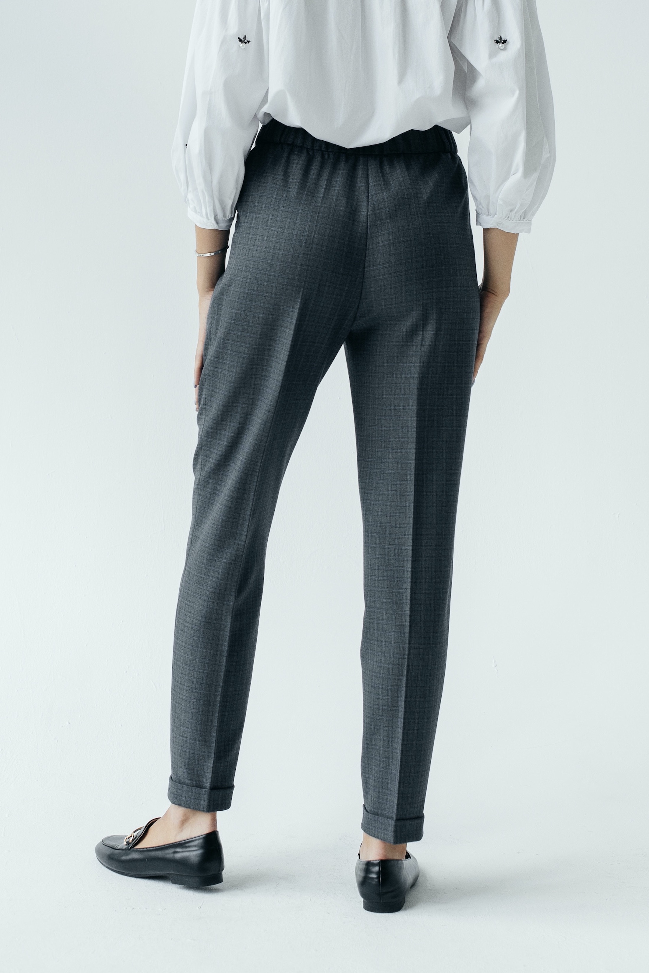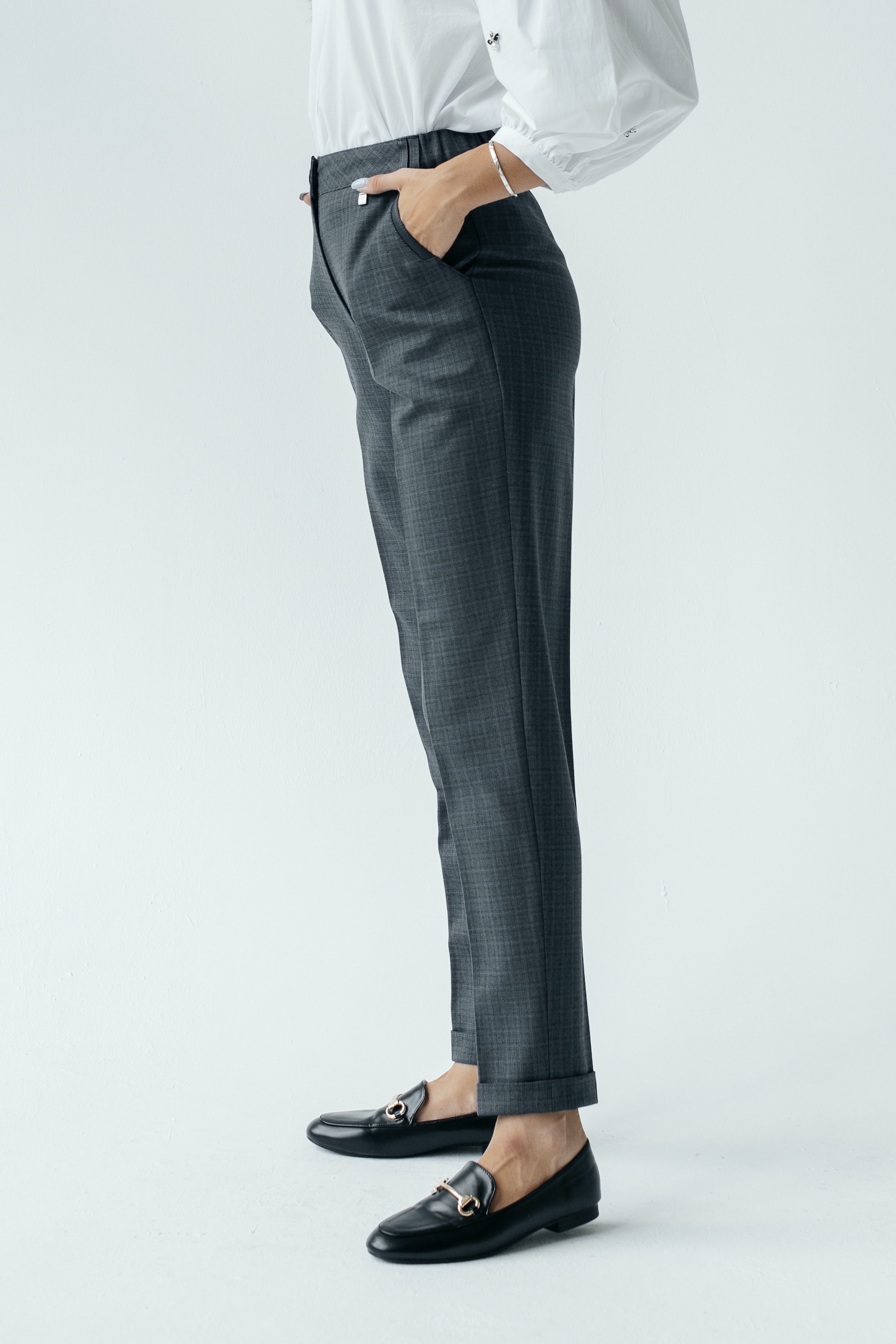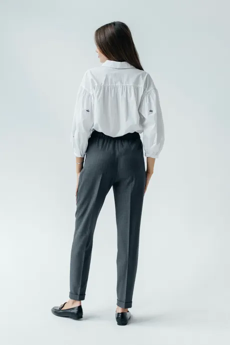 Откройте для себя комфорт и стиль серо-синих брюк "Лейден" на высокой посадке с эластичной резинкой. Зауженные к низу и с отворотами на длине 7/8, эти брюки идеально садятся на фигуре и подчеркивают вашу женственность. Изготовленные из качественных материалов, они обеспечивают долговечность и приятное ощущение при носке. Серо-синий цвет делает эти брюки идеальным дополнением к любому гардеробу, позволяя легко сочетать их с разнообразными верхами, аксессуарами и обувью для создания модных и уникальных образов.