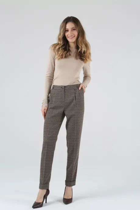 Эта модель брюк идеально смотрится на девушках ростом 170 см и выше. Зауженные брюки «Базель» хорошо сидят и на узких, и на широких бедрах. Их можно сочетать с разными стилями одежды, но эффектнее всего они смотрятся с объемными свитерами, приталенными жакетами, кардиганами, майками, водолазками, топиками и футболками. Желательно, чтобы верх был однотонным. Обувь можно подобрать как на каблуке, так и на плоской подошве.