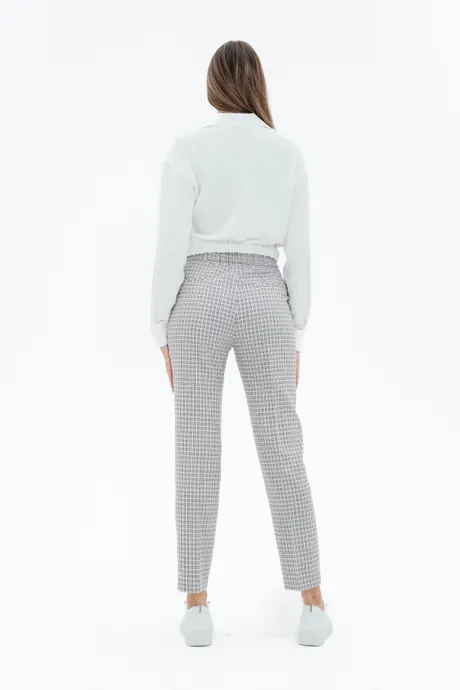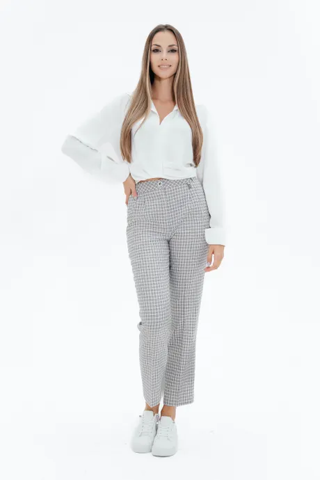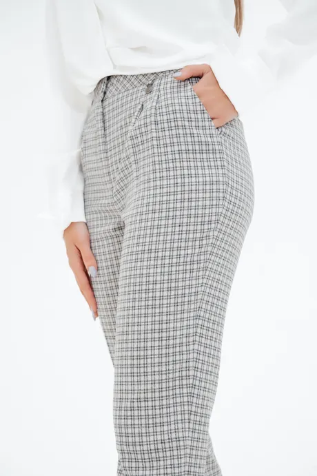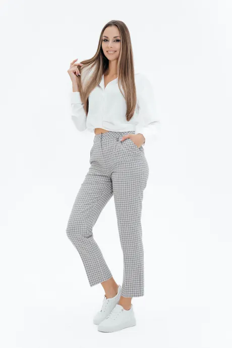 Светло-серые брюки "Кассель" - это элегантное решение для вашего гардероба. Их зауженный крой и длина 7/8 делают их идеальными для современных образов. Резинка на поясе обеспечивает отличную посадку, а защипы придают им характерный вид. Подчеркните свой стиль с этими уникальными брюками.