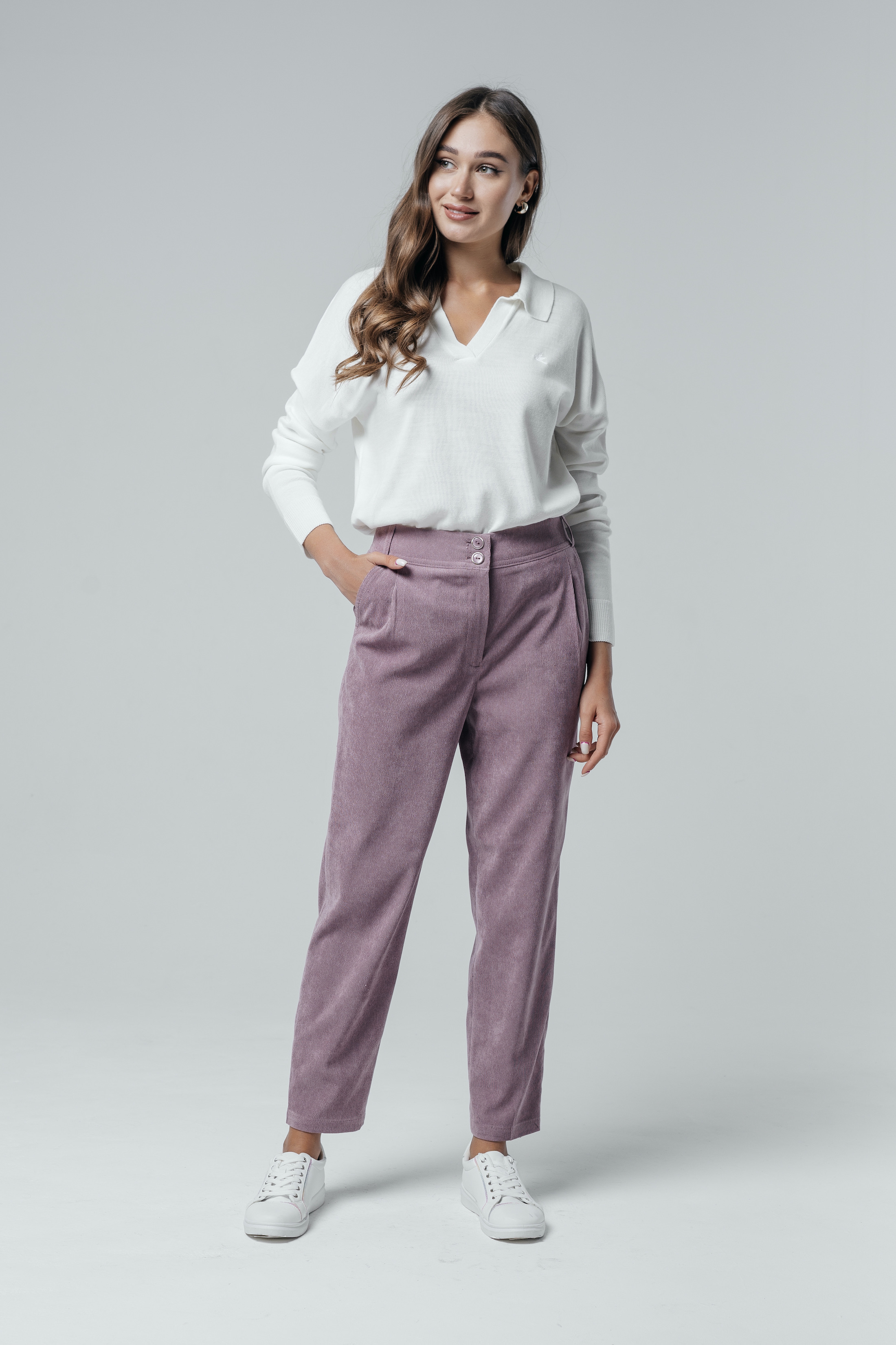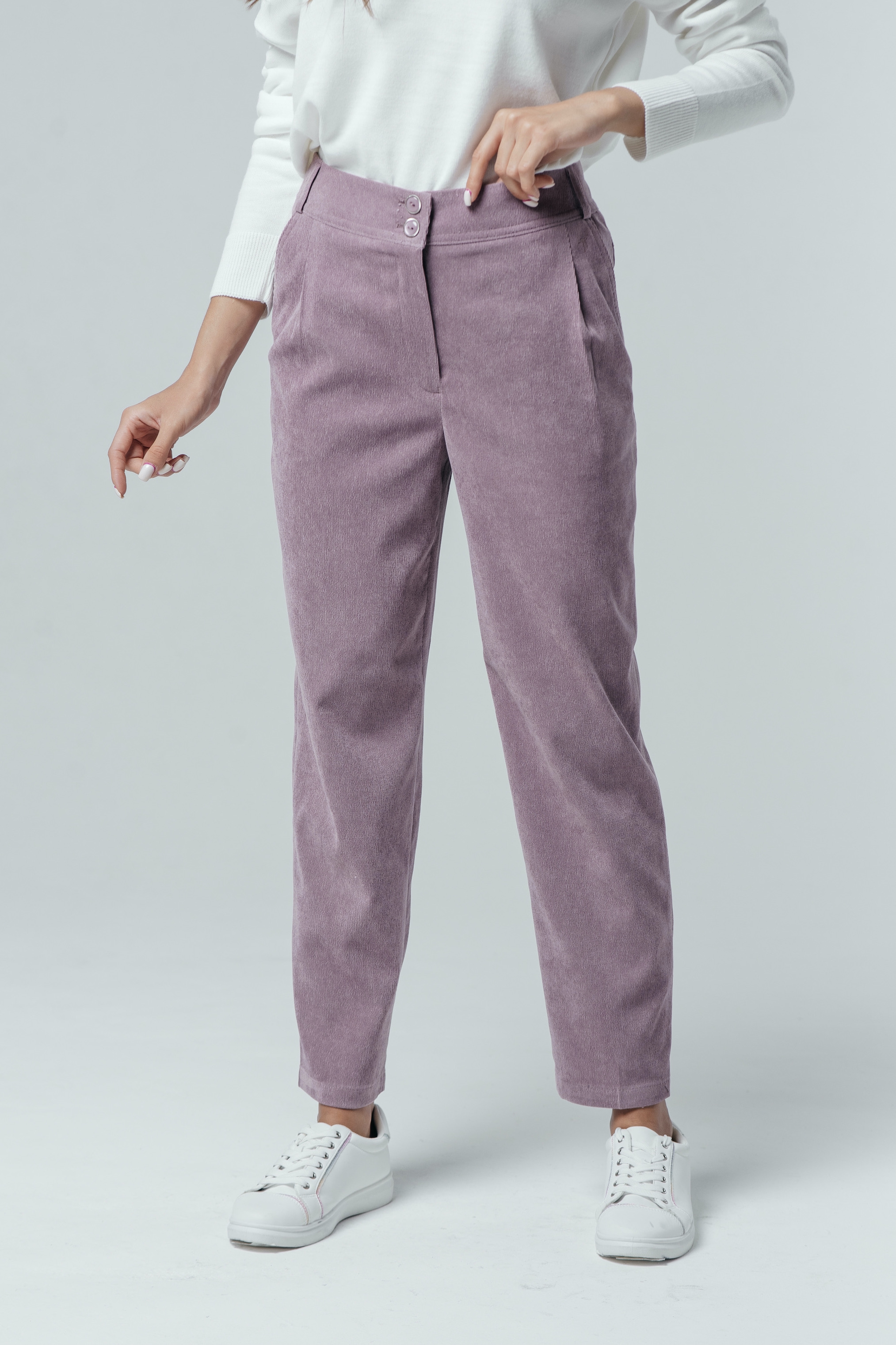 Почувствуйте нежность и роскошь с брюками "Вельвет" на высокой посадке в цвете пыльной розы. Эти брюки имеют зауженный крой с защипами и 7/8 длину, которые вместе создают стильный и современный образ. Высококачественный вельветовый материал предлагает комфорт и изысканность на протяжении всего дня. Цвет пыльной розы добавляет нотку романтики и женственности, делая эти брюки идеальным выбором для создания гармоничных и элегантных ансамблей на любой вкус и случай.