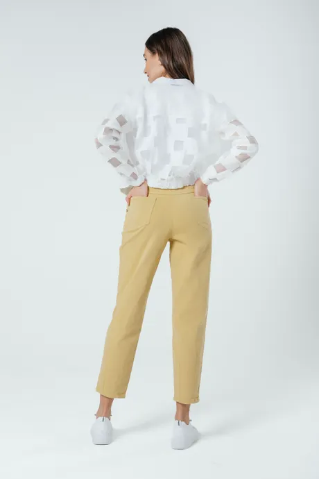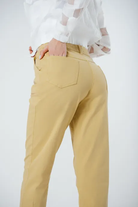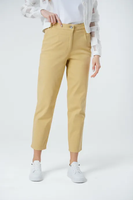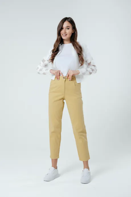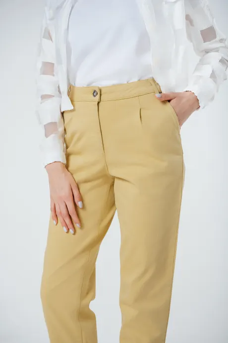 Брюки на высокой посадке, зауженные 7/8, с защипами «Стамбул» лимонный