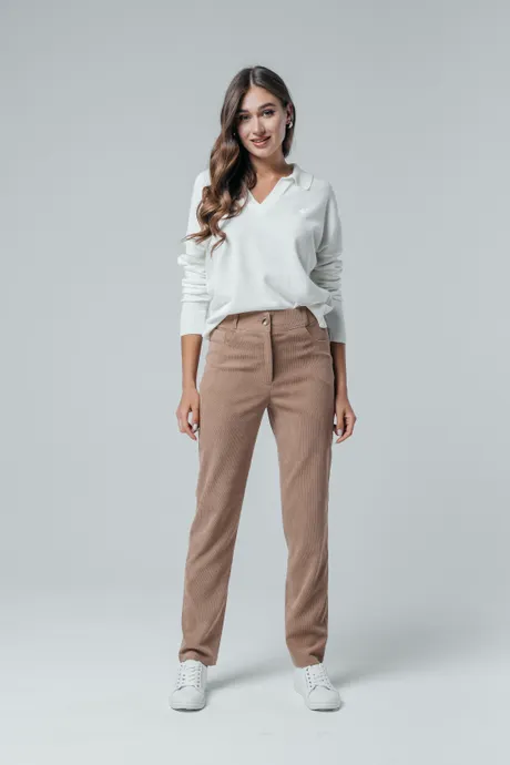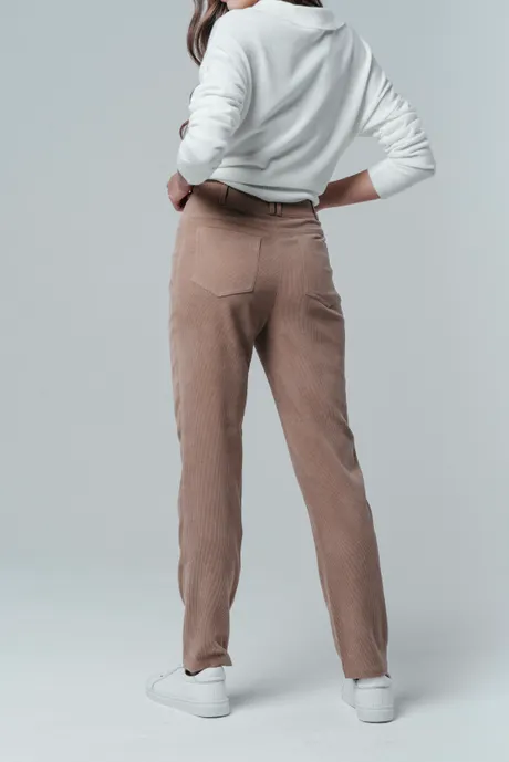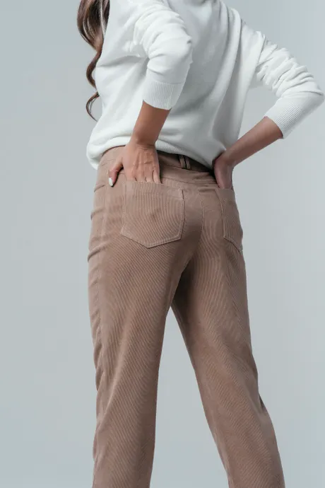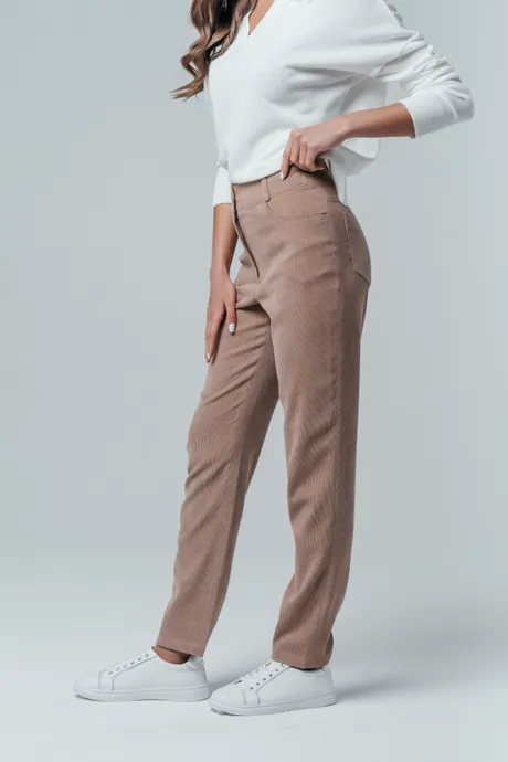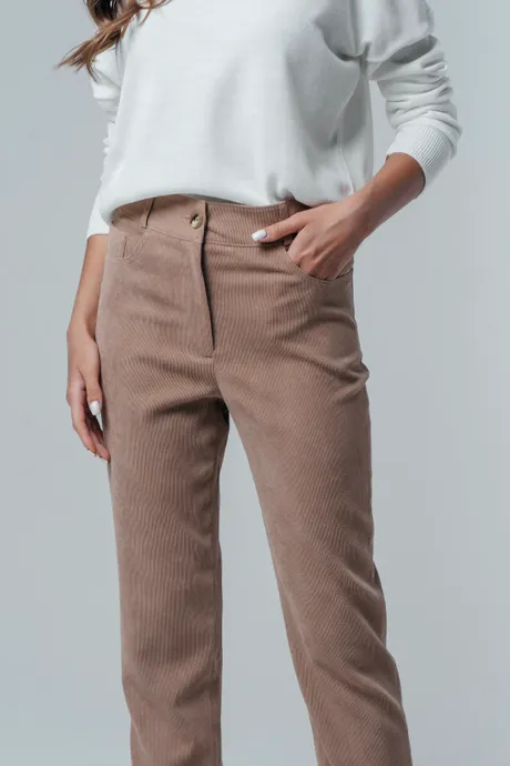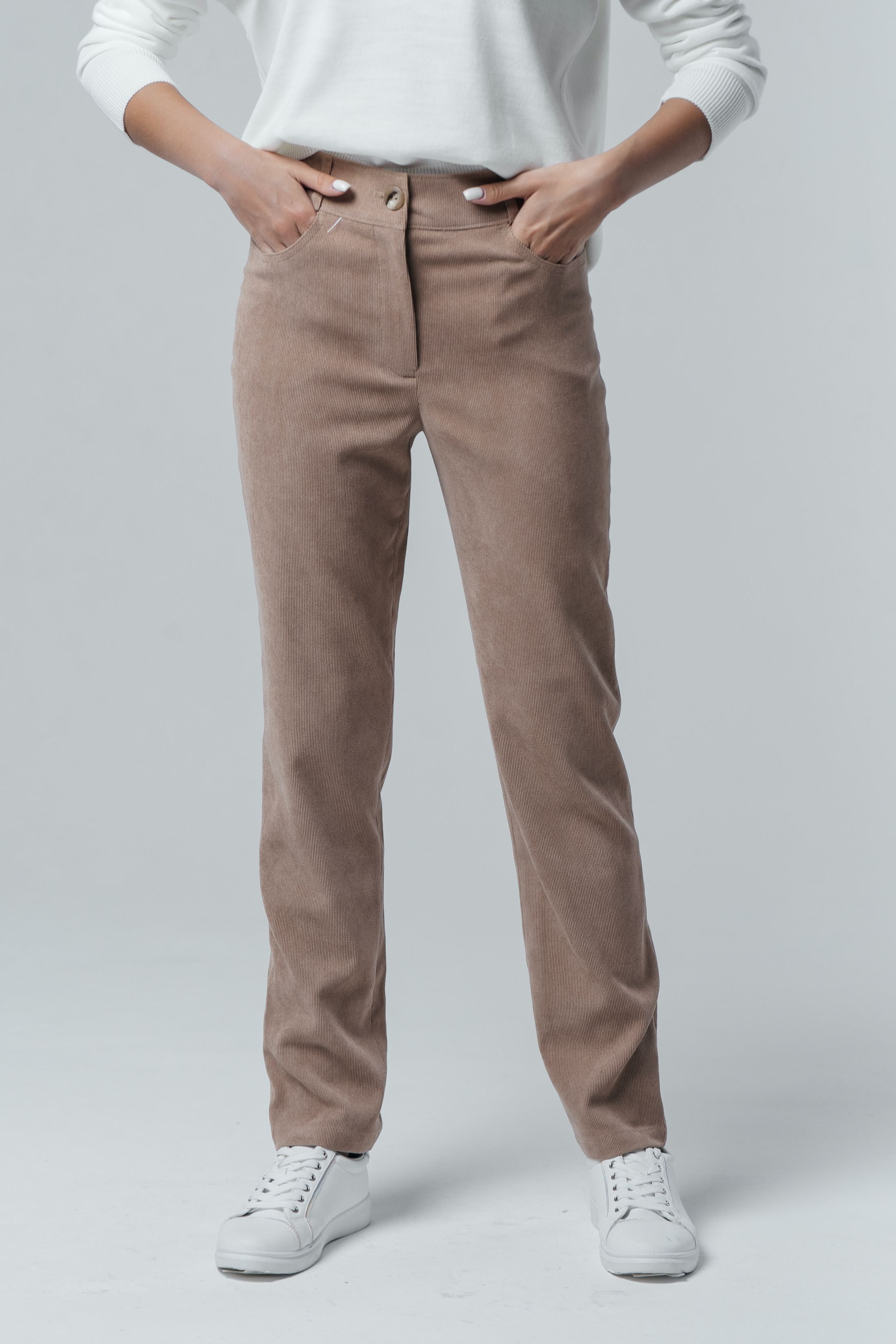 Почувствуйте роскошь и удобство с брюками "Вельвет" на средней посадке в нежном бежевом цвете. Эти брюки имеют слегка зауженный крой, который подчеркивает изящество фигуры, а высококачественный вельветовый материал обеспечивает приятные ощущения на коже и комфорт в течение всего дня. Универсальный бежевый цвет прекрасно сочетается с любыми оттенками гардероба, делая эти брюки идеальным выбором для создания стильных и универсальных образов на работе, отдыхе или торжественном мероприятии.