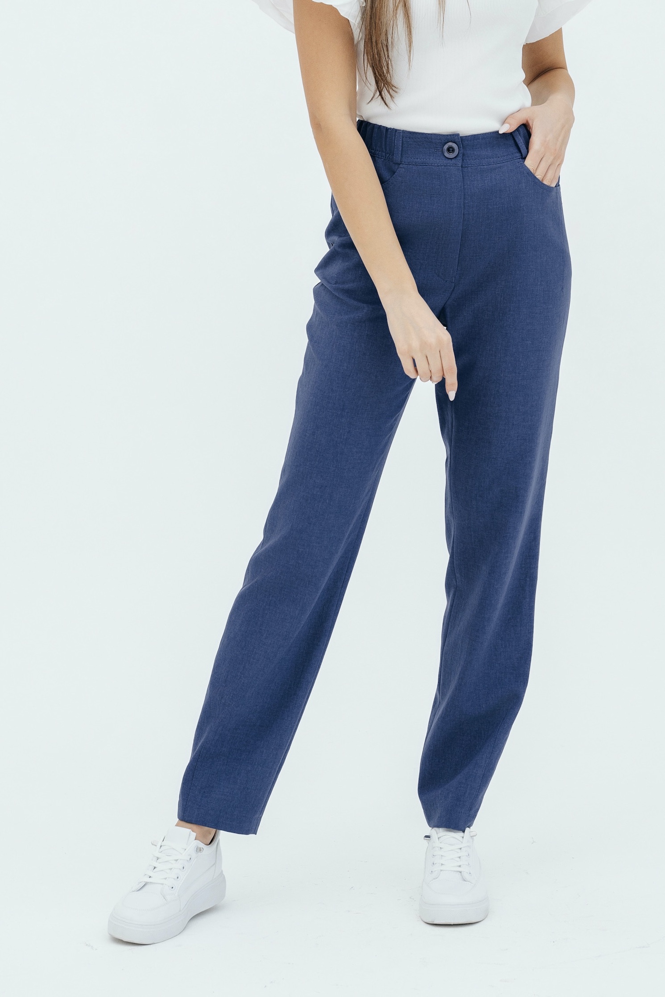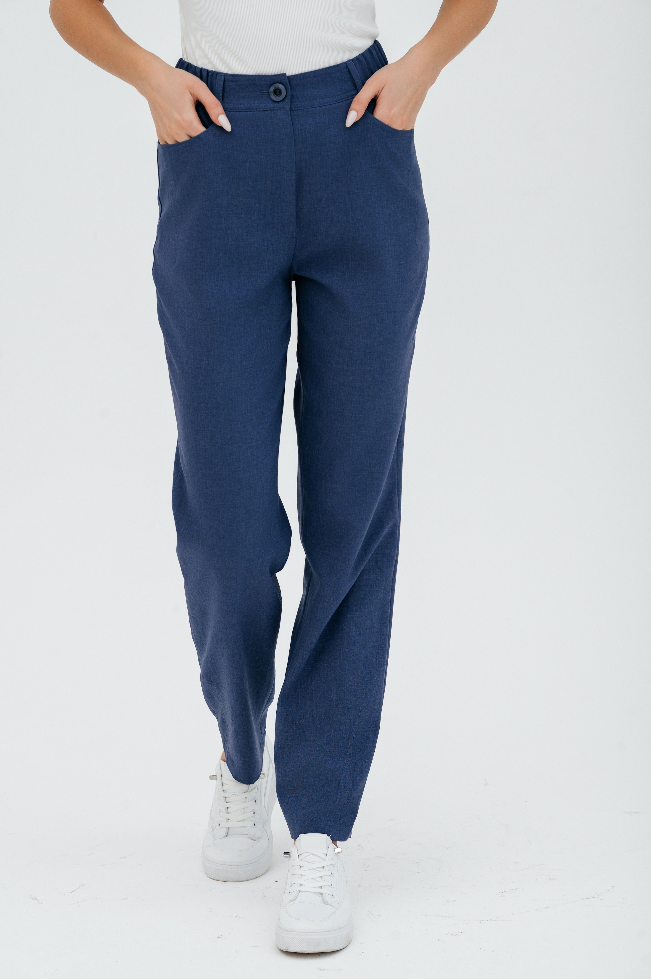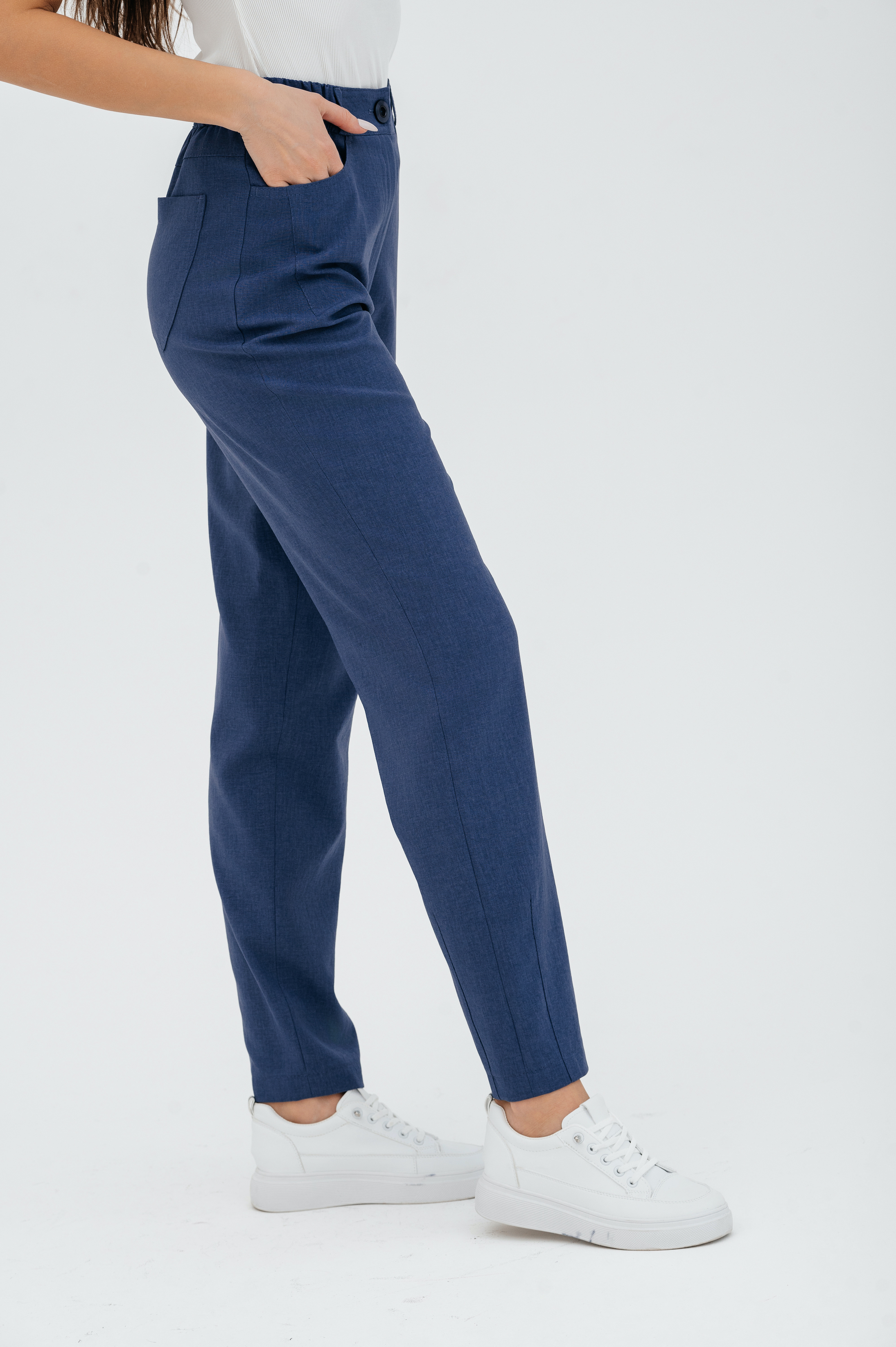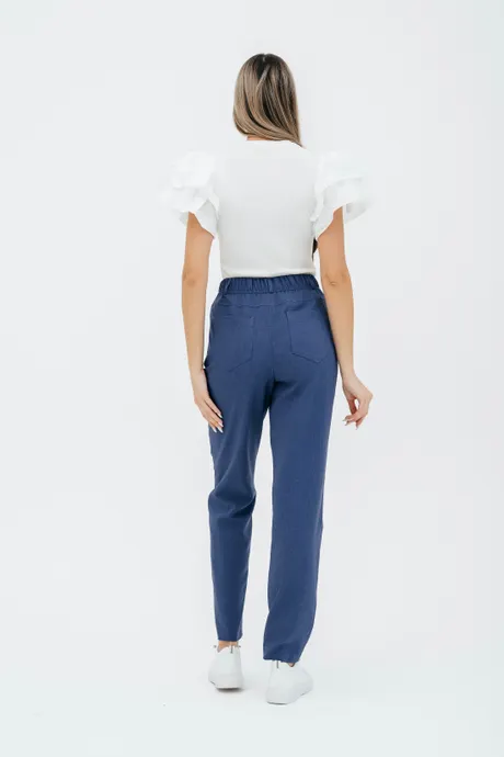 Брюки на высокой посадке, зауженные, на резинке, с карманами «Манарола» сиреневые