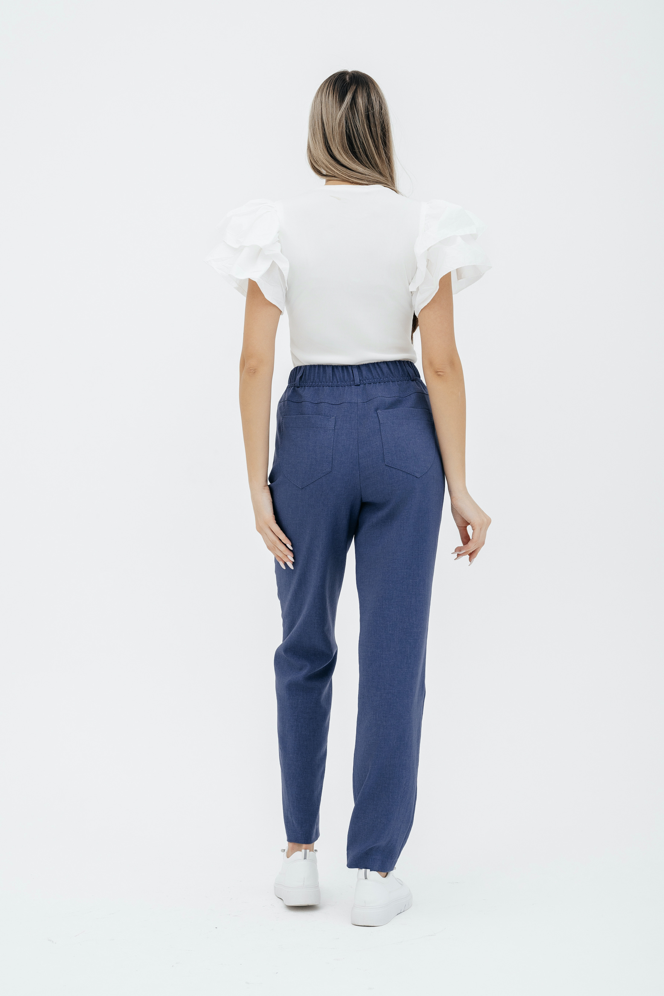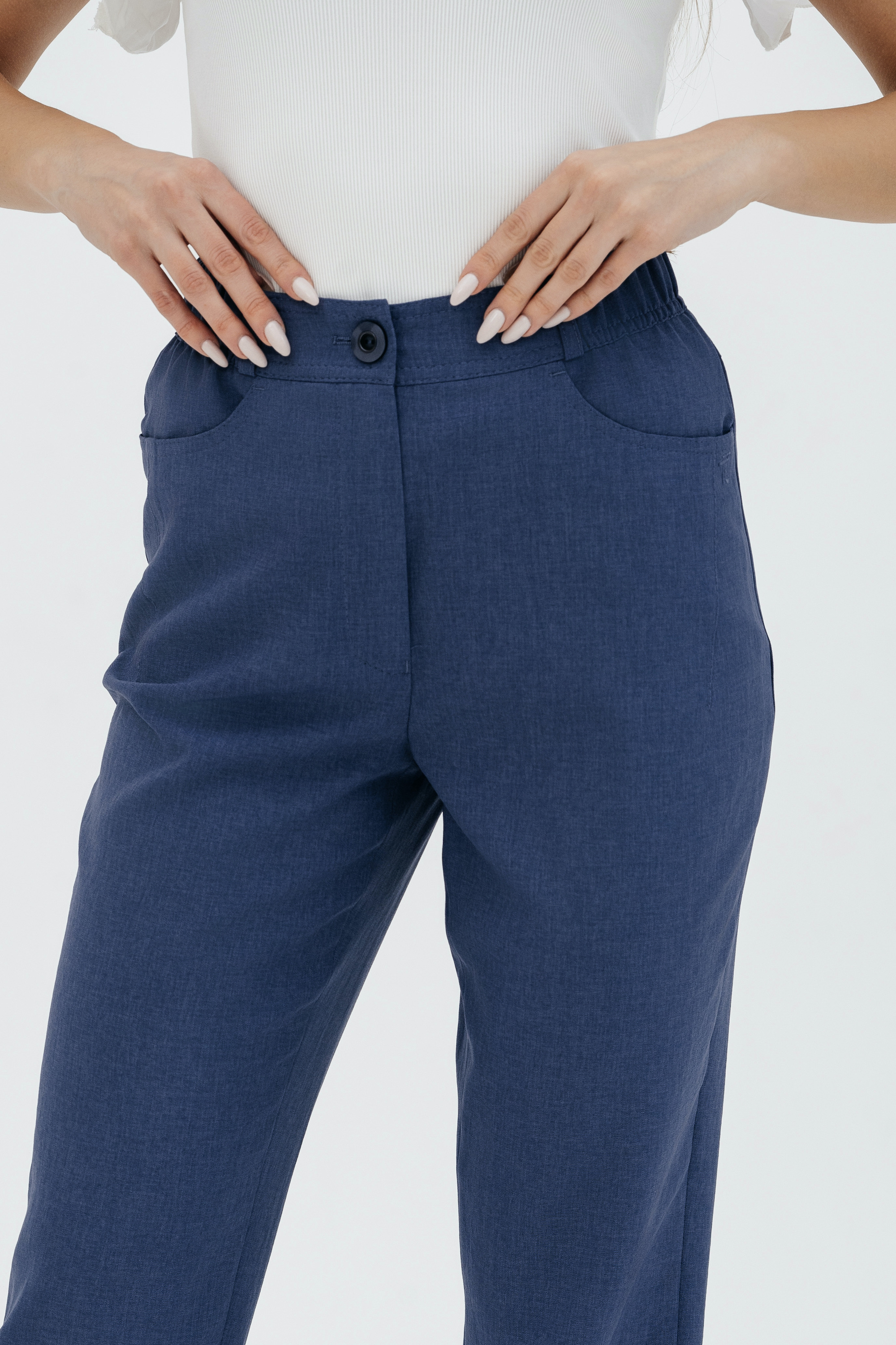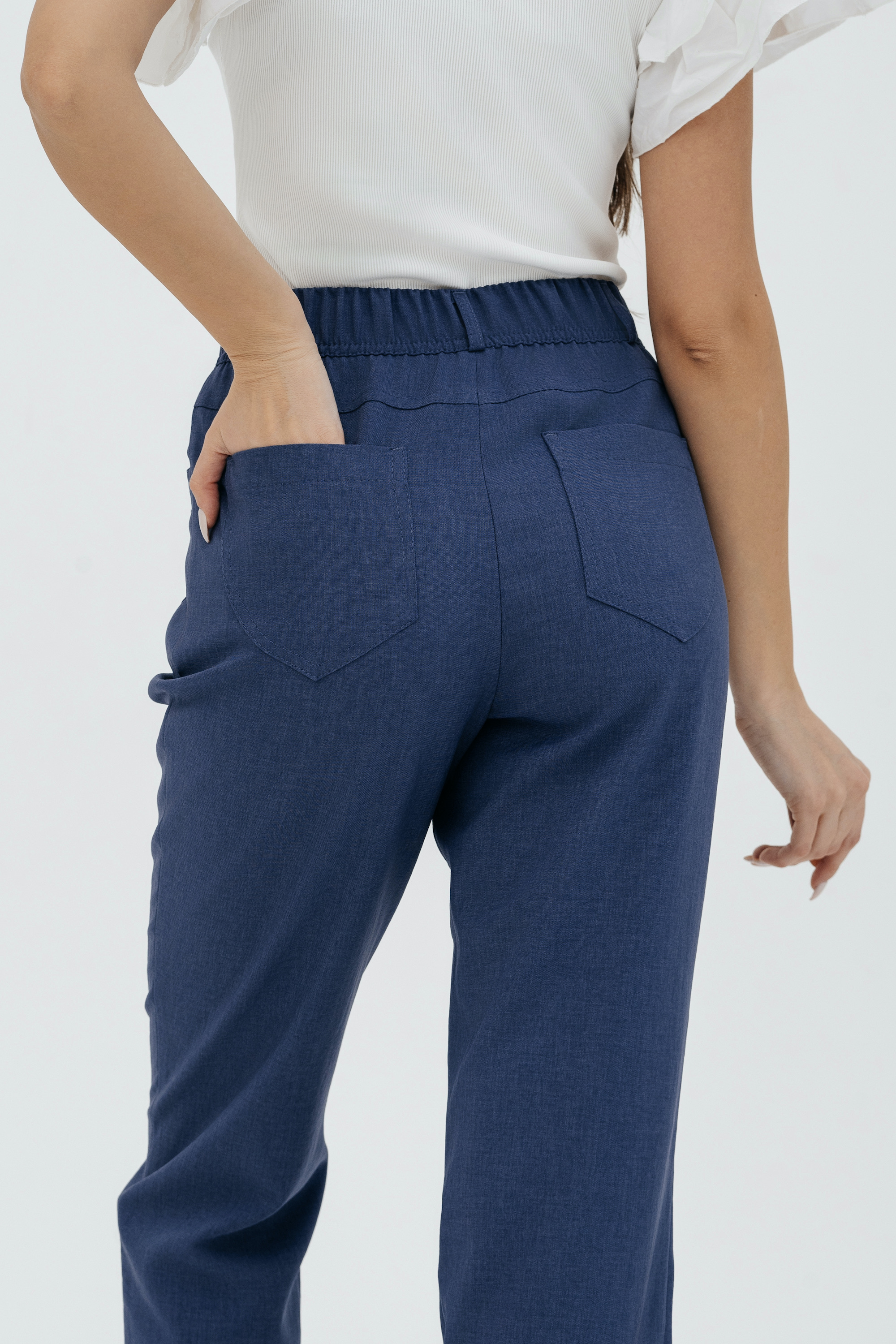 Брюки на высокой посадке, зауженные, на резинке, с карманами «Манарола» сиреневые