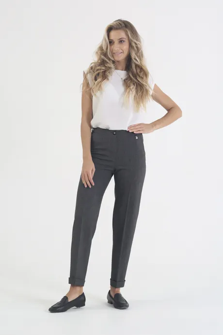 Хотите выглядеть стильно и чувствовать себя удобно? Тогда обратите внимание на наши серые брюки на высокой посадке с манжетами "Сан Марино". Их резинка обеспечивает максимальный комфорт, а 7/8 длина с манжетами придает модный и современный вид. Серый цвет является классическим и универсальным, что позволит легко сочетать брюки с различными элементами вашего гардероба. Не упустите возможность приобрести эти брюки и добавить в свой образ нотку элегантности и стиля!
