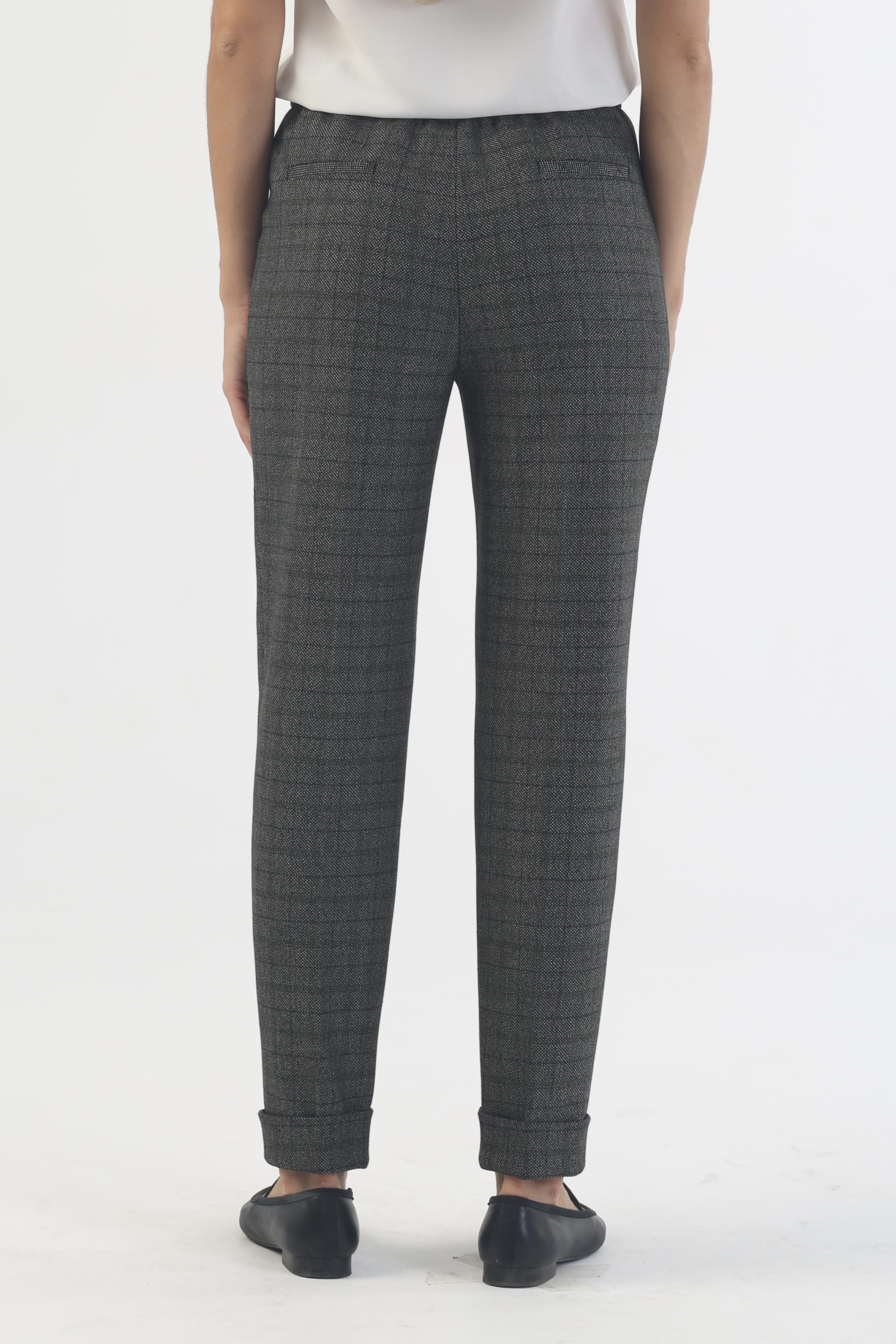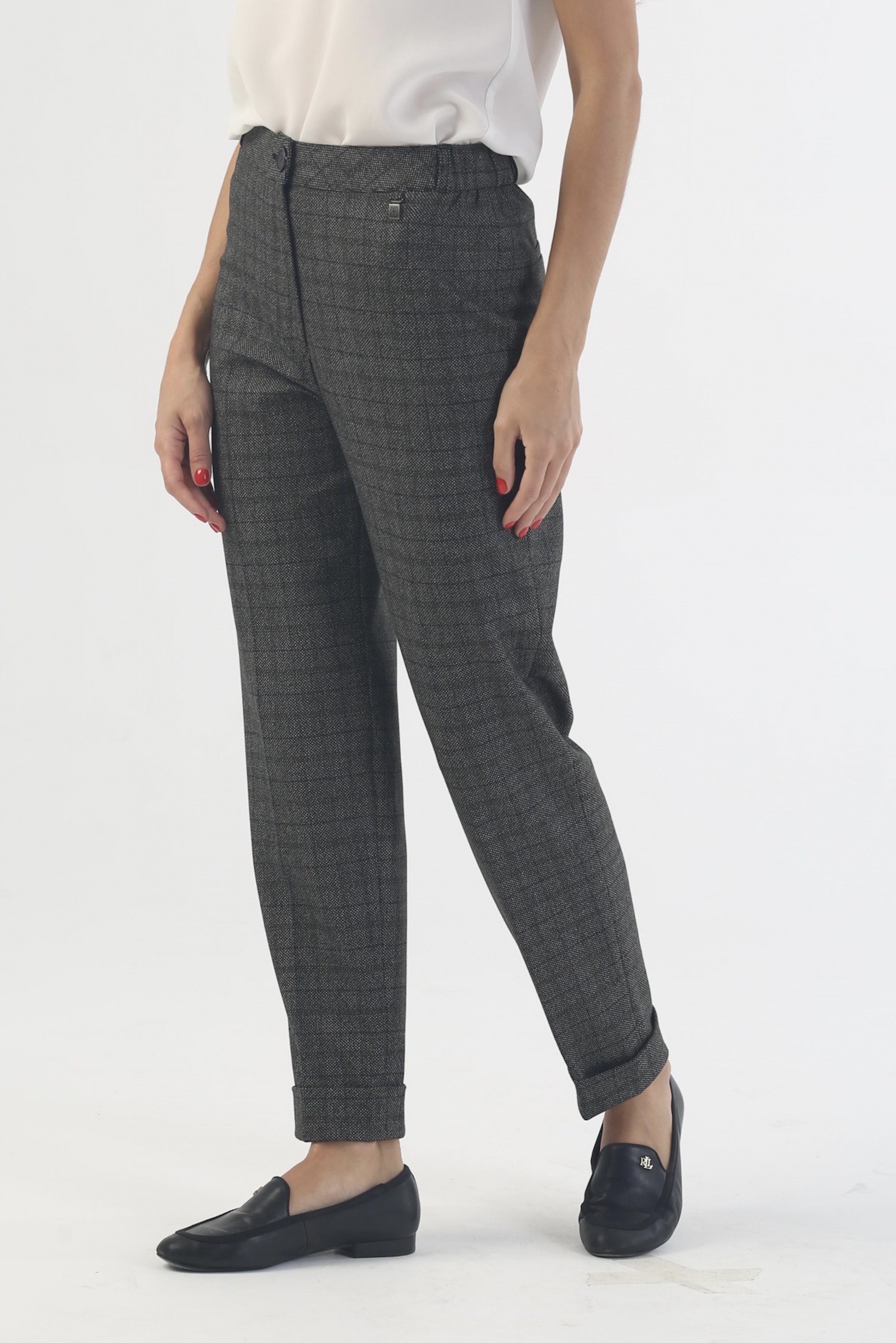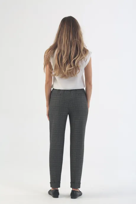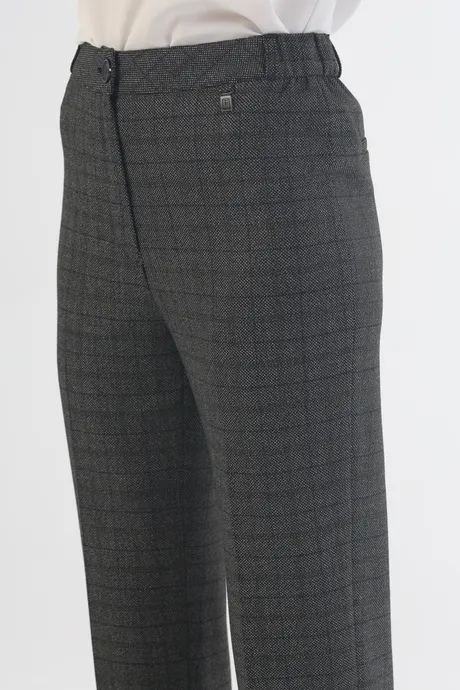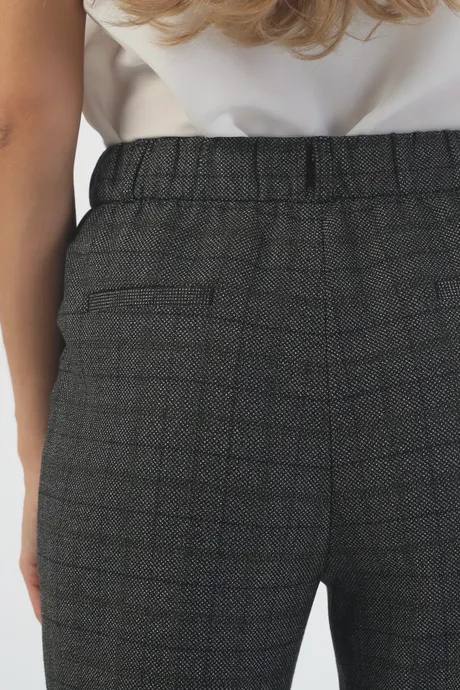 Зауженные брюки «Авиньон» на высокой посадке на резинке 7/8 длины с манжетом в серо-зеленую клетку – универсальная повседневная модель. Легкий материал на основе вискозы не сковывает движений, обеспечивая комфорт даже в самые длинные рабочие дни. Нежная женственная расцветка и практичный крой прекрасно сочетаются с тонкими блузами, плотными рубашками, объемными вязаными свитерами, просторной и приталенной верхней одеждой. Нетребовательна стильная классическая модель и в выборе обуви: дополните ее удобными туфлями без каблука, мягкими ботинками на платформе, эффектными босоножками на шпильке или кокетливыми полусапожками.